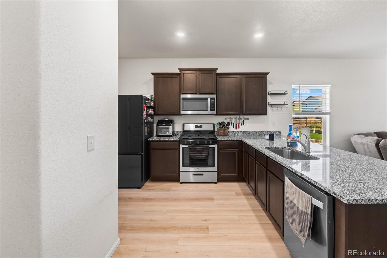 Enjoy creating memories in this beautiful ranch home. This home feautures a beautiful kitchen with stainless steel appliances, an oversized refrigerator, granite counters, and a kitchen island that make both everyday cooking and entertaining a joy. Every detail in this home blends functionality and style seamlessly to create a warm inviting atmosphere. This home offers 3 bedrooms and 2 full bathrooms, including the en-suite in the primary bedroom. The backyard is already landscaped for your enjoyment including a sprinkler system in the front and back. This home is close to shopping, dining, schools, and even close to the golf course. Don't miss this opportunity to own this low maintenance home in a peaceful, well-connected community!!!! ***Seller is offering $2,000 in seller concessions***