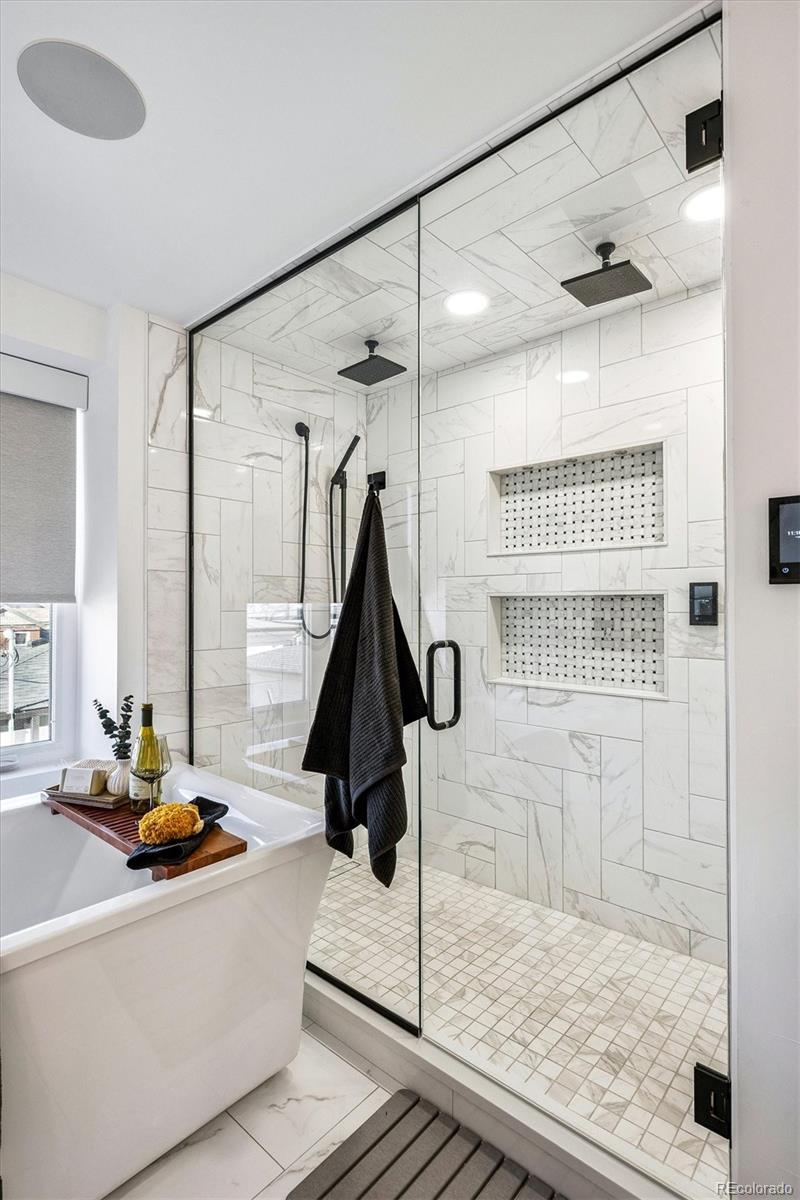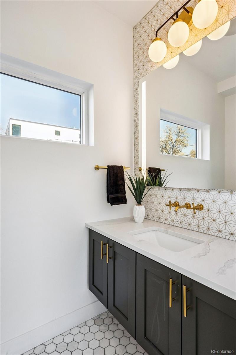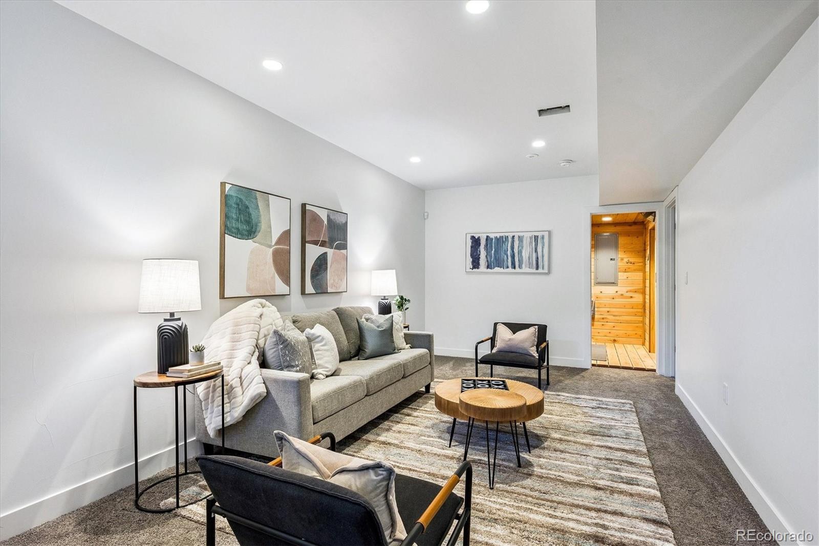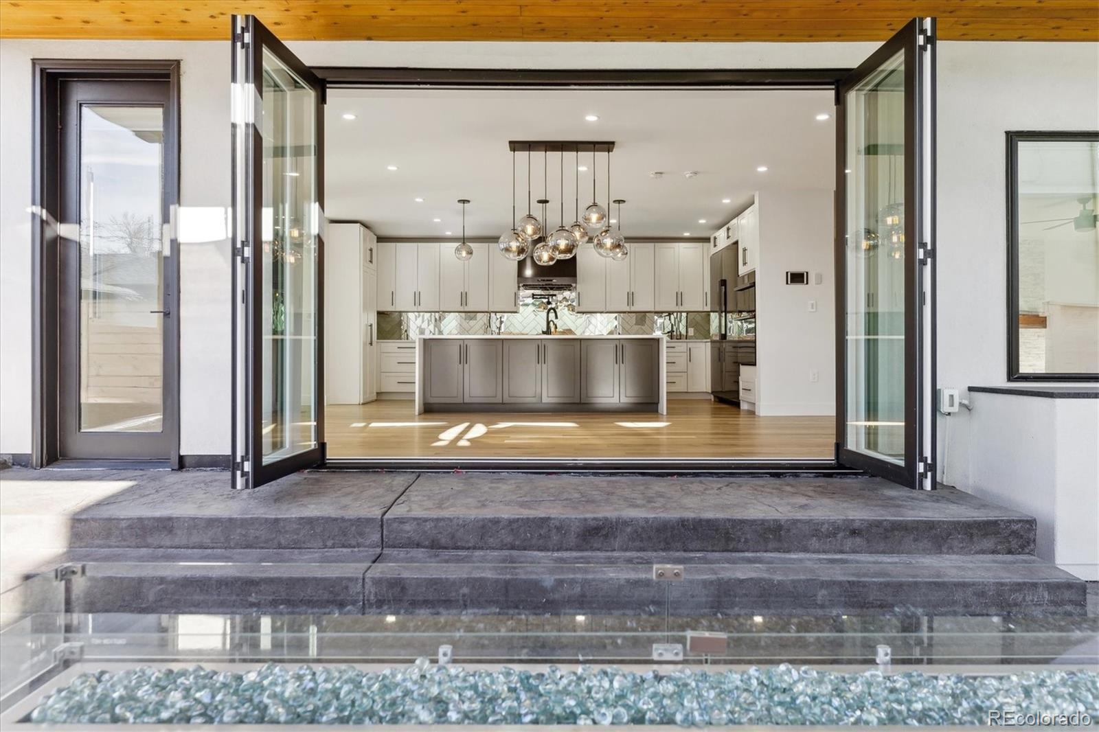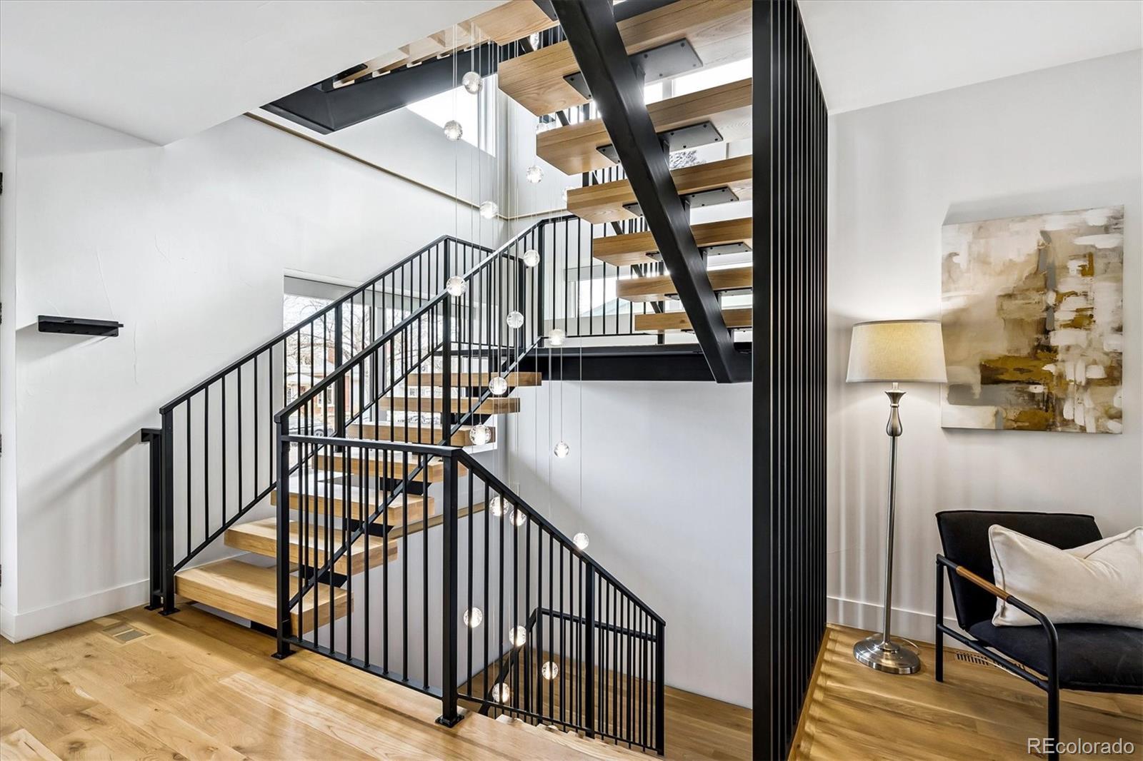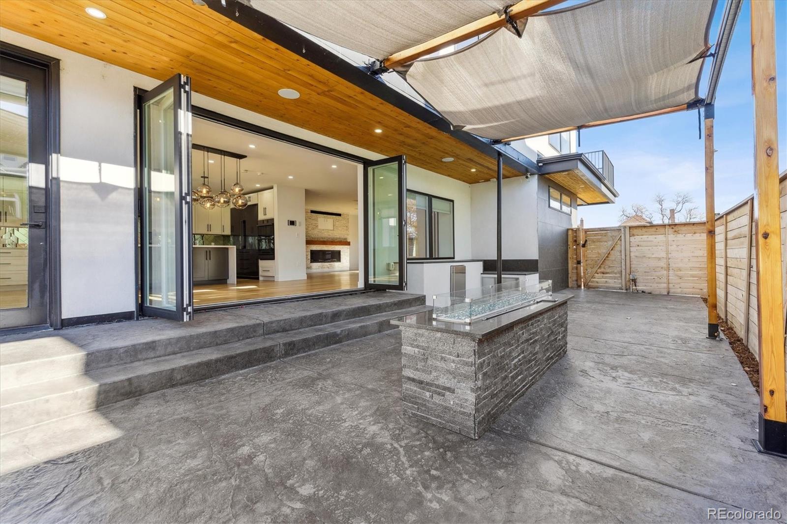 This custom-built home blends sleek modern design with exceptional craftsmanship and a newly installed Lutron smart home system that controls lights, automated shades, thermostat, alarm, and security cameras. Thoughtful details throughout create a refined yet highly functional space for daily living and effortless entertaining. An open floor plan connects the great room—with a contemporary linear gas fireplace—to the chef’s kitchen featuring a quartz waterfall island and high-end Dacor appliances. Accordion doors open to a covered patio with fire pit, outdoor kitchen area, and a splash-pad/wading pool. A mudroom, powder room, and oversized heated 2-car garage (plus two additional parking spaces) complete the level. A floating staircase leads to the luxurious primary suite with gas fireplace, spa-like bath, and walk-in closet. Two secondary bedrooms share a bathroom with double vanity. A spacious laundry room and a large front balcony offer added convenience. Automated shades provide comfort and privacy throughout the level. The third floor offers a private entertaining retreat with a wrap-around deck showcasing mountain views, a gas fire pit, wet bar, wine/beverage refrigerators, and a half bath. The basement provides a versatile space with a large media room, secure vault safe-room, guest bedroom, office, and relaxing sauna. Ideally situated with easy access to the Highlands, Downtown Denver, Sloan’s Lake, and I-70.