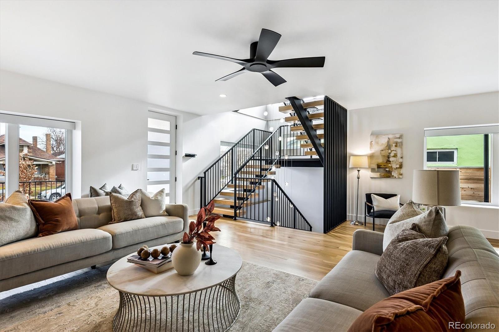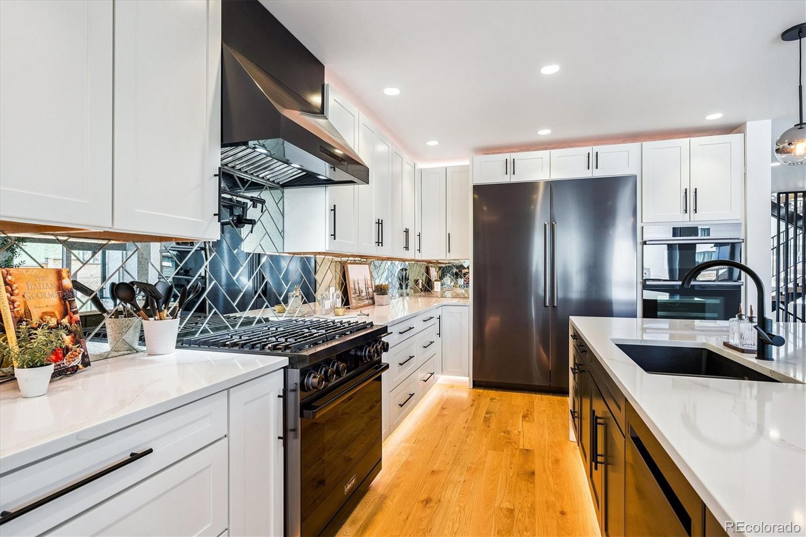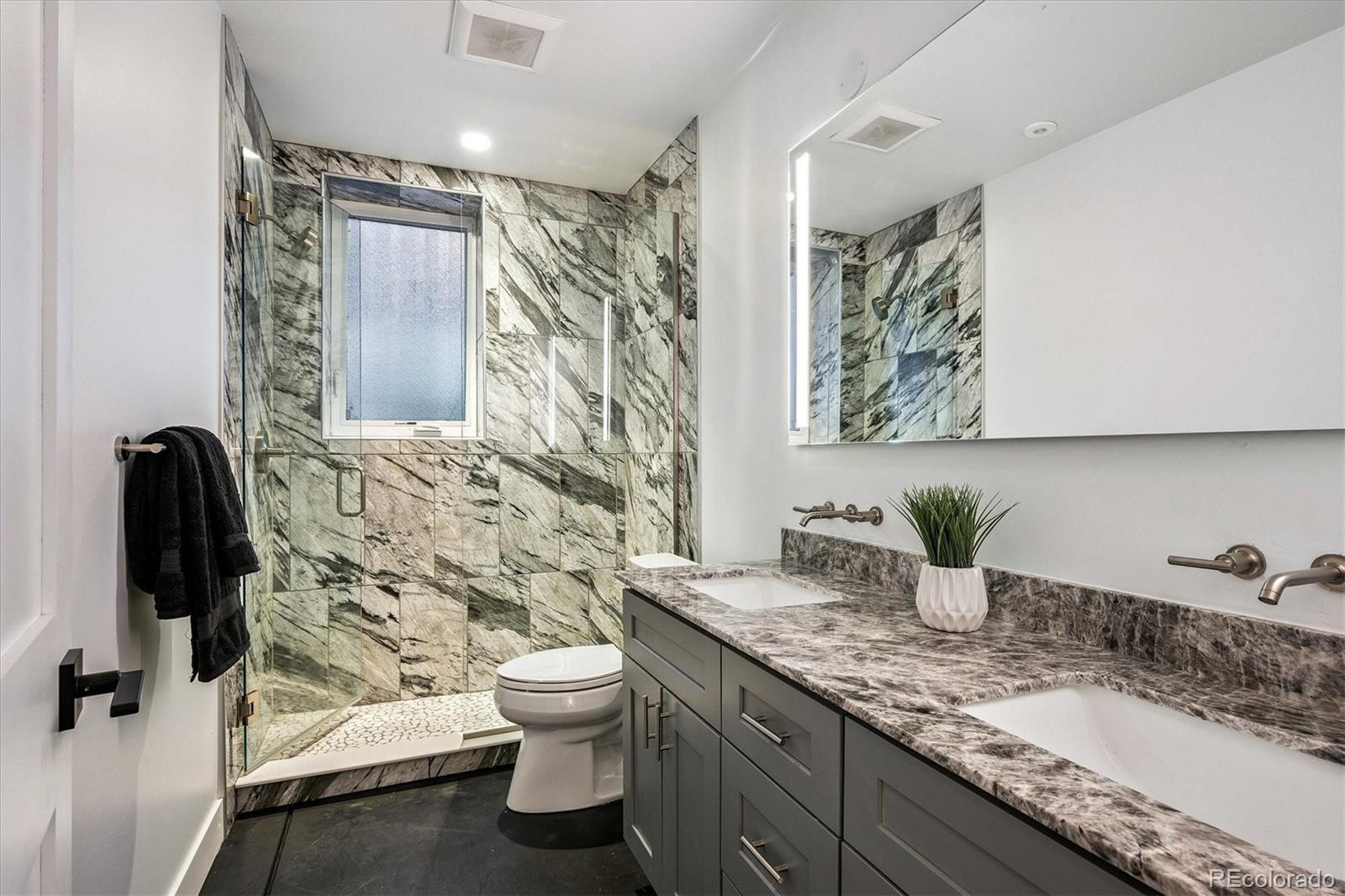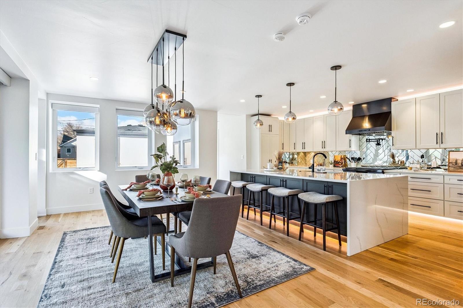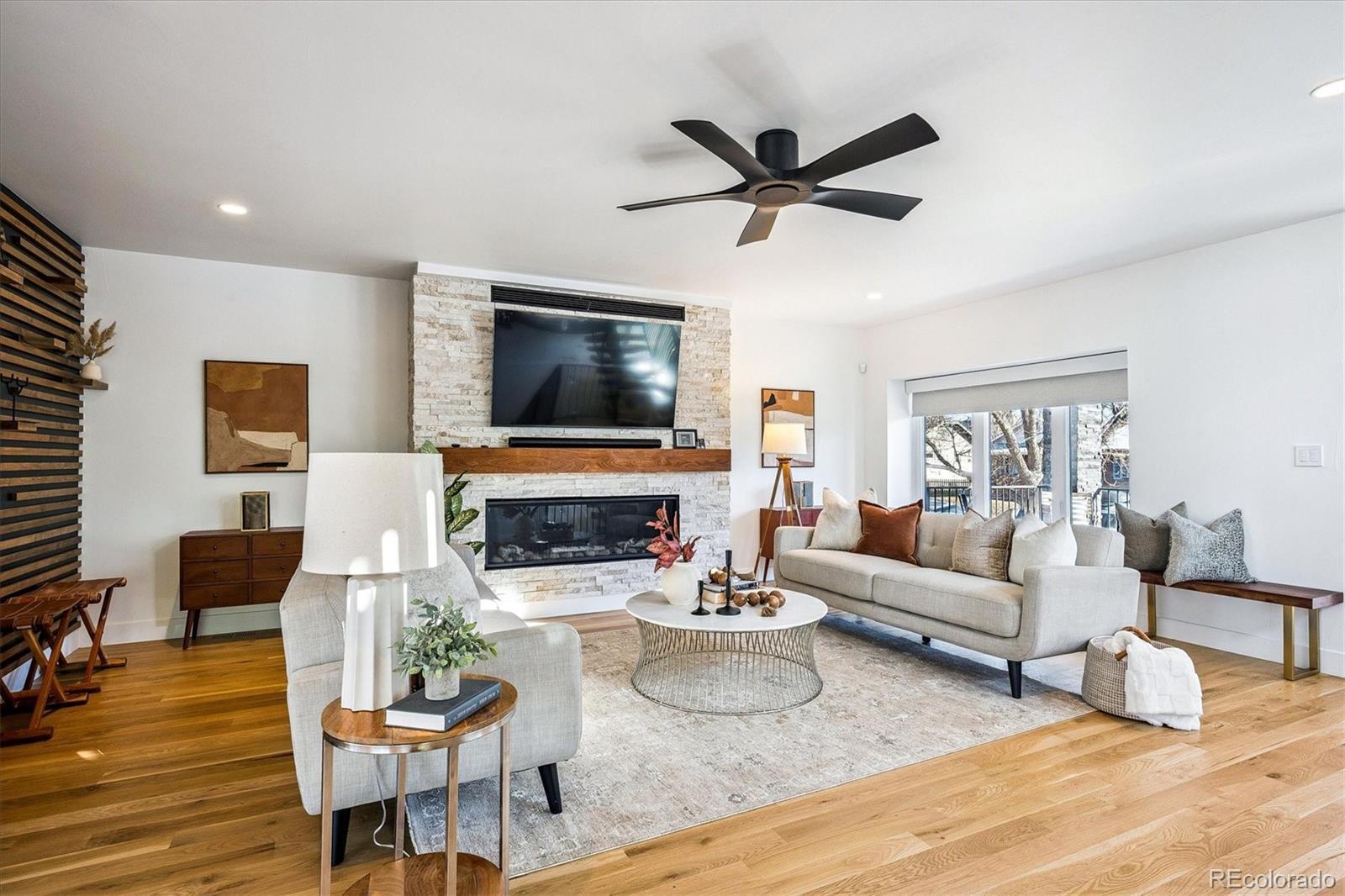 This custom-built home blends sleek modern design with exceptional craftsmanship and a newly installed Lutron smart home system that controls lights, automated shades, thermostat, alarm, and security cameras. Thoughtful details throughout create a refined yet highly functional space for daily living and effortless entertaining. An open floor plan connects the great room—with a contemporary linear gas fireplace—to the chef’s kitchen featuring a quartz waterfall island and high-end Dacor appliances. Accordion doors open to a covered patio with fire pit, outdoor kitchen area, and a splash-pad/wading pool. A mudroom, powder room, and oversized heated 2-car garage (plus two additional parking spaces) complete the level. A floating staircase leads to the luxurious primary suite with gas fireplace, spa-like bath, and walk-in closet. Two secondary bedrooms share a bathroom with double vanity. A spacious laundry room and a large front balcony offer added convenience. Automated shades provide comfort and privacy throughout the level. The third floor offers a private entertaining retreat with a wrap-around deck showcasing mountain views, a gas fire pit, wet bar, wine/beverage refrigerators, and a half bath. The basement provides a versatile space with a large media room, secure vault safe-room, guest bedroom, office, and relaxing sauna. Ideally situated with easy access to the Highlands, Downtown Denver, Sloan’s Lake, and I-70.