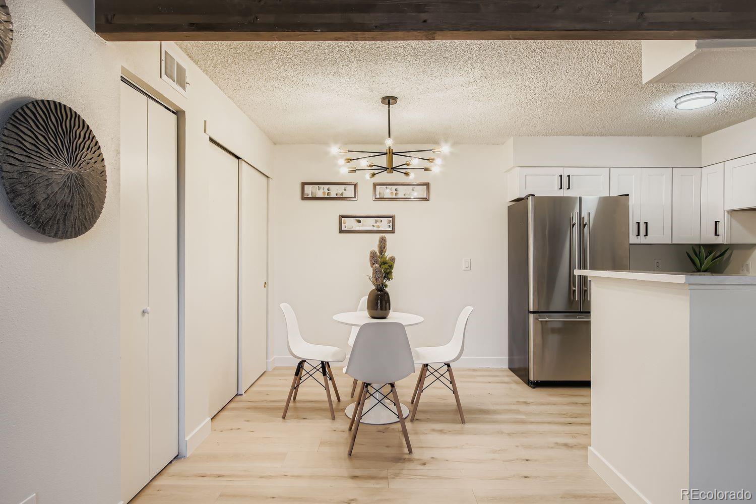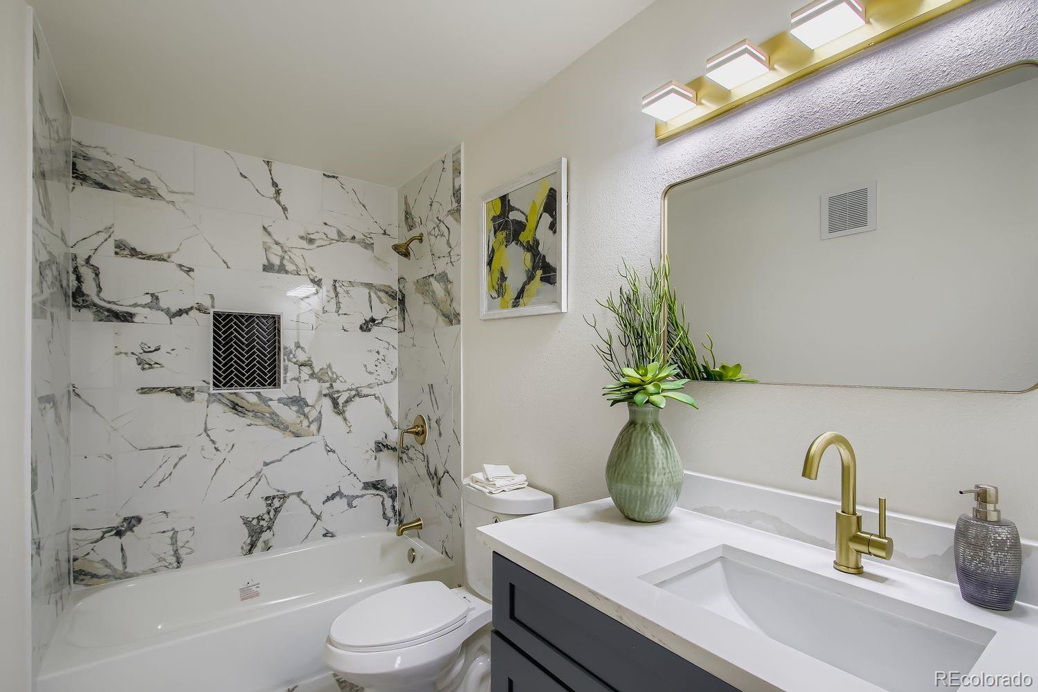 Welcome home to this beautifully remodeled 2-bed, 1-bath condo nestled in the heart of Wheat Ridge. Thoughtfully updated, this 954 sq ft second-floor residence offers modern comfort, stylish finishes, and an easy-living lifestyle you’ll love. Step inside to an open, light-filled layout featuring LVP flooring throughout. The fully renovated kitchen shines with quartz countertops, new cabinetry, newer appliances, updated lighting, and an in-unit washer/dryer for ultimate convenience. The bathroom has been completely redesigned with high-end finishes, providing a spa-like feel. Enjoy morning coffee or evening sunsets on your private balcony, or take advantage of the community pool and tennis court just steps from home. Two assigned parking spaces are included. Minutes to Olde Town Arvada for dining & entertainment, perfectly located near shopping, restaurants, parks, and easy highway access—this charming condo blends modern living with everyday convenience. Whether you’re a first-time buyer, downsizing, or looking for an easy lock-and-leave home, this one has it all.