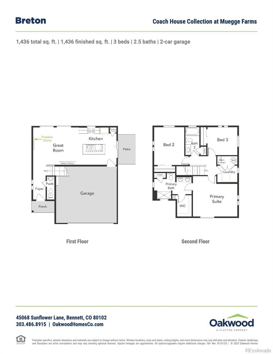 The Breton offers 1,436 square feet of smart, stylish living across two stories, featuring 3 bedrooms, 2.5 bathrooms, and a spacious 2-car garage. Natural light fills every corner, from the welcoming main floor to the upstairs living spaces. The open-concept design flows seamlessly into a lovely back patio; perfect for relaxing or entertaining outdoors. Upstairs, convenience is built in with a laundry room just steps from all bedrooms. The generous primary suite includes a walk-in closet and a private bathroom retreat, creating a comfortable place to recharge. Thoughtful design makes every room feel open and bright, with plenty of space for everyday living. Located in Green Valley Ranch, an established master-planned community in Aurora, this home gives you access to neighborhood parks, trails, community events, and a new clubhouse and pool coming in 2025. With nearby schools including Aurora Highlands PK–8 and Vista PEAK Preparatory, and an award-winning golf course just minutes away, the Tilbury offers more than a great home, it’s a great lifestyle. Actual home may differ from artist's renderings or photography.
