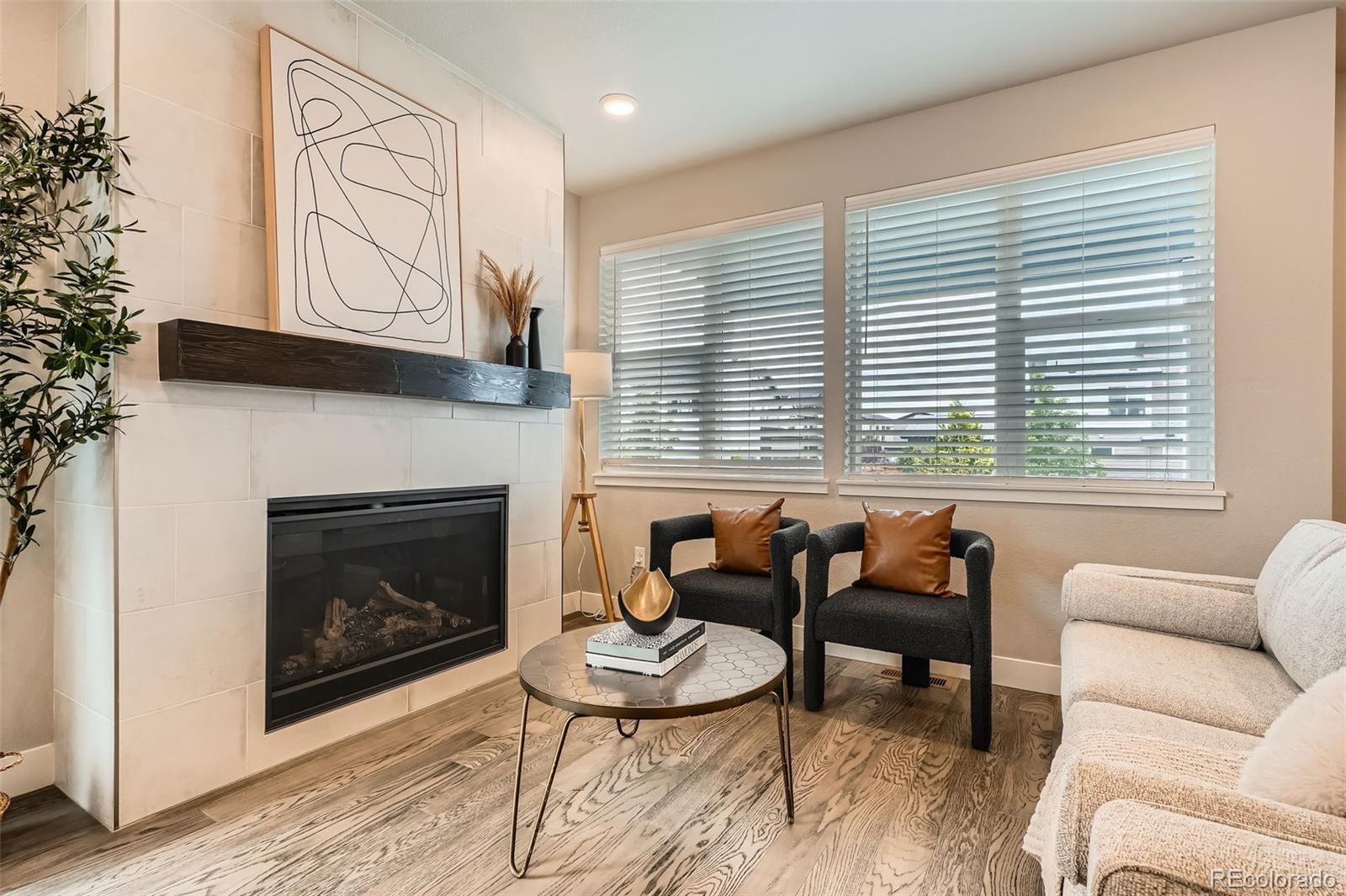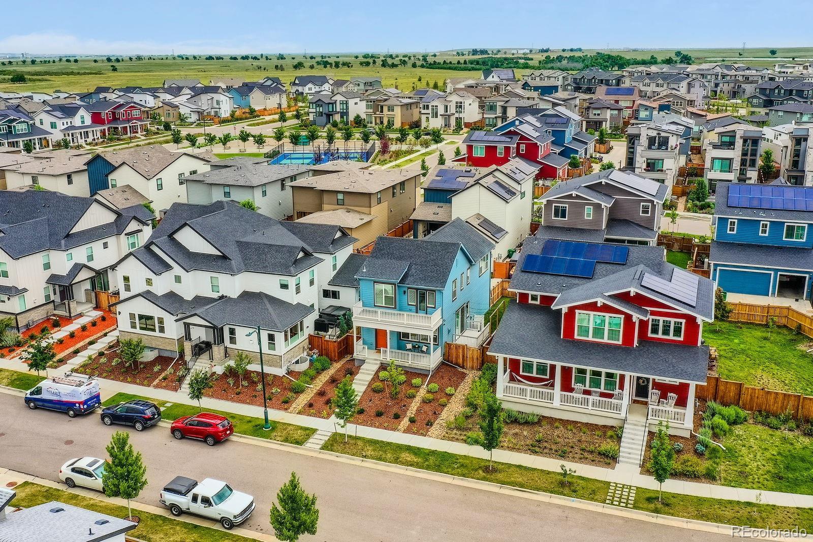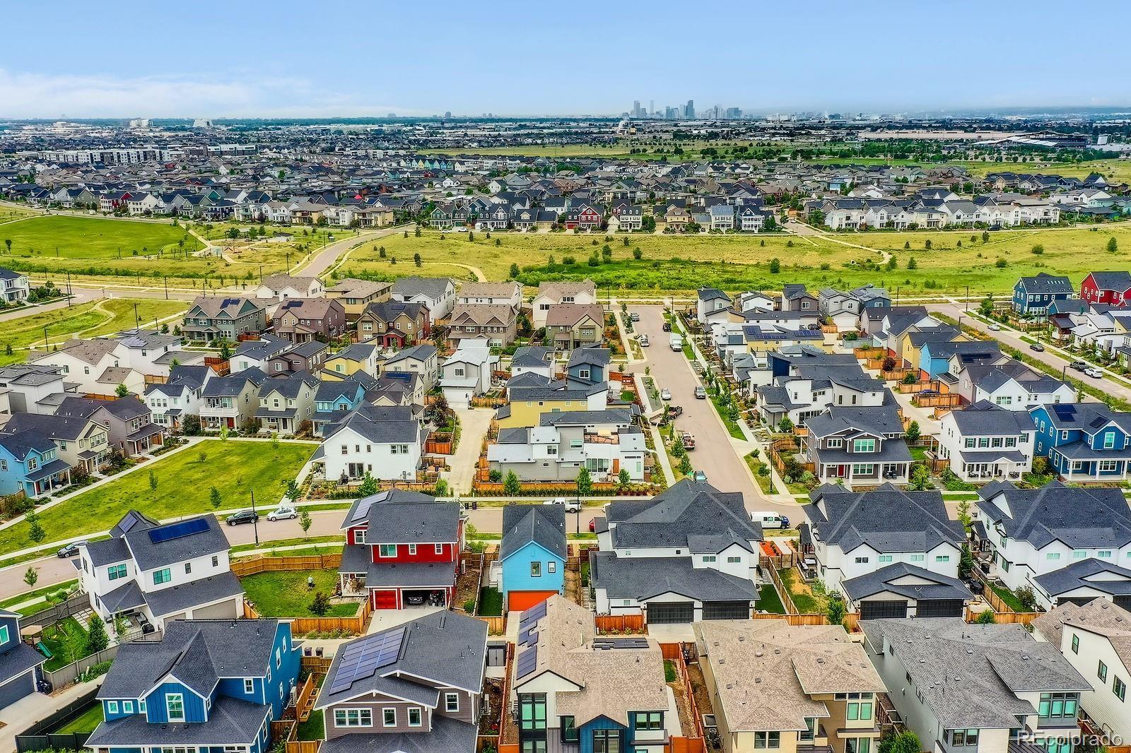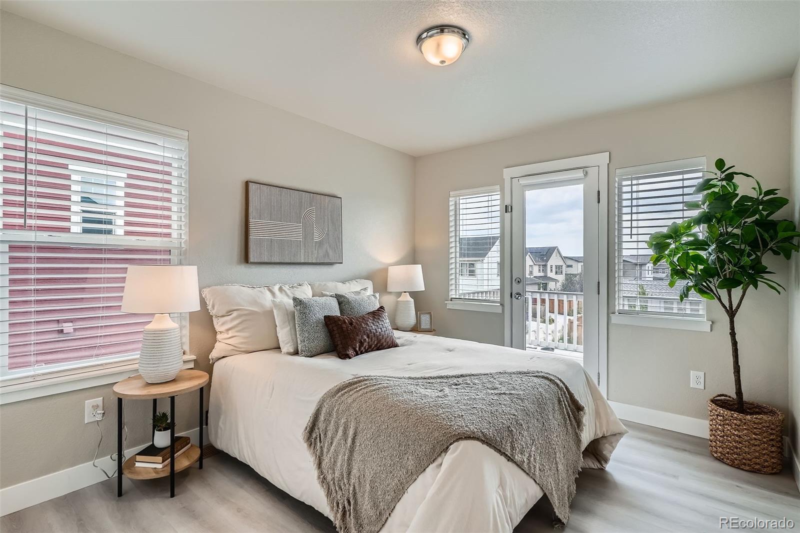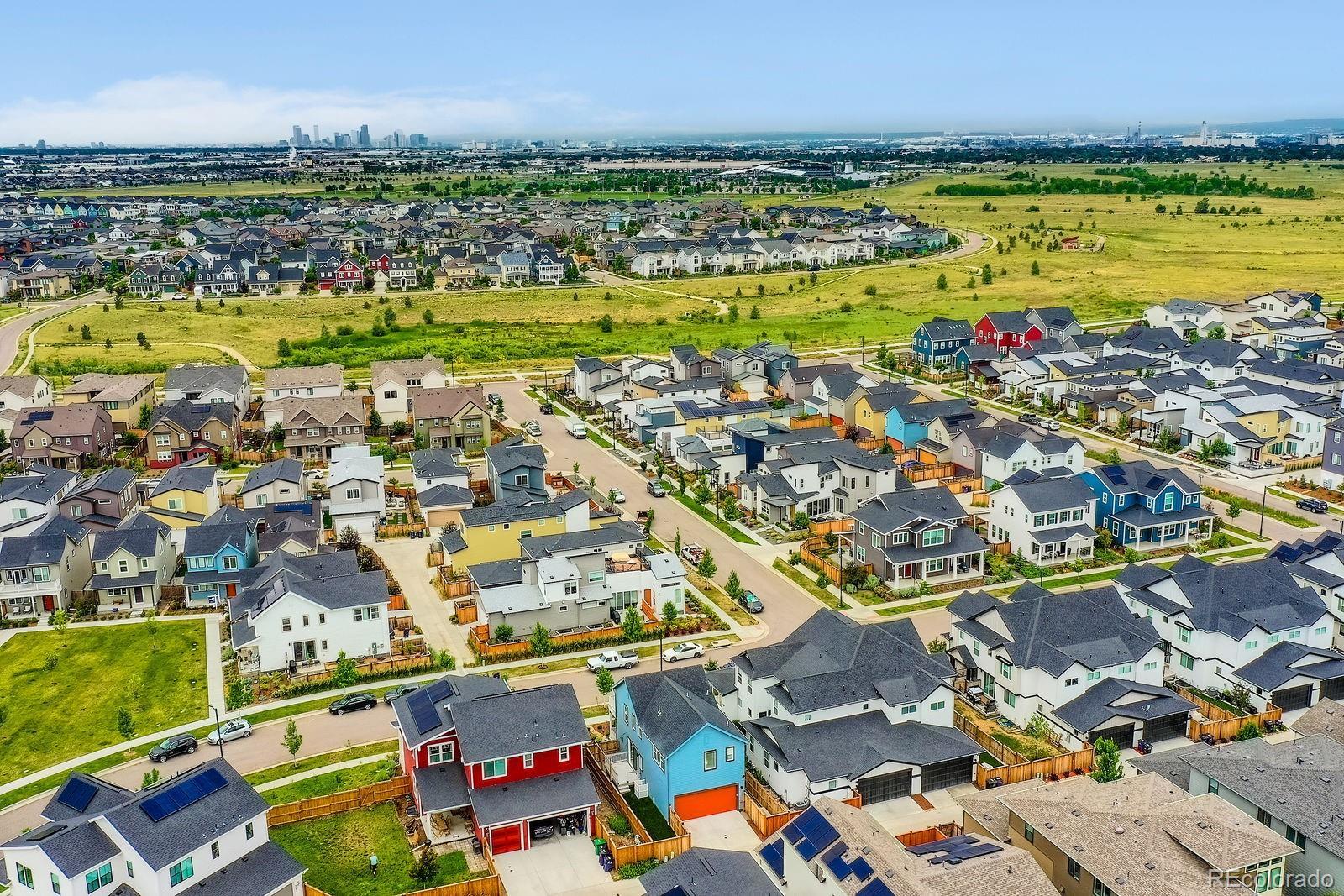Motivated Sellers!!! A $40,000 Price reduction in Central Park!!! Experience refined living in this beautifully appointed two-story home with a fully finished basement, ideally situated in the sought-after Central Park neighborhood of Denver. Featuring 3 spacious bedrooms and 4 bathrooms, this residence seamlessly combines everyday comfort with high-end finishes, all within a thoughtfully curated layout ideal for both relaxation and entertaining. Upon entry, you’re welcomed into a light-filled, open-concept main level where modern sophistication meets functional design. The kitchen showcases white cabinetry, gleaming quartz countertops, a center island, and premium stainless steel appliances, perfect for hosting or casual family meals. Just beyond, the dining area is framed by a statement chandelier and opens directly to the side yard for effortless indoor/outdoor flow. The adjacent living room is a serene retreat, anchored by a custom wood-accented fireplace and drenched in natural light, an ideal setting for cozy evenings or leisurely weekends. Upstairs, discover three beautifully bedrooms, including a primary suite complete with a spa-inspired en-suite bathroom featuring a double vanity, walk-in glass shower, and a spacious walk-in closet. A versatile balcony offers additional entertainment space with access directly from one of the bedrooms, perfect for morning coffee or winding down at sunset with mountain views. Enjoy all Central Park has to offer, great schools, amenities, access to 8 pools, entertainment, restaurants, and shopping close by, pickle ball courts, an extensive trail system, and so much more. Make your appointment today!!!