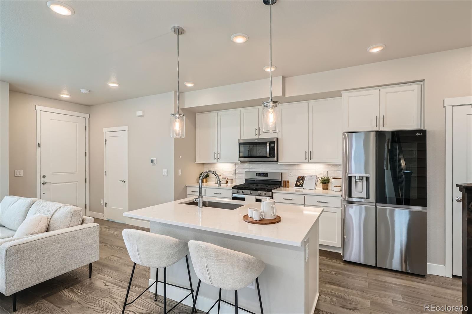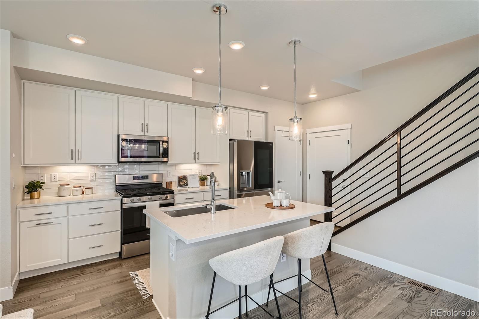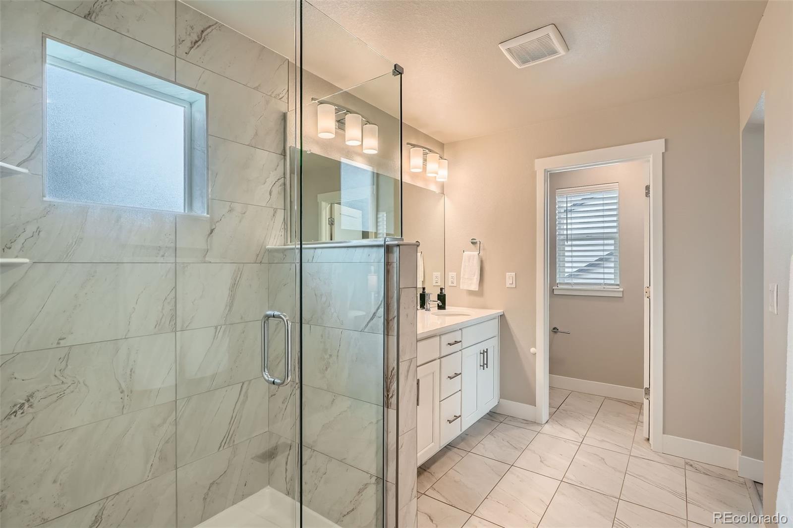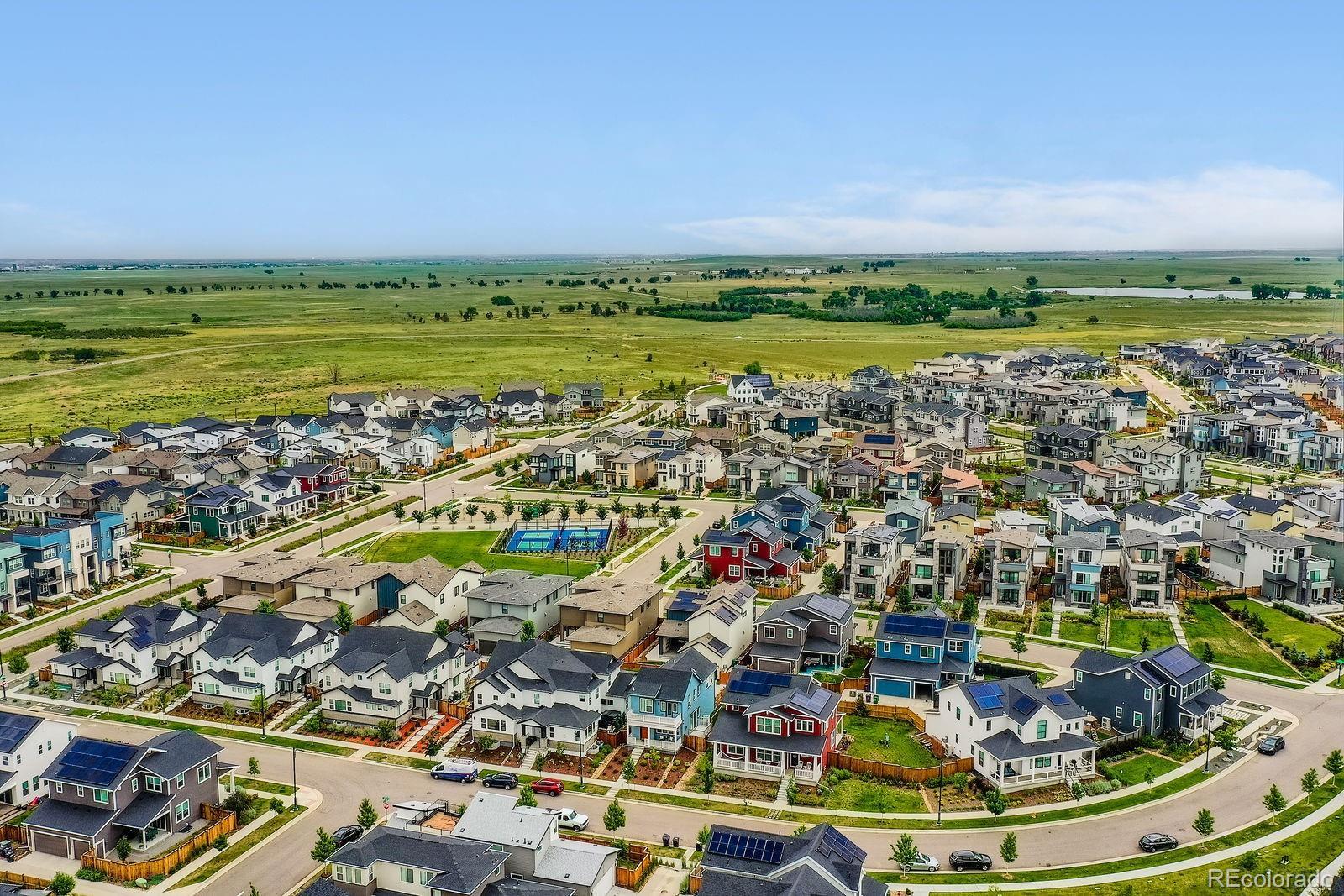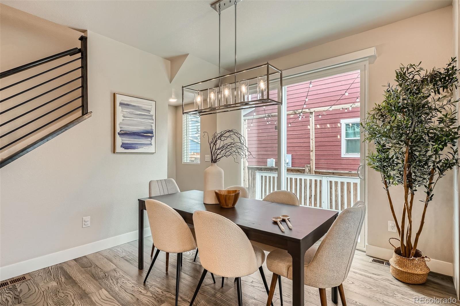 Motivated Sellers!!! A $40,000 Price reduction in Central Park!!! Experience refined living in this beautifully appointed two-story home with a fully finished basement, ideally situated in the sought-after Central Park neighborhood of Denver. Featuring 3 spacious bedrooms and 4 bathrooms, this residence seamlessly combines everyday comfort with high-end finishes, all within a thoughtfully curated layout ideal for both relaxation and entertaining. Upon entry, you’re welcomed into a light-filled, open-concept main level where modern sophistication meets functional design. The kitchen showcases white cabinetry, gleaming quartz countertops, a center island, and premium stainless steel appliances, perfect for hosting or casual family meals. Just beyond, the dining area is framed by a statement chandelier and opens directly to the side yard for effortless indoor/outdoor flow. The adjacent living room is a serene retreat, anchored by a custom wood-accented fireplace and drenched in natural light, an ideal setting for cozy evenings or leisurely weekends. Upstairs, discover three beautifully bedrooms, including a primary suite complete with a spa-inspired en-suite bathroom featuring a double vanity, walk-in glass shower, and a spacious walk-in closet. A versatile balcony offers additional entertainment space with access directly from one of the bedrooms, perfect for morning coffee or winding down at sunset with mountain views. Enjoy all Central Park has to offer, great schools, amenities, access to 8 pools, entertainment, restaurants, and shopping close by, pickle ball courts, an extensive trail system, and so much more. Make your appointment today!!!