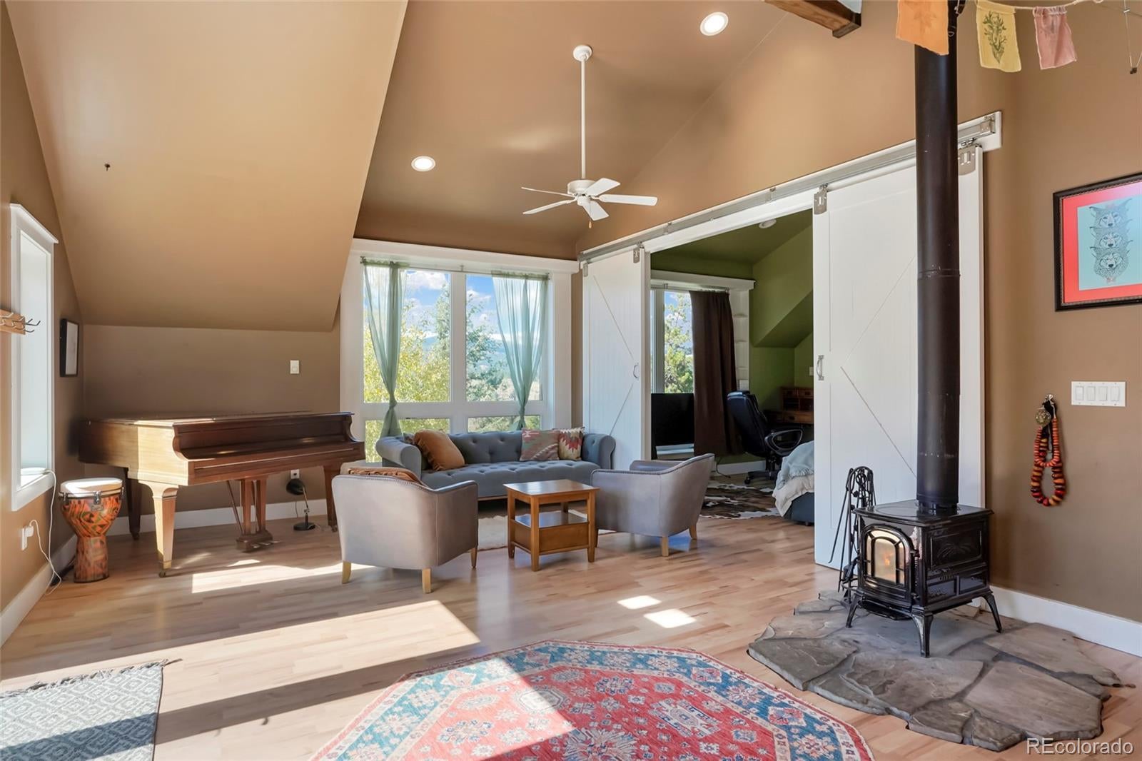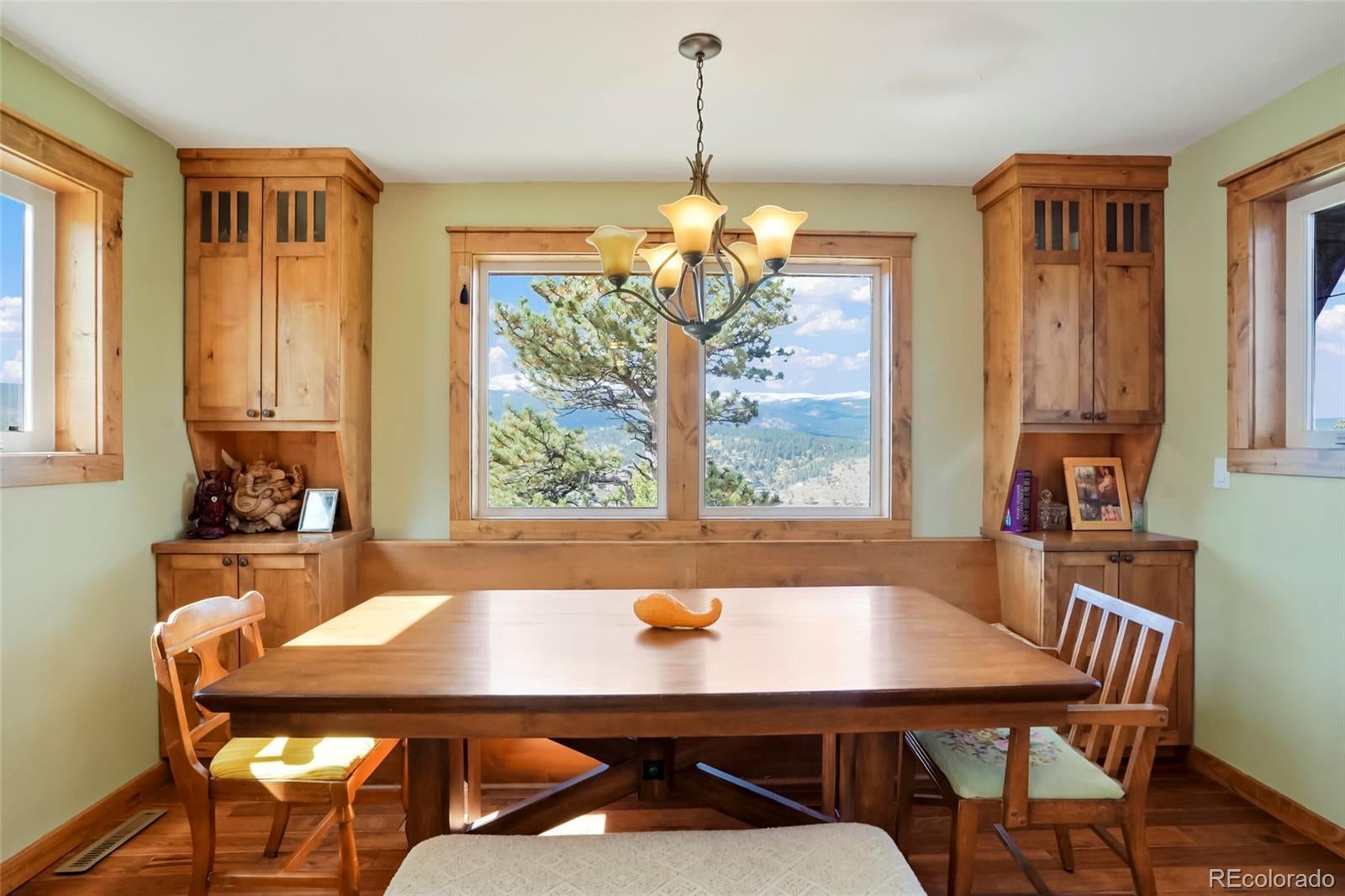 Income-generating mountain retreat, as the Potential to make a $100K a year & LIVE in the home, has 3 separate living quarters, allowing you to embrace an idyllic lifestyle while offsetting costs—with a Airbnb or rentals, making the home almost FREE, its a Ultimate retreat | The Accessory Dwelling Unit (ADU) with vaulted ceilings, a full kitchen, wood stove, and private deck provides the flexibility of a rental suite or an inviting space for family. | The beautifully renovated main residence is designed for family comfort and connection, boasting a gourmet custom kitchen with elegant pink granite countertops, marble flooring, and a spacious walk-in pantry. | Upstairs, the main suite with a cozy fireplace, spa-like five-piece bath, panoramic mountain views. | Step outside to a wraparound covered porch with a charming bench swing—the perfect spot for morning coffee surrounded by wooded privacy and mountain air.Warm maple wood floors flow into a soaring vaulted living room framed by expansive picture windows that invite the outdoors in. With five bedrooms in total, including a serene primary suite offering panoramic mountain views, a cozy gas fireplace, and a luxurious five-piece bath, there's ample space for growing families or cherished guests. Gather around one of four inviting fireplaces, or create lasting memories outdoors by the firepit beneath starry skies. The walk-out lower level is an entertainment oasis, complete with a wet bar, media room, covered porch, and a private six-person hot tub—perfect for family movie nights or unwinding after adventures. Minutes from Eldora Ski Resort and boundless hiking trails, this home in the coveted Big Springs neighborhood perches on a sun-drenched hillside, delivering breathtaking 360-degree vistas of the Indian Peaks & Barker Reservoir. Recent upgrades, including a newer furnace, water heater, carpeting, and a garage with 220-volt power, electric heat, and abundant storage