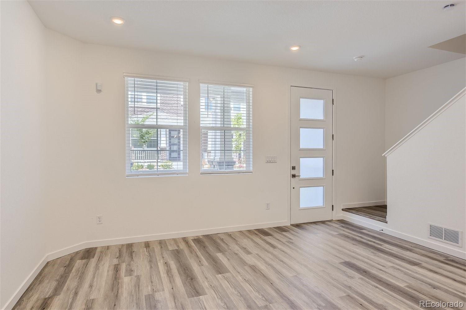 Welcome to this nearly new 3-bedroom, 3-bath home in Sterling Ranch’s desirable Prospect Village. Built in 2024, this beautifully maintained home offers 1,375 sq. ft. of modern living space and a 2-car attached garage. Enjoy relaxing on the covered front porch before stepping inside to 9-foot ceilings on both the main and upper levels. The chef’s kitchen features 42” gray cabinetry, quartz countertops, a stylish tile backsplash, and stainless steel Whirlpool appliances, including a contemporary gas range with hood and built-in microwave. Upstairs, you’ll find a spacious laundry room and a primary suite with a walk-in shower and bench, plus an oversized walk-in closet. Each secondary bedroom also includes its own walk-in closet. Sterling Ranch residents enjoy access to 30 miles of scenic trails, community parks, and neighborhood amenities. Best of all, the existing loan is 100% assumable through Freedom Mortgage—3.99% rate through November 2026, then 4.99% thereafter—an incredible opportunity for qualified buyers!