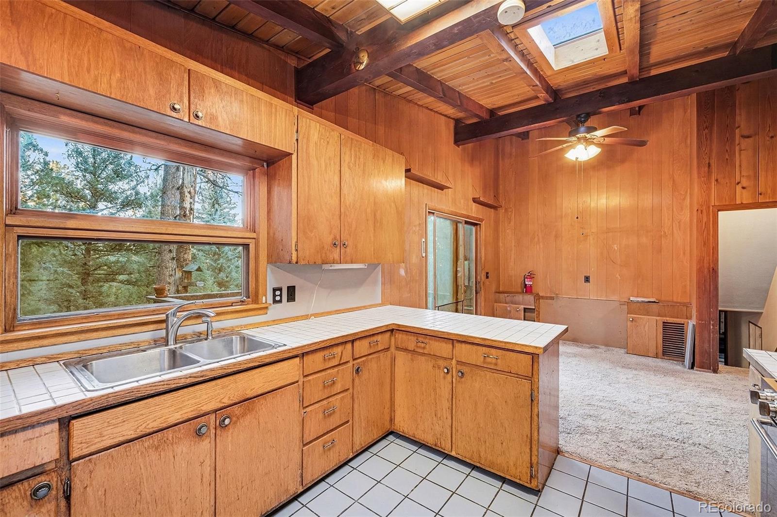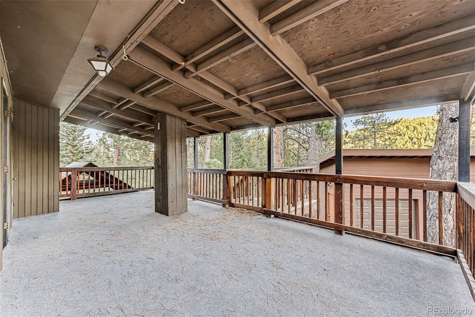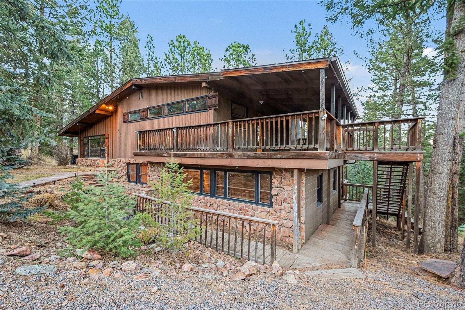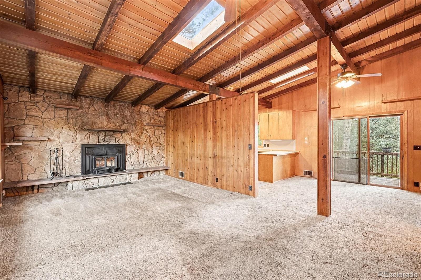 Very unique mid-century modern home in Evergreen with incredible character and huge upside potential — now with a brand new detached workshop perfect for creative projects, hobbyists, or a future home office/studio space! Currently configured as a 3-bed, 1.5-bath home with approximately 2,100 sq ft of living space on 1.53 acres — offering rare privacy with no buildable lots on either side. This property showcases stunning architectural details, including wood-slatted vaulted ceilings throughout the main level and an over-contemporary floor plan flooded with natural light — ideal for modern mountain living and effortless indoor-outdoor flow. The home needs some TLC and is a great fixer upper for a buyer looking to customize & create sweat equity. A walk-out basement expands your options for future living or entertaining space, and built-in features like a sauna, expansive deck, and wood-burning fireplace add to its mountain-charm appeal. Located just minutes from downtown Evergreen, enjoy easy access to local shops, dining, Evergreen Lake, and year-round recreation, all while being surrounded by miles of trails, open space, and mountain views. Quick access to Highway 74 and I-70 makes commuting to Denver or weekend trips to the high country effortless. This is a rare opportunity to create a one-of-a-kind modern mountain home a desirable and private setting. ADDITIONAL INFO ON MECHANICALS. BUYER DEEMED ACCURATE BUT NOT RELIABLE, BUYER AND BUYER'S AGENT TO VERIFY ALL INFO: Roof: 4 years (some small areas not replaced, most were) Furnace: BRAND NEW Electric panel: 2 years Detached 2-car/workshop: 2 years Well: 3 years old, 550’ depth Septic: Pumped and passed county inspection already Propane - Filled 11/11