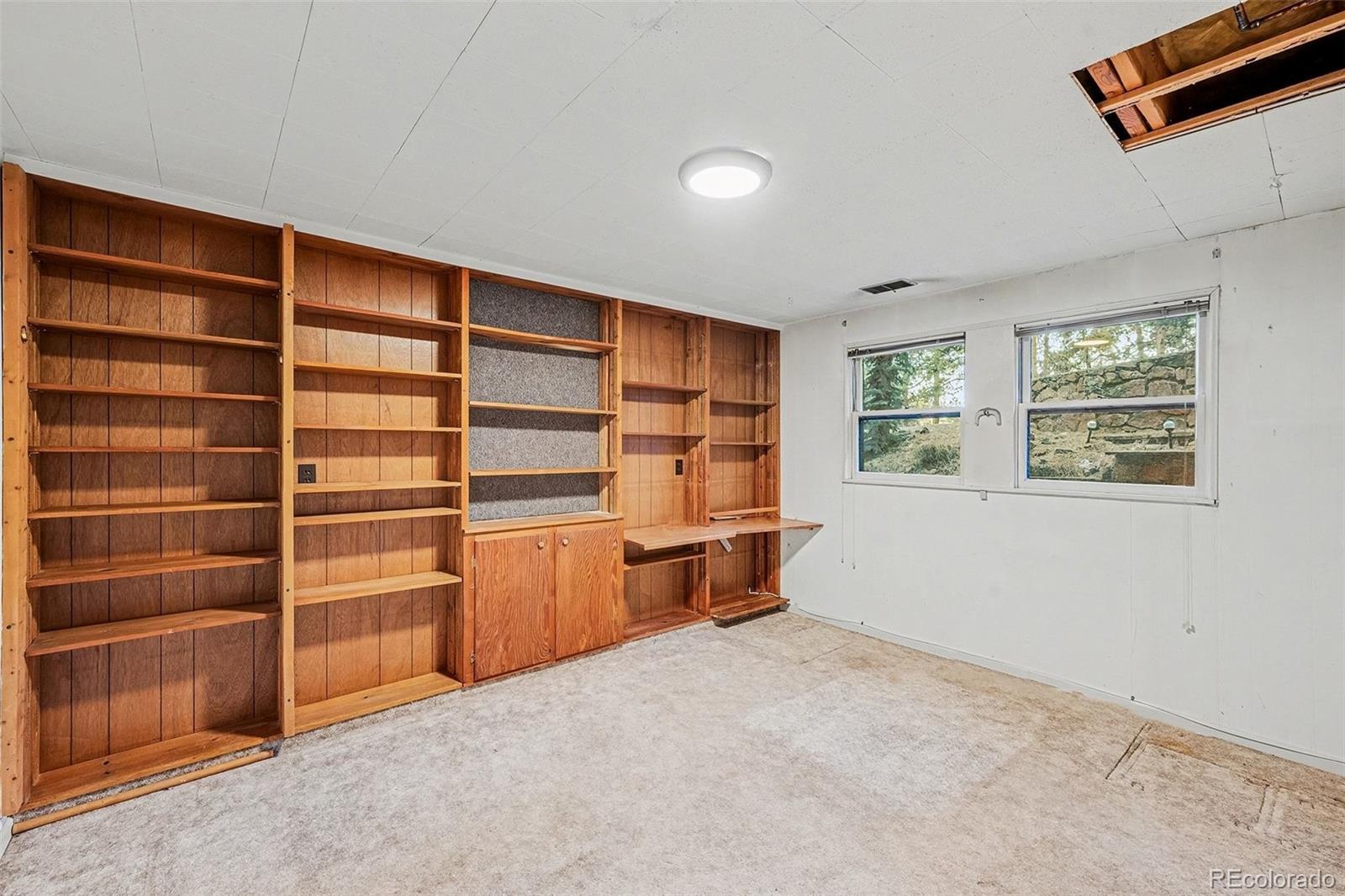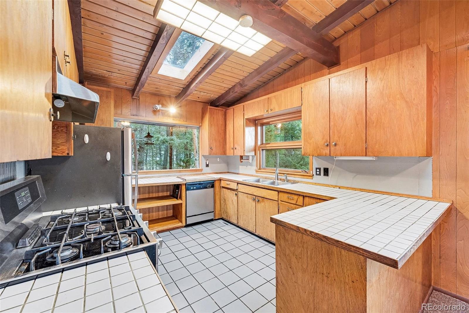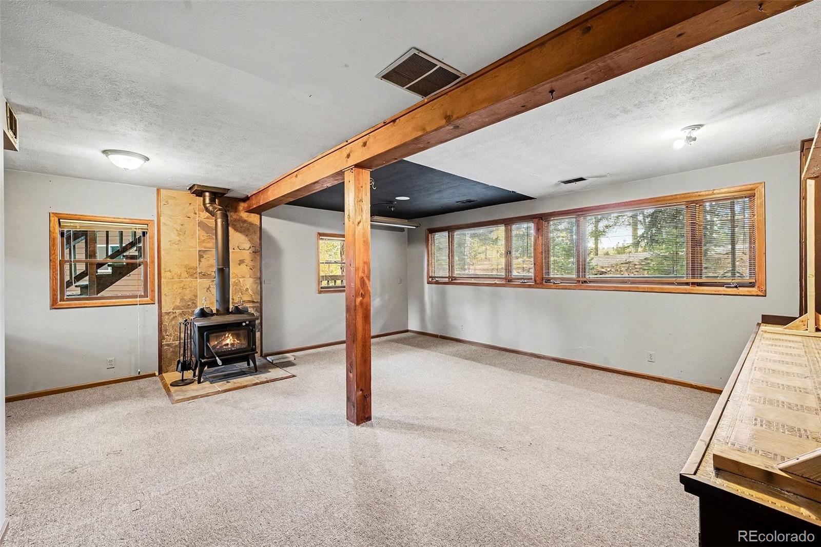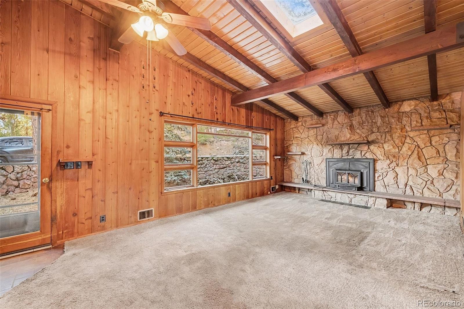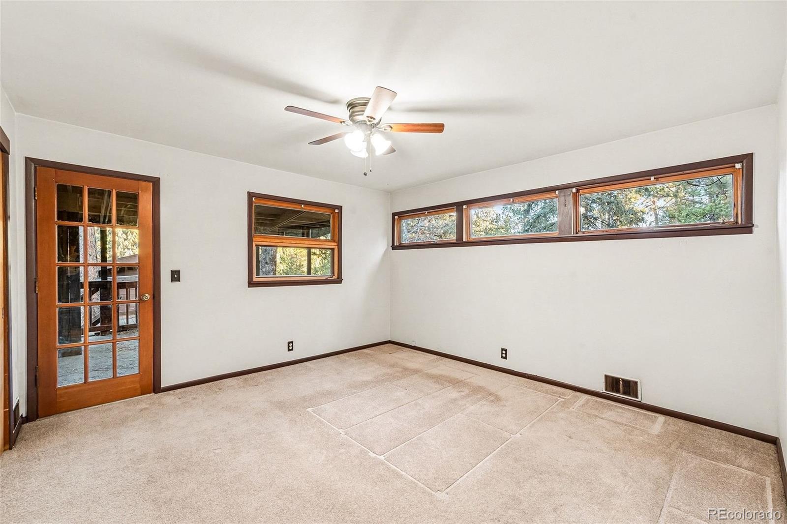 Very unique mid-century modern home in Evergreen with incredible character and huge upside potential — now with a brand new detached workshop perfect for creative projects, hobbyists, or a future home office/studio space! Currently configured as a 3-bed, 1.5-bath home with approximately 2,100 sq ft of living space on 1.53 acres — offering rare privacy with no buildable lots on either side. This property showcases stunning architectural details, including wood-slatted vaulted ceilings throughout the main level and an over-contemporary floor plan flooded with natural light — ideal for modern mountain living and effortless indoor-outdoor flow. The home needs some TLC and is a great fixer upper for a buyer looking to customize & create sweat equity. A walk-out basement expands your options for future living or entertaining space, and built-in features like a sauna, expansive deck, and wood-burning fireplace add to its mountain-charm appeal. Located just minutes from downtown Evergreen, enjoy easy access to local shops, dining, Evergreen Lake, and year-round recreation, all while being surrounded by miles of trails, open space, and mountain views. Quick access to Highway 74 and I-70 makes commuting to Denver or weekend trips to the high country effortless. This is a rare opportunity to create a one-of-a-kind modern mountain home a desirable and private setting. ADDITIONAL INFO ON MECHANICALS. BUYER DEEMED ACCURATE BUT NOT RELIABLE, BUYER AND BUYER'S AGENT TO VERIFY ALL INFO: Roof: 4 years (some small areas not replaced, most were) Furnace: BRAND NEW Electric panel: 2 years Detached 2-car/workshop: 2 years Well: 3 years old, 550’ depth Septic: Pumped and passed county inspection already Propane - Filled 11/11