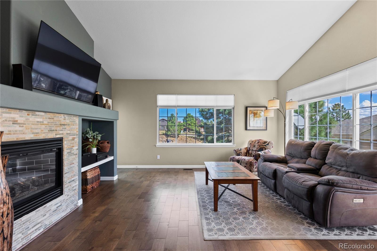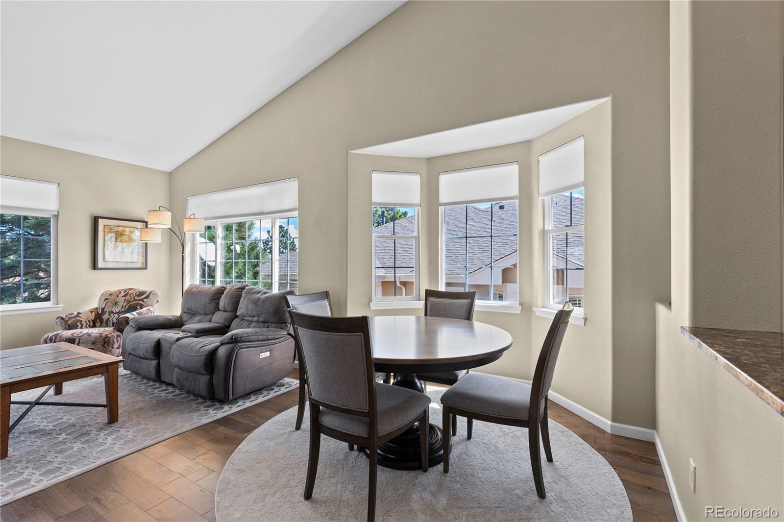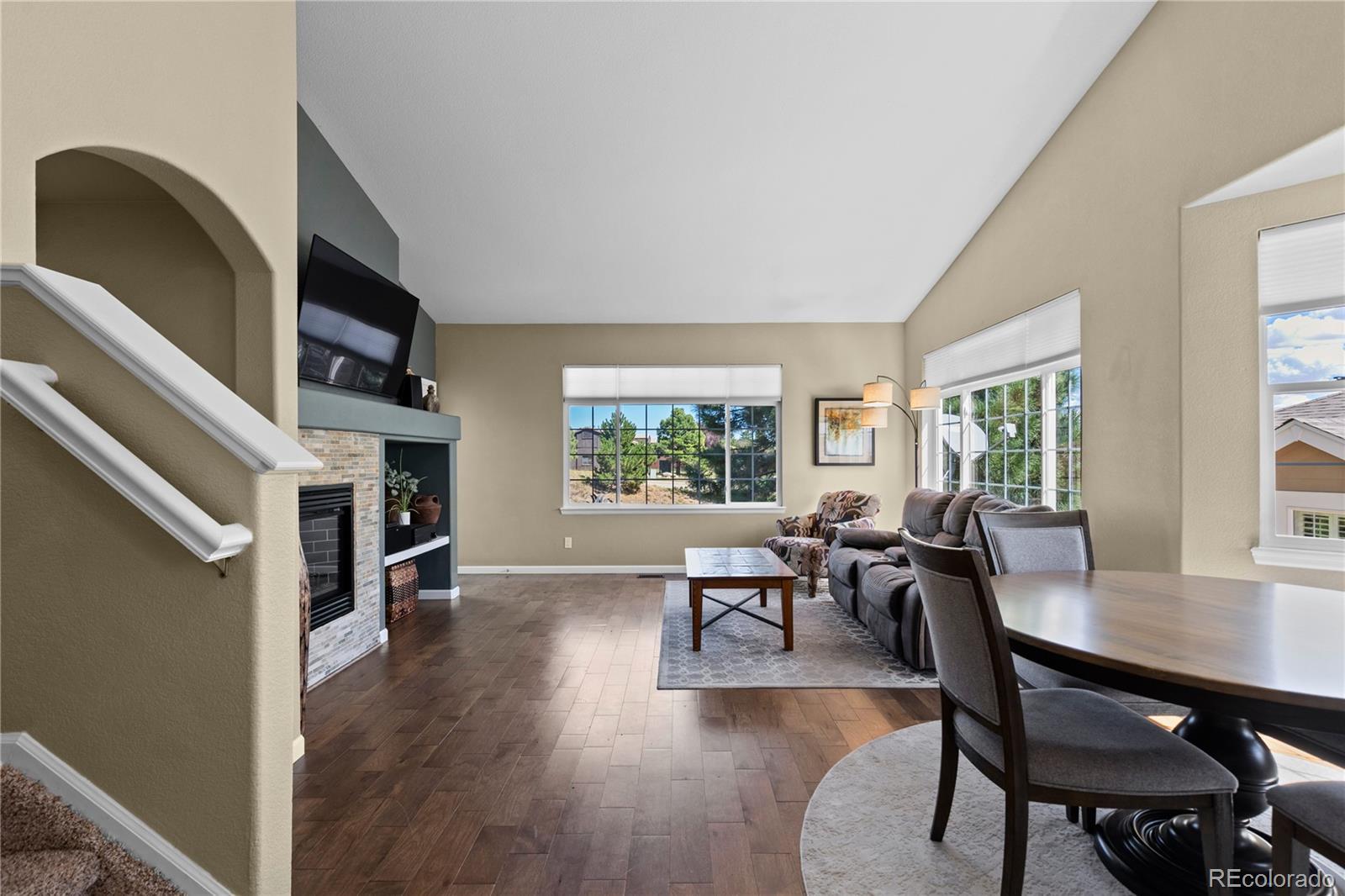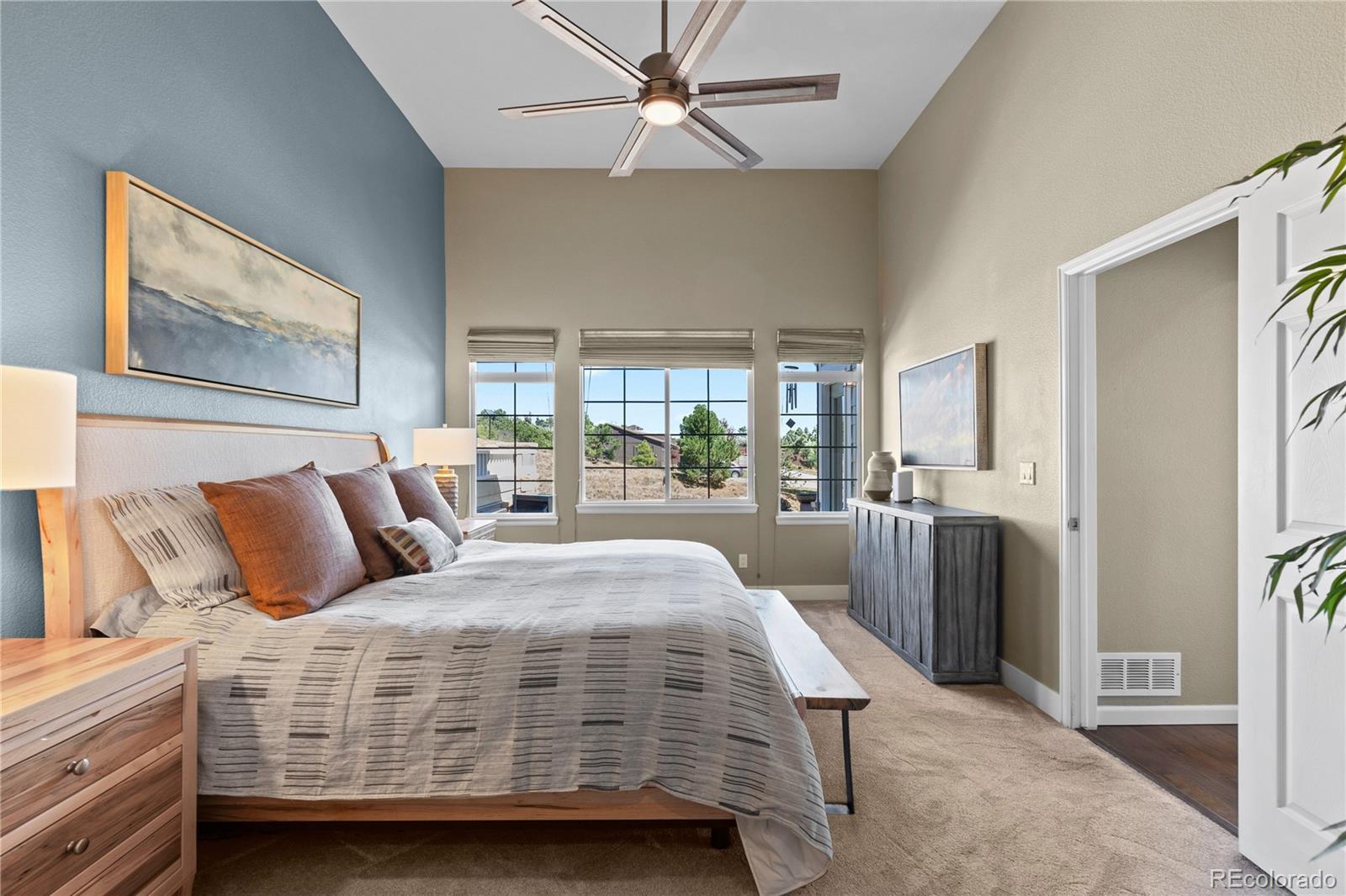 Nestled in the exclusive, low-maintenance enclave of Villa Carriage at Pineridge - adjacent to The Ridge Golf Course and overlooking the scenic expanse of Daniels Park - this beautifully remodeled 3-bedroom, 4-bath townhome offers luxurious living and a true lock-and-leave lifestyle. Rarely available and highly sought-after, this residence has been thoughtfully updated with high-end designer finishes throughout. The light-filled main level welcomes you with soaring vaulted ceilings, hickory hardwood floors, and a striking fireplace wrapped in elegant tile. The gourmet kitchen is both functional and stylish, featuring crisp white cabinetry, granite countertops, glass tile backsplash, newer stainless steel appliances, and tile flooring. A charming bay window in the breakfast nook adds character and natural light. The spacious main-floor primary suite offers privacy and comfort, complete with a fully customized walk-in closet and a spa-like en suite bath featuring a zero-entry tiled shower, dual sinks, upgraded fixtures, and custom lighting. Upstairs, you’ll find a second expansive primary suite with its own ensuite full bath and dual-sink vanity, along with a flexible loft space ideal for a home office, lounge, or reading retreat. The fully finished lower level enhances the home’s versatility, showcasing a new third bedroom and bathroom - perfect for guests or multigenerational living. Step outside to your private patio with a new built-in grill - ideal for outdoor dining with beautifully landscaped surroundings. Located in one of Castle Pines’ most peaceful and well-maintained communities, this turn-key townhome is minutes from golf, trails, shopping, and I-25. A rare opportunity for the discerning buyer seeking elegance, convenience, and timeless Colorado charm.