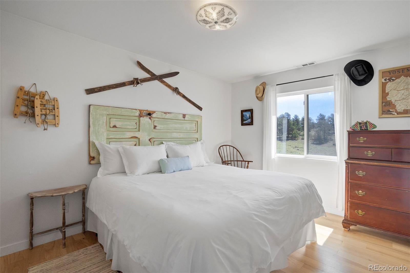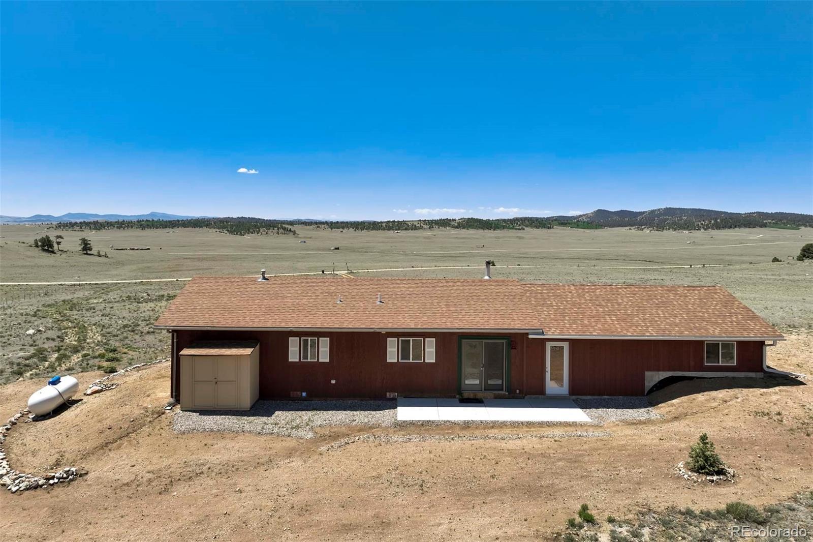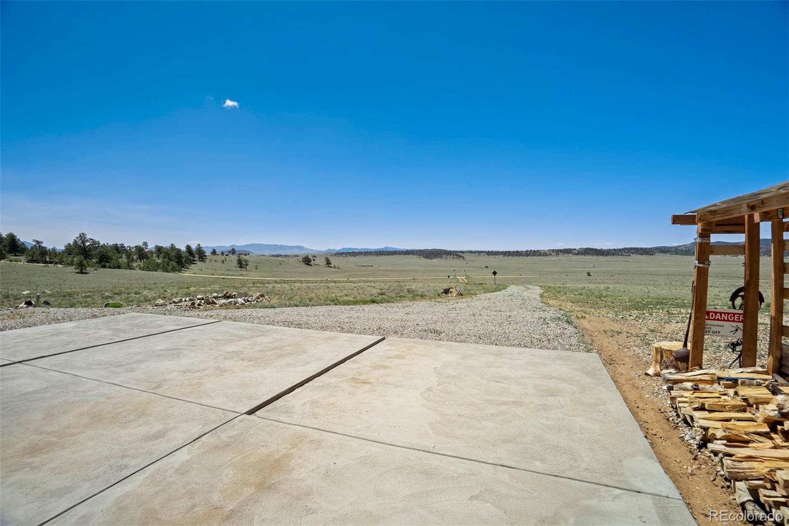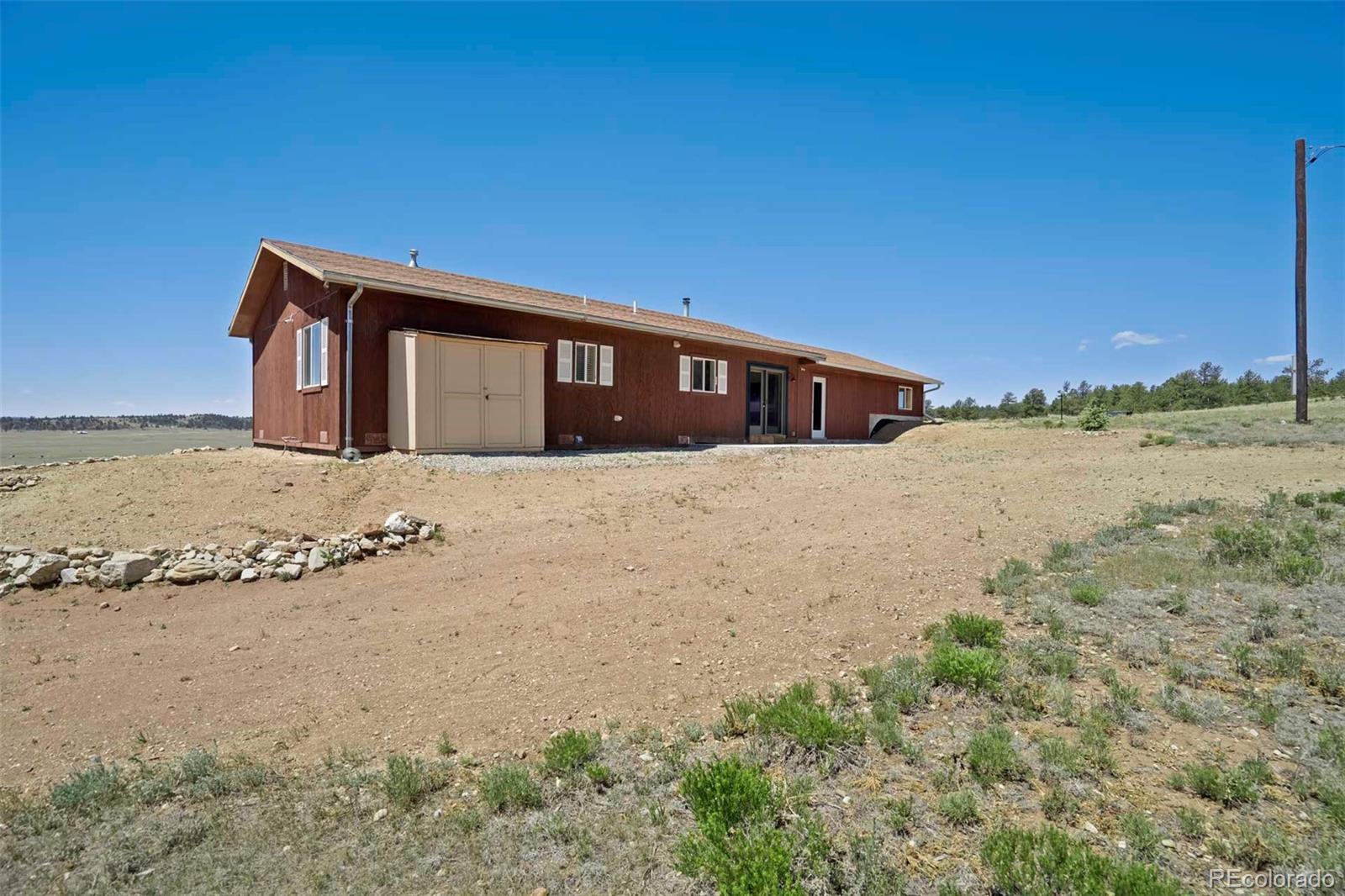This beautifully updated 3-bedroom, 2-bathroom ranch home in Wildwood Rec Village offers 1,056 ft² of living space on a rare, level 10-acre lot. Featuring hickory floors throughout, this cheery abode exudes charm with a cozy living room that flows into the kitchen, complete with matching hickory cabinets. A wood-burning stove adds both ambiance and warmth, perfect for chilly evenings. The primary bedroom includes an attached bath with a unique Shabby Chic barn door and modern fixtures, while two additional bedrooms provide ample space for family, guests, or an office. A second bath and a laundry closet with a full-size washer and dryer are conveniently located in the hall for added functionality. Positioned perfectly for southern exposure, the home enjoys all-day sunlight, filling every room with abundant natural light. The attached 2-car garage is reinforced with spray foam insulation and offers a dedicated workspace area, windows, and an exterior door leading to the backyard. The cemented driveway and porches provide low-maintenance durability, making this property ideal for mountain living. A cool rock fire pit out front adds a welcoming touch, providing an excellent space for outdoor gatherings while enjoying sweeping views of meadows, treed mountain ranges, distant Thirtynine Mile Mountain, and breathtaking sunsets. Although the lot is open with few trees, the surrounding vistas are stunning and expansive. Residents of Wildwood Rec Village enjoy several amenities, including a full-time caretaker, a stocked fishing pond, picnic areas, and RV parking. Located near National Forests, Gold Medal fishing areas, and outdoor activities like skiing, rafting, and hiking, this home offers the ultimate retreat for those seeking both adventure and tranquility in the Colorado Rockies. Whether you're looking for a full-time residence or a weekend getaway, this home combines modern comfort with nature’s beauty, offering a distinctive gem in an exceptional location!