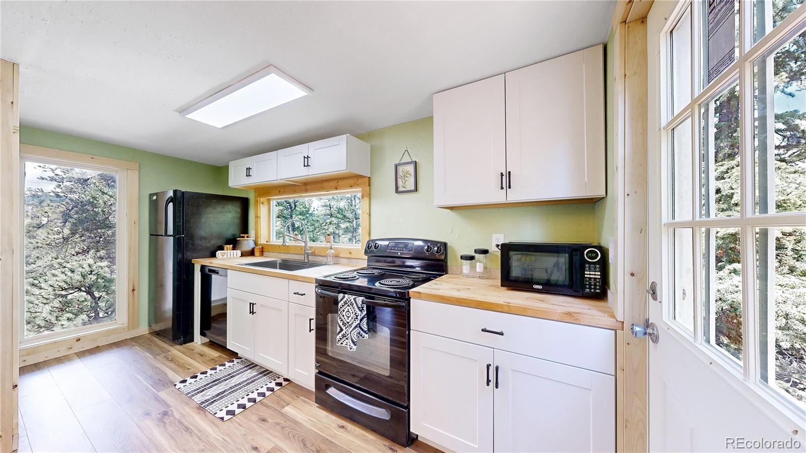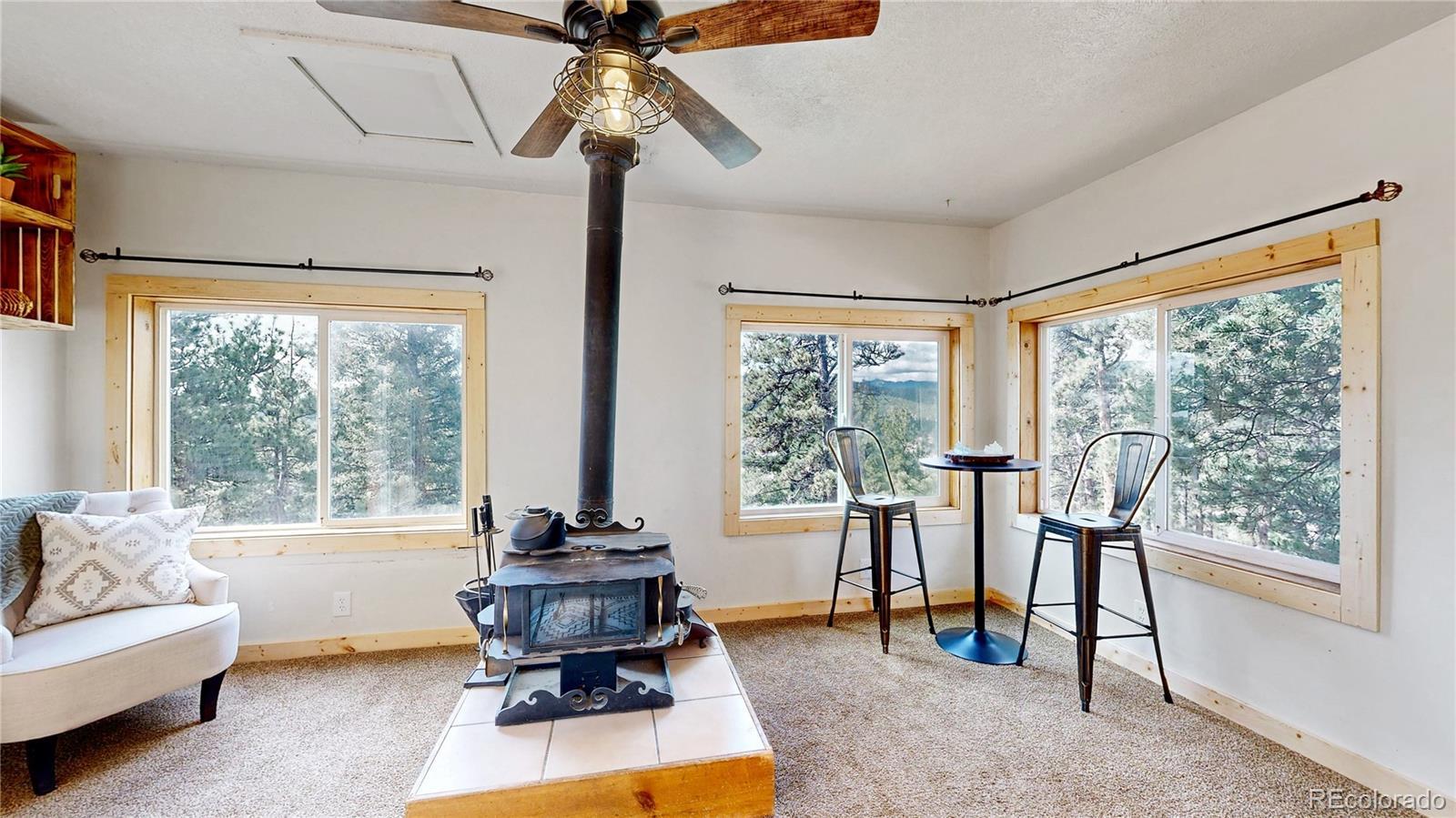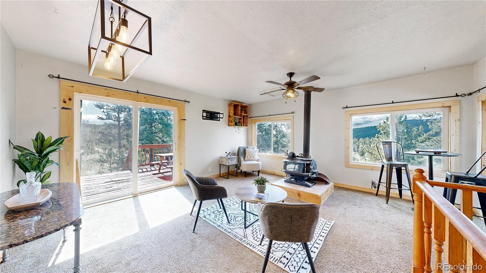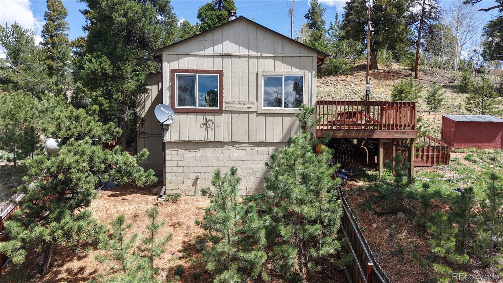 NEW PRICE FOR SERIOUS BUYERS! Mountain solitude, modern basics, and peaceful vibe. Looking for a mountain getaway where the pace slows, the air clears, and the scenery steals the show? This 1-bed, 1-bath cabin in Harris Park offers privacy, affordability, and authentic Colorado character—all with reliable cell service and modern essentials to keep you comfortable. Set on a quarter-acre surrounded by pines, the home features an open-design living room filled with natural light, large windows with peaceful forest views, and a wood-burning stove for cozy evenings. The adjacent kitchen includes butcher block counters, updated cabinetry, a picture window, and a brand-new dishwasher—blending charm with function in a space that feels both rustic and refreshed. Step outside to the oversized deck or unwind at the hand-built stone fireplace and flagstone patio—perfect for morning coffee, sunset dinners, or stargazing in silence. The bedroom is located downstairs with its own entrance, offering a cool, quiet space for rest or retreat. Though modest in natural light, it provides privacy and separation from the main living area—ideal for relaxing, recharging, or simply escaping the everyday. As part of the Harris Park community, you’ll enjoy access to a stocked fishing pond, a community center, and trails leading to nearby Pike National Forest. Just over an hour from Denver, this location balances mountain seclusion with community perks and year-round accessibility. Whether you're seeking a weekend retreat, full-time escape, or affordable foothold in the mountains, this move-in ready gem delivers simplicity, serenity, and a lifestyle that’s hard to find—and easy to love.