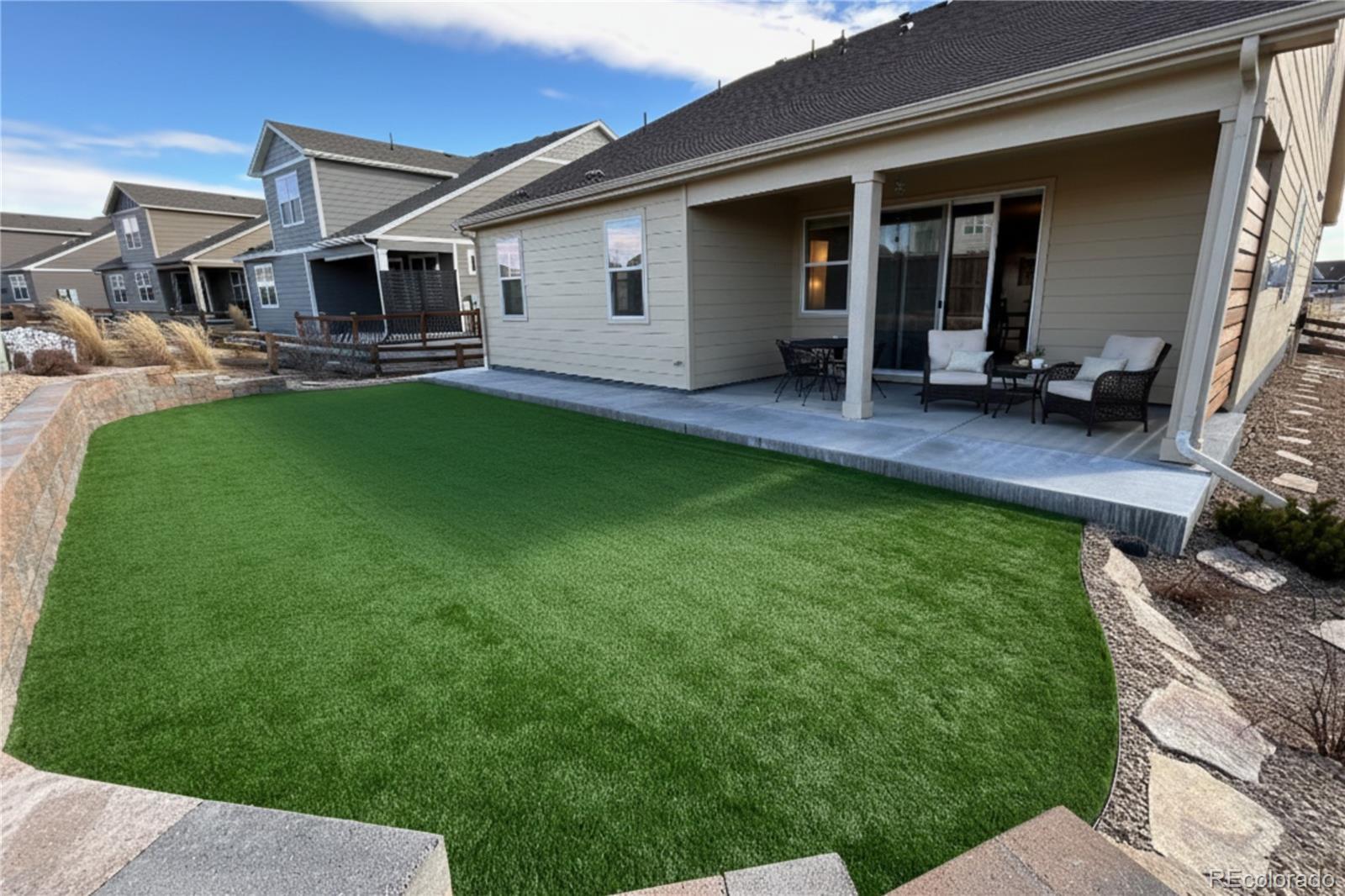 Step inside and feel the warmth of this inviting home where the open layout makes every space flow with ease. The kitchen sits at the heart of it all with gleaming quartz counters and stainless steel appliances that set the stage for relaxed mornings or lively gatherings. The main floor primary suite offers a spacious retreat that feels tucked away from the rest of the home. Head upstairs to discover a private loft that feels like its own little hideaway complemented by a full bath and a comfortable third bedroom that is perfect for guests or quiet work time. Out back, the yard is clean, functional, and modern. The new retaining wall adds structure, while the artificial turf provides beauty and low maintenance year-round. The enlarged covered concrete patio offers a practical space for outdoor use, and the concrete path creates a clear, easy connection to the driveway. With an integrated smart-home system that brings comfort and control to your fingertips, creating a seamless living experience tailored to today’s lifestyle. Control security, climate, indoor/outdoor lighting, garage door operation, front entrance locks, and window monitoring all from your device or with voice assistance. Nestled beside the Todd Creek Golf Course, with miles of trails and a spacious community park just steps away, it’s a place where outdoor living feels natural. With quick access to E-470, you can quickly get to DIA, Denver, & the entire Front Range while still being close to shopping and recreation, this home brings comfort and charm together in a way that feels truly welcoming.