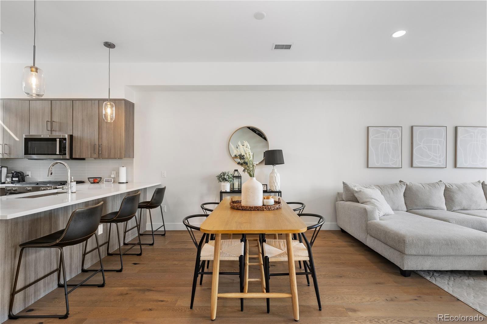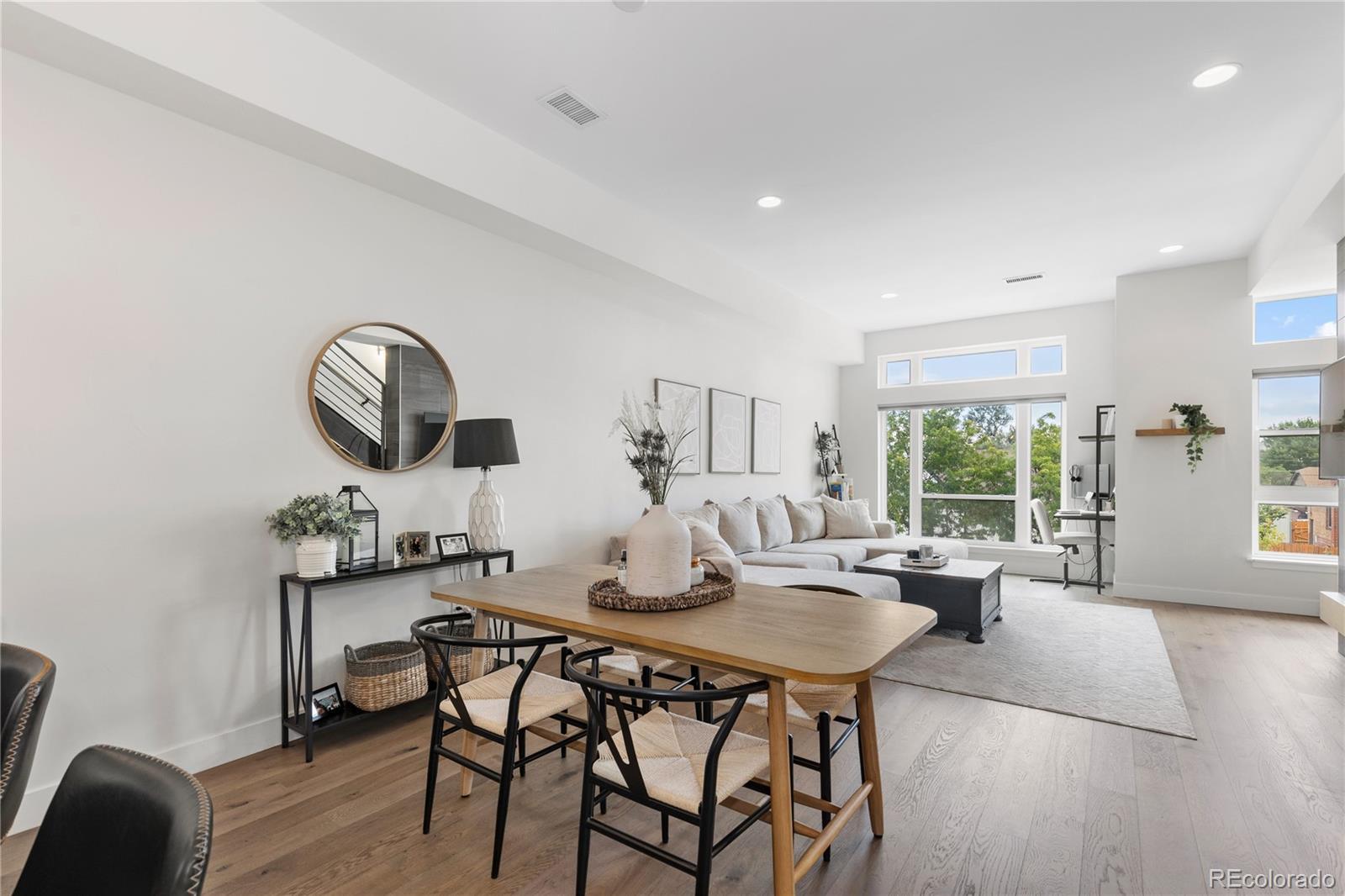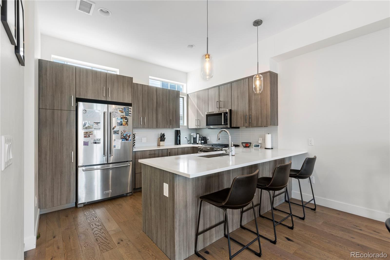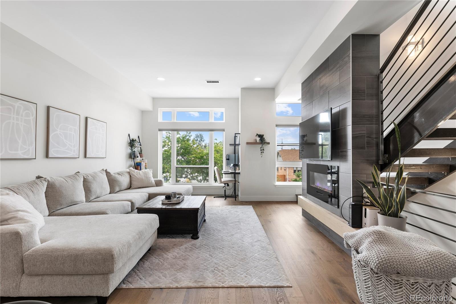 Welcome to 1565 Perry Street, Denver, CO – an exquisite residence in the heart of Sloan's Lake, nestled within the highly sought-after community of Perry Row. This home offers a blend of modern comfort and elegant design, just steps from the lake and all the amazing amenities the area has to offer. Boasting 1,426 square feet of well-appointed living space, this home features 2 bedrooms and 3 bathrooms. Upon entering, you'll be greeted by a spacious foyer leading to a formal dining room perfect for entertaining. The open-concept living area is accentuated by high ceilings and dual pane windows, filling the space with natural light and providing stunning city views. Cozy up by the fireplace in the living room, which seamlessly flows into the kitchen dining area.The kitchen is a chef's delight, equipped with stainless steel appliances, a range, range hood, refrigerator, dishwasher, and microwave. Ample storage is provided by the pantry and custom cabinetry. The adjacent powder room adds convenience for guests. The primary bedroom suite offers a tranquil retreat with a walk-in closet and a private balcony that overlooks serene lake views. The en-suite bathroom features modern fixtures and finishes. The second bedroom is equally spacious and includes its own well-appointed bathroom. For those working from home, the dedicated home office provides a quiet and productive environment. The rooftop is a spacious retreat to entertain and unwind. The attached 2 car garage provides a generous amount of storage . Don't miss the opportunity to make this stunning property your new home. Schedule a viewing today and experience the best of Denver living at 1565 Perry Street, in the vibrant and desirable Perry Row community of Sloan's Lake.