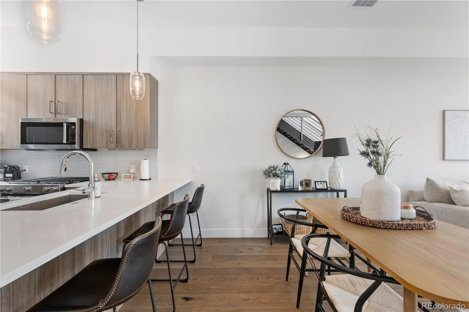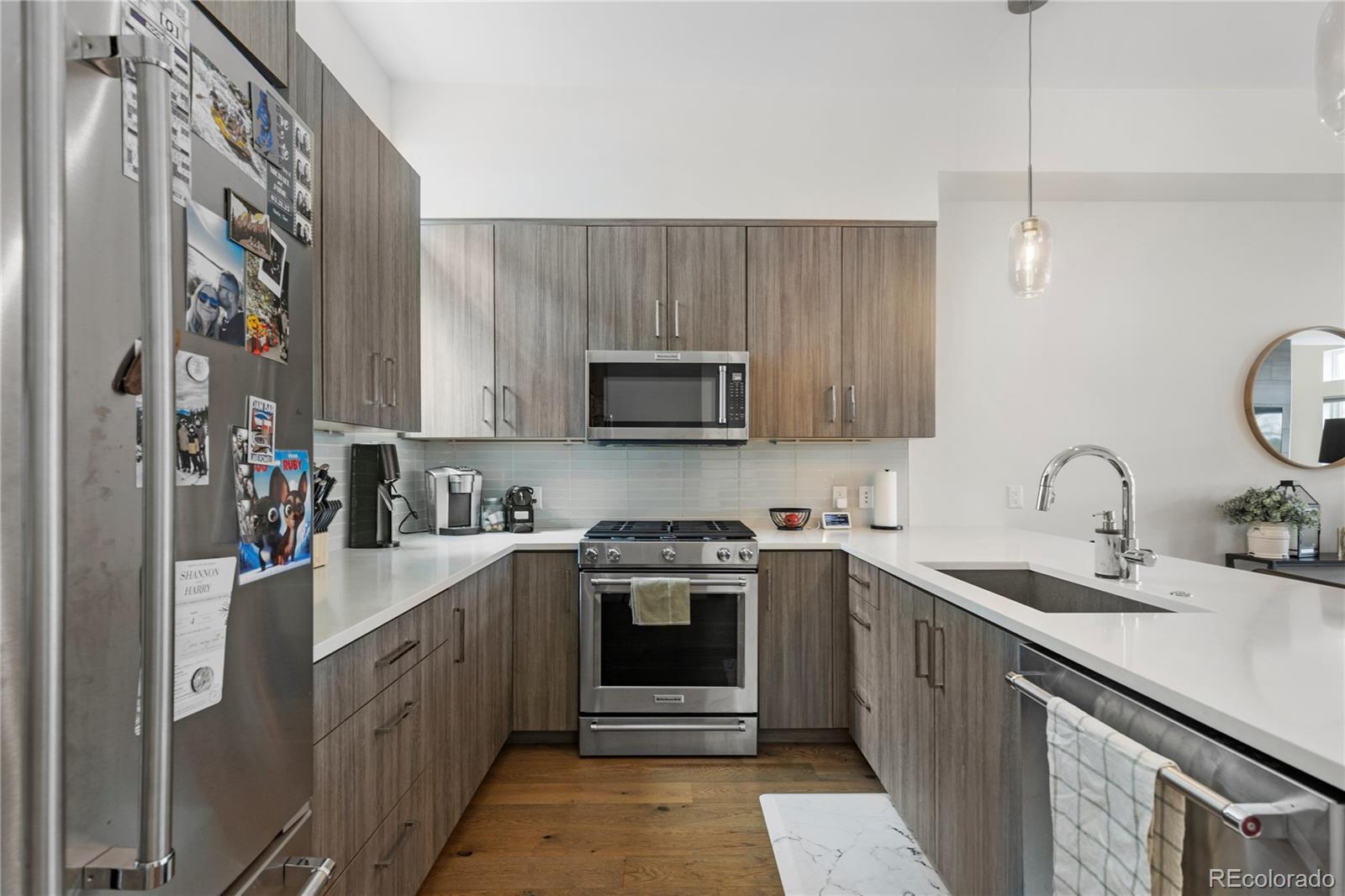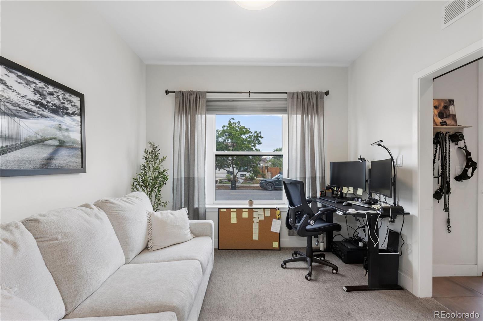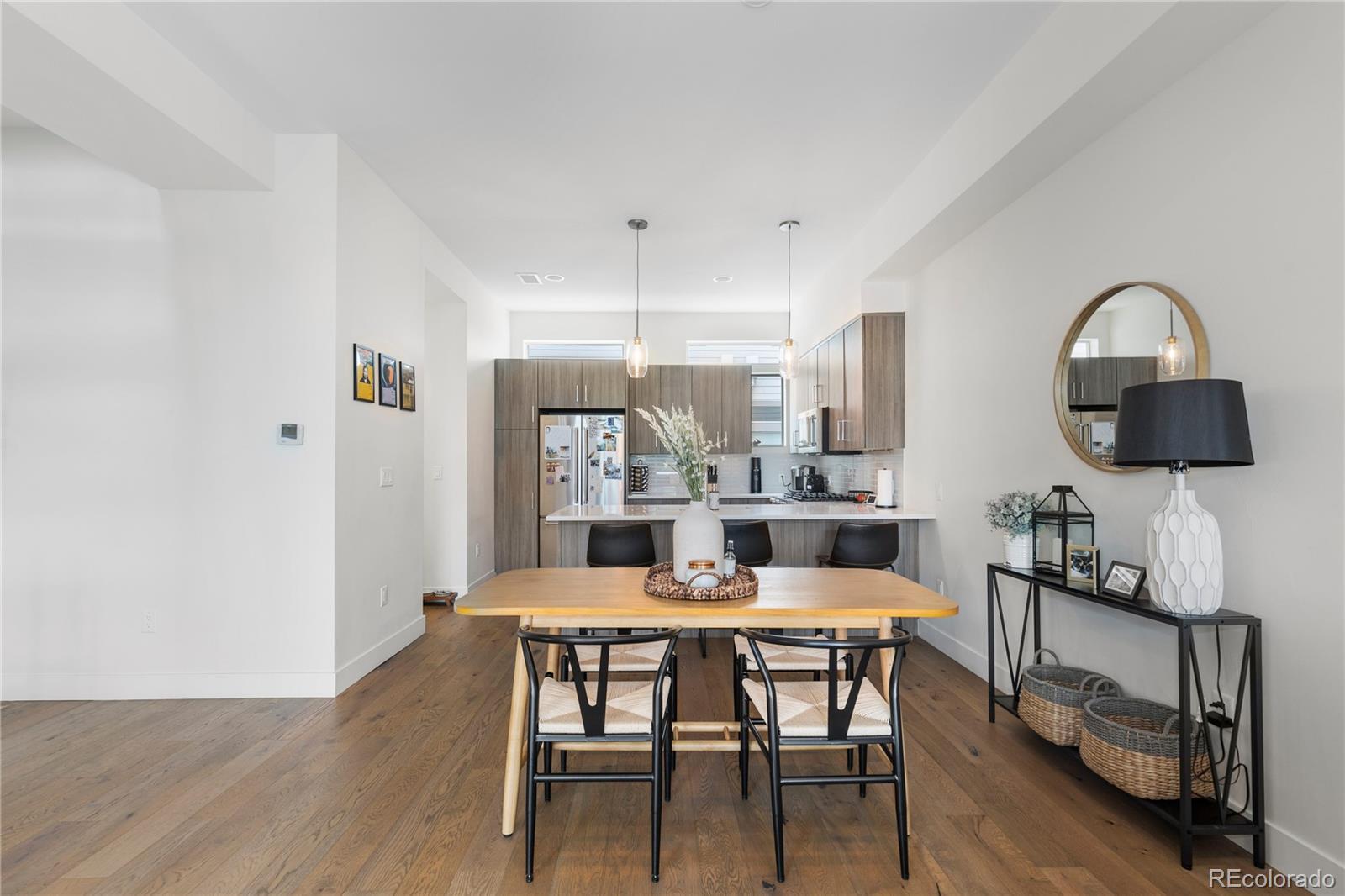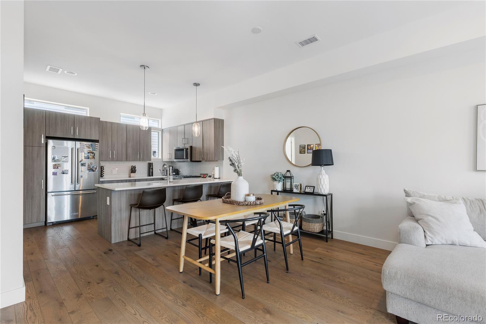 Welcome to 1565 Perry Street, Denver, CO – an exquisite residence in the heart of Sloan's Lake, nestled within the highly sought-after community of Perry Row. This home offers a blend of modern comfort and elegant design, just steps from the lake and all the amazing amenities the area has to offer. Boasting 1,426 square feet of well-appointed living space, this home features 2 bedrooms and 3 bathrooms. Upon entering, you'll be greeted by a spacious foyer leading to a formal dining room perfect for entertaining. The open-concept living area is accentuated by high ceilings and dual pane windows, filling the space with natural light and providing stunning city views. Cozy up by the fireplace in the living room, which seamlessly flows into the kitchen dining area.The kitchen is a chef's delight, equipped with stainless steel appliances, a range, range hood, refrigerator, dishwasher, and microwave. Ample storage is provided by the pantry and custom cabinetry. The adjacent powder room adds convenience for guests. The primary bedroom suite offers a tranquil retreat with a walk-in closet and a private balcony that overlooks serene lake views. The en-suite bathroom features modern fixtures and finishes. The second bedroom is equally spacious and includes its own well-appointed bathroom. For those working from home, the dedicated home office provides a quiet and productive environment. The rooftop is a spacious retreat to entertain and unwind. The attached 2 car garage provides a generous amount of storage . Don't miss the opportunity to make this stunning property your new home. Schedule a viewing today and experience the best of Denver living at 1565 Perry Street, in the vibrant and desirable Perry Row community of Sloan's Lake.