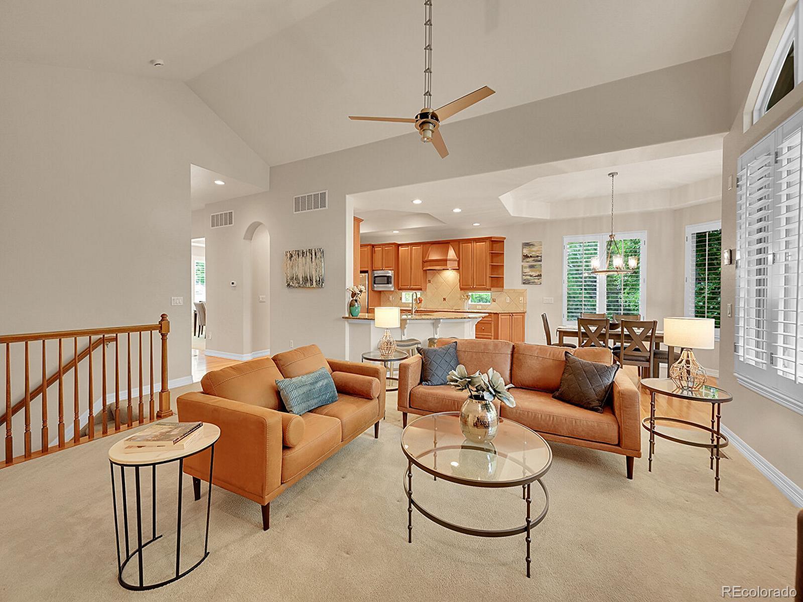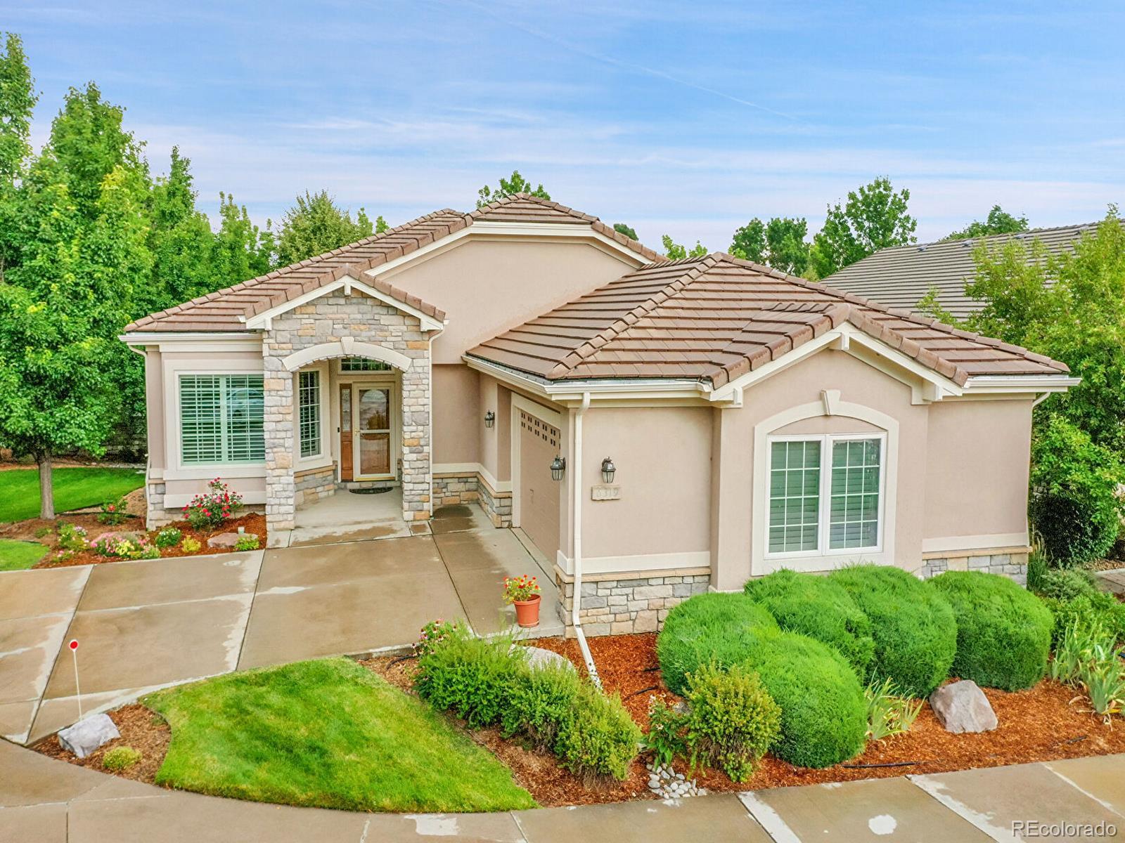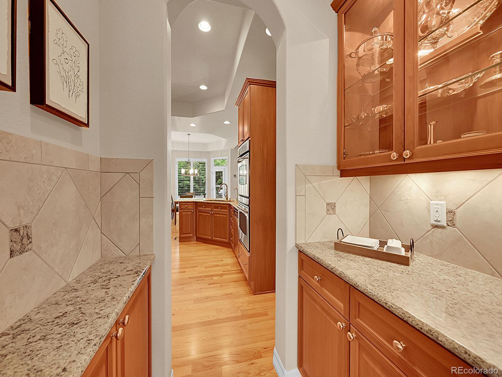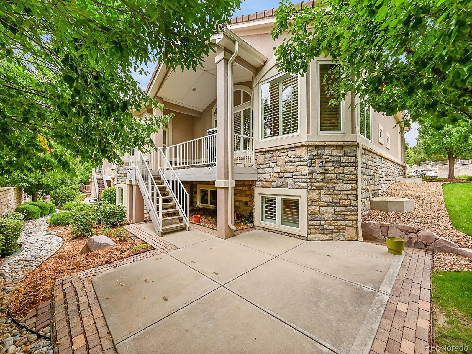 Outstanding south-facing 4-bed, 3-bath ranch with a finished garden-level basement in Windmill Reserve! Perfectly positioned on a private side-corner lot, this light-filled home offers over 4,400 sq. ft. of space with high ceilings, oversized windows, and a layout designed for main-level living and entertaining. Inside, the formal dining room features a tray ceiling and wraparound windows and connects to the kitchen via a butler’s pantry for seamless dinner service. A chef’s dream, the kitchen boasts double ovens, stainless-steel appliances, abundant wood cabinetry, spacious granite counters, and an oversized peninsula for casual dining. A spacious breakfast nook opens to the deck for effortless hosting, indoors and out. The living room offers an inviting gathering space framed by wall-to-wall arched windows and a granite laden gas fireplace. The sprawling primary suite is a private retreat, with a bay-window seating area, deck access, and a spa-inspired 5-piece bath featuring separate vanities, a jetted tub, oversized shower, and walk-in closet. A second bedroom and three-quarter bath complete the main level, along with a versatile office and an oversized laundry room. Downstairs, an expansive rec room with a wet bar offers endless possibilities—game nights, movie marathons, or a home gym. Plus, two generous bedrooms and a three-quarter bath create a private space perfect for guests or multigenerational living, while unfinished basement storage and an oversized 2-car garage allow plenty of space for seasonal décor and hobby gear. Outside, enjoy a green lawn, blooming florals, upper deck, and patio ideal for sunny afternoons. Enjoy abundant guest parking, a rare perk of the home’s sought-after side-corner lot! Step out the front door to the Colorado Front Range Trail for a walk to Cherry Creek State Park, play a round at nearby Valley Country Club, or explore elite dining and shopping at Park Meadows Mall and the heart of DTC just 15 minutes away.