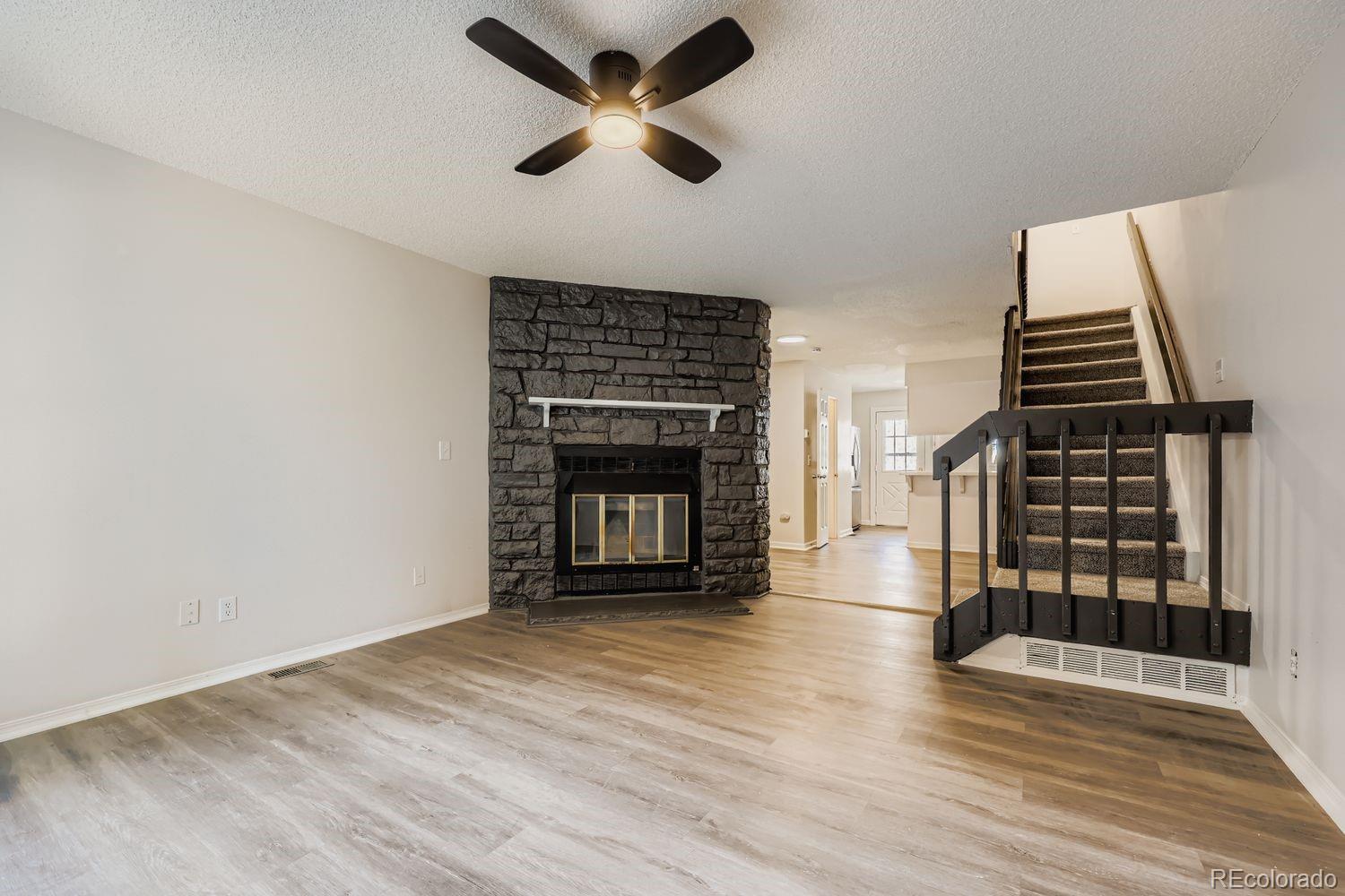 This bright and inviting end-unit features vaulted ceilings in the upper floor, fresh paint, new carpet and floors. The main floor offers a cozy wood-burning fireplace, and a deck off the kitchen. Enjoy a walk-out basement with opening to a private fenced patio—perfect for entertaining. Community amenities include a pool, and the home comes with one assigned parking space. Move-in ready and full of charm!