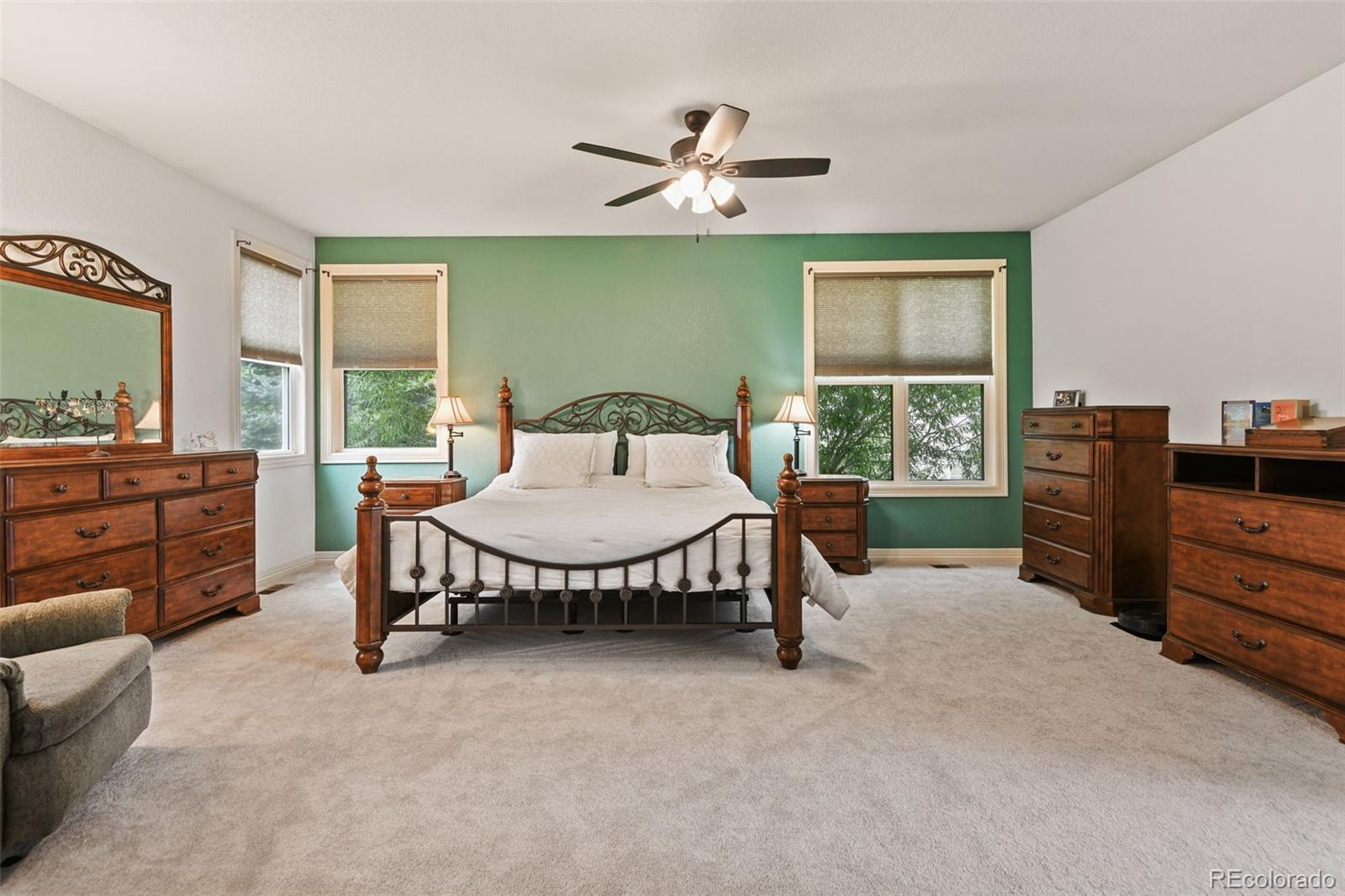 Set on a spacious cul-de-sac lot in the highly desirable Greenfield neighborhood, this home delivers incredible VALUE with over 4,000 finished square feet and room for everyone to spread out. The OPEN LAYOUT makes a great first impression with a sweeping curved staircase and elegant living and dining rooms, while the main-floor bedroom or office adds everyday flexibility. * The remodeled KITCHEN shines with white cabinetry, designer backsplash, black hardware, and tons of storage, and it flows seamlessly into the LARGE FAMILY ROOM with soaring ceilings and walls of windows overlooking the park-like backyard. Upstairs, you’ll love the oversized LOFT, perfect for a second living area, homework zone, or play space, plus three bedrooms including a huge luxurious primary suite with double-door entry, custom built-ins, and a refreshed five-piece bath. * Even more space waits in the FINISHED BASEMENT with a wet bar and plenty of room for movies, games, fitness, or hobbies. * Outside is an entertainer’s dream: OUTDOOR KITCHEN, multiple patios, hot tub, tranquil water feature, expansive lawn, and a backyard SHED for extra storage. The 3-CAR GARAGE even includes a 220 EV outlet for added convenience. * With its fresh updates, generous square footage, large private lot, and prime location, this beautiful home blends comfort, flexibility, and Colorado living, at a fantastic value for this size.