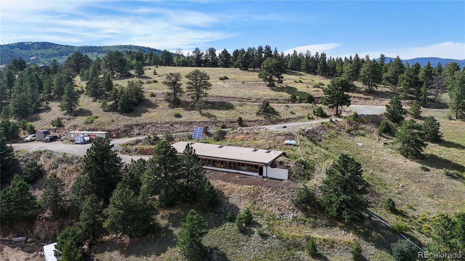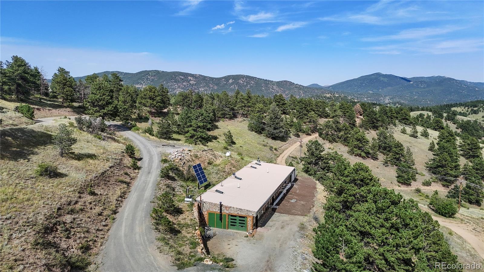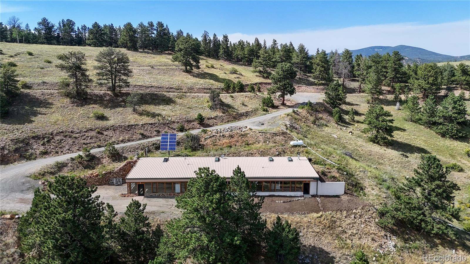 Serene and secluded, this unique custom Earth Ship home built in 2004 and updated in 2025. This property is nestled into approximately 30.5 acres and offers a rare blend of mountain retreat and comfortable modern living with two bedrooms and two full baths set within a one-level design elegantly embedded into its hillside site. As you enter, new flooring flows through an open living and dining space warmed by gas and geothermal heat, while walls of concrete construction and high ceilings create an airy, light-filled ambiance. The step-up kitchen includes tile countertops, stainless steel appliances, a gas cooktop, double ovens, and generous cabinetry, perfect for both everyday cooking and hosting friends. The primary suite includes generous closet space and a well-appointed bath with tile finishes, while an additional bedroom and half bathroom serve guests with thoughtful comfort. Property includes several historic mining sites and relics. Surrounded by mature pines, expansive views of the Rocky Mountains, and open space, the location is a nature lover’s dream yet remains just minutes from the historic town of Central City and Black Hawk with their gaming, dining, and cultural venues. Outdoor enthusiasts will enjoy easy access to hiking and mountain biking in nearby Black Hawk open space, winter recreation at nearby ski areas, and scenic drives along Central City Parkway into Idaho Springs. Located within the Gilpin County school district, this home offers tranquility, mountain lifestyle, and dependable craftsmanship a rare offering among mountain estate properties.