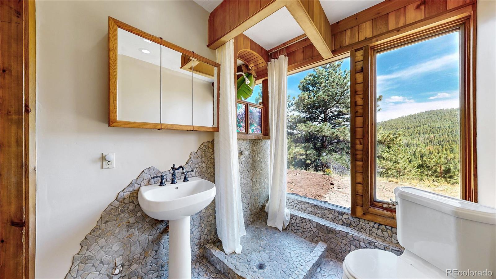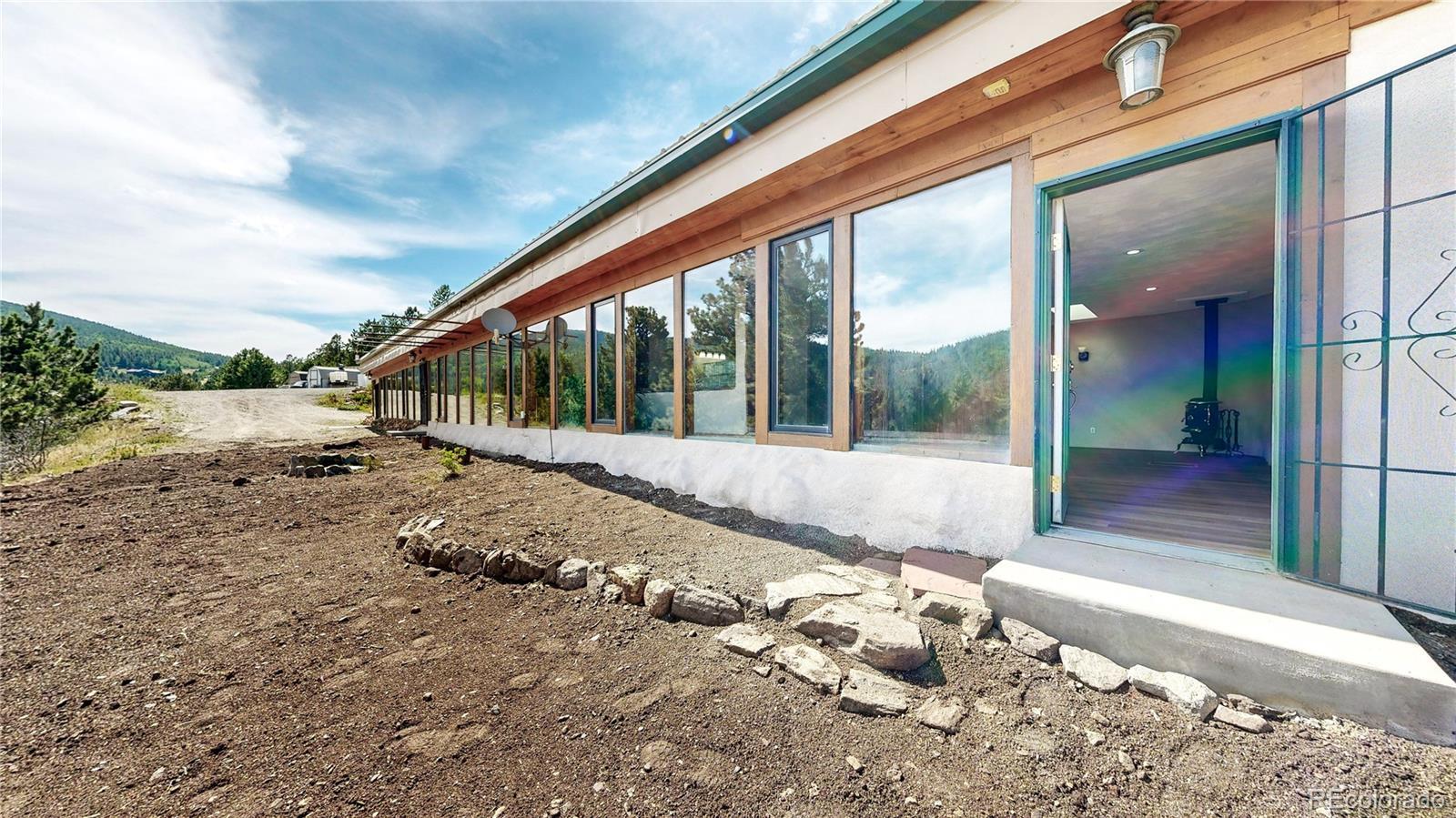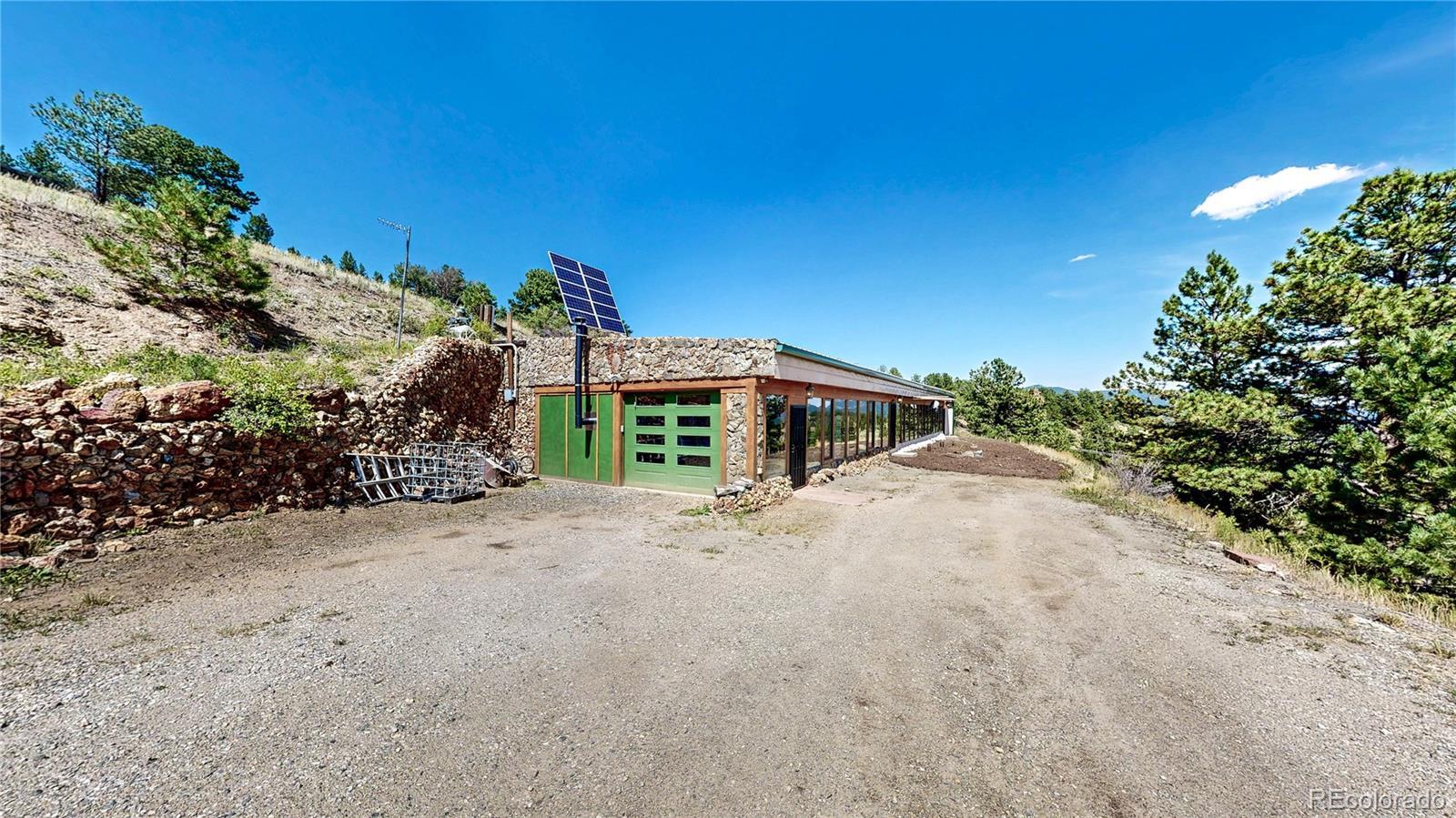 Serene and secluded, this unique custom Earth Ship home built in 2004 and updated in 2025. This property is nestled into approximately 30.5 acres and offers a rare blend of mountain retreat and comfortable modern living with two bedrooms and two full baths set within a one-level design elegantly embedded into its hillside site. As you enter, new flooring flows through an open living and dining space warmed by gas and geothermal heat, while walls of concrete construction and high ceilings create an airy, light-filled ambiance. The step-up kitchen includes tile countertops, stainless steel appliances, a gas cooktop, double ovens, and generous cabinetry, perfect for both everyday cooking and hosting friends. The primary suite includes generous closet space and a well-appointed bath with tile finishes, while an additional bedroom and half bathroom serve guests with thoughtful comfort. Property includes several historic mining sites and relics. Surrounded by mature pines, expansive views of the Rocky Mountains, and open space, the location is a nature lover’s dream yet remains just minutes from the historic town of Central City and Black Hawk with their gaming, dining, and cultural venues. Outdoor enthusiasts will enjoy easy access to hiking and mountain biking in nearby Black Hawk open space, winter recreation at nearby ski areas, and scenic drives along Central City Parkway into Idaho Springs. Located within the Gilpin County school district, this home offers tranquility, mountain lifestyle, and dependable craftsmanship a rare offering among mountain estate properties.