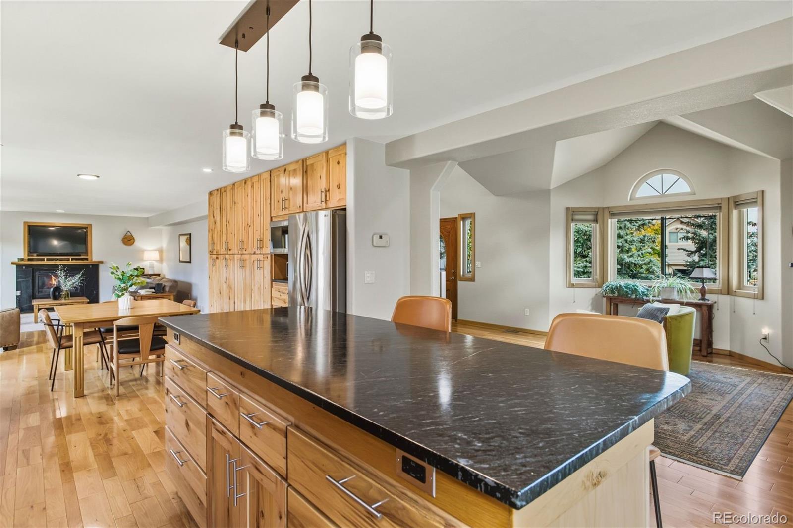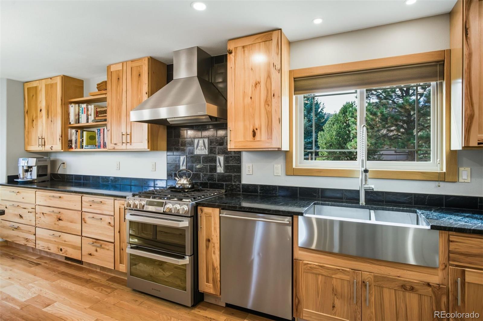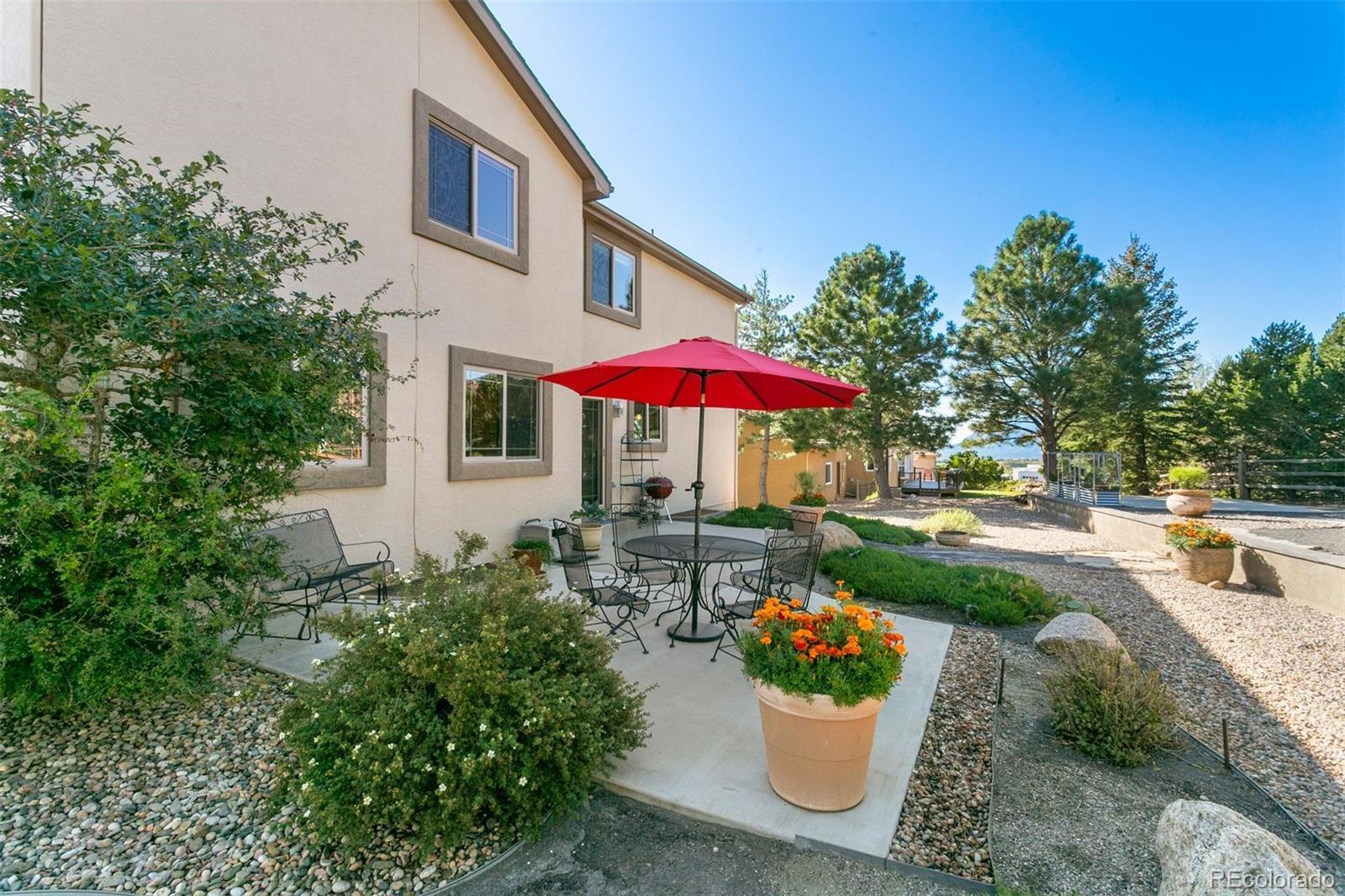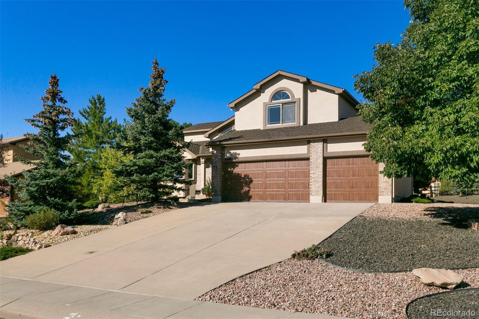 The One for Sophistication. Extensively remodeled with premium craftsmanship and enduring materials throughout. Genuine white oak hardwoods span the main and upper levels, matched by engineered planks on the stairs and lower level for a seamless, modern aesthetic. Every room reflects thoughtful updates—vinyl Milgard windows, wood trim, fresh finishes, and cohesive detail. The redesigned entry features a striking staircase with horizontal metal railings rising to the two-story living room, where a soapstone-surround gas fireplace with custom prairie art tile and floating bookshelves create a functional focal point. The remodeled kitchen centers on a two-level soapstone island, hickory cabinetry, stainless steel LG gas range with ducted hood, floating shelves, and rich soapstone accents. The adjacent family room includes a second fireplace and opens to a backyard designed with premium xeriscaping, raised garden beds, and a gas fire feature framed in stone. The vaulted primary suite offers picture-window views of Ute Valley Park, and evening city lights. The complementing en suite includes a remodeled bath with a stylish clawfoot tub, & frameless glass shower with custom tile. Three upper bedrooms share a full bath, and each bedroom has their own unique westerly views, be it rock formations or the shoulder of Pike's Peak. The basement includes a bright recreation room with walkout access, granite wet bar, and guest suite. Paid-off Solar Panels keep utility costs efficient, and the stucco exterior provides enduring style and value. The finished three-car garage with 200-amp service and two 220V outlets offers ample storage and organization. Set on a quiet cul-de-sac in Colorado Springs’ established Mountain Shadows community, this home offers no HOA dues, sweeping views, and a location minutes from Garden of the Gods, Ute Valley Park, and the Air Force Academy. Colorado Springs District 11 schools. Passionate refinement meets everyday function. Elevate your lifestyle.