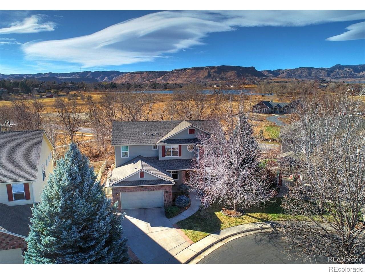 Beautifully updated home in Wyndham Park is a well-maintained smart home that sits on a quiet cul-de-sac and boasts numerous recent updates. The home now features a remodeled master bathroom, freshly painted interior, new roof, new hot water heater, updated AC system, and a new refrigerator, washer, dryer, and dishwasher. Additional enhancements include new carpet, updated lighting in the kitchen, dining room, and upstairs bedrooms, an updated powder bathroom with new toilets throughout the home, and a remodeled back patio—perfect for outdoor entertaining. Step inside to a vaulted entry and living room filled with natural light and mountain views. The main level offers Brazilian cherry wood floors throughout the living room with fireplace, dining room, office/study, and a kitchen with stainless steel appliances, large granite countertops, and a half bath. The basement provides a spacious family room, media room, custom wet bar/refreshment area, storage, a bedroom, and full bathroom. Upstairs, the master bedroom impresses with an elegant double-door entrance, remodeled en suite bath, and walk-in closet. Two additional bedrooms share a Jack and Jill bath, complemented by a versatile loft that can serve as an office, exercise space, or playroom. The south-facing, private backyard is fully fenced and thoughtfully designed with a level grassy area, raised garden beds, a rock garden with drought-tolerant plants, and two mature shade trees. From here, enjoy stunning sunset and mountain views. Ideally located, the home is a short distance to parks, walking paths, restaurants, shops, grocery stores, and the YMCA, with quick access to Boulder, Golden, Nederland, Denver, I-70, and the Wheat Ridge/Ward light rail station. With extensive updates and a prime location, this home is move-in ready and won’t last long
