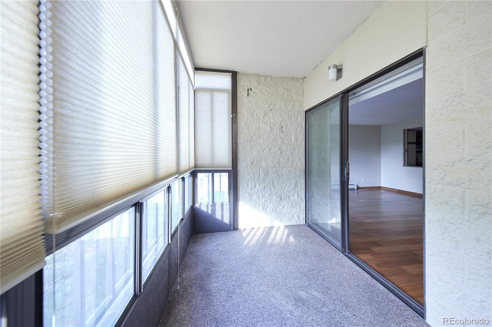 Welcome home to this beautiful two-bedroom, two-bathroom condo featuring a spacious open floor plan and thoughtful design throughout. Ideally situated on the sixth floor, a private enclave within the highly sought-after 55+ Heather Gardens community, this home offers both comfort and convenience. Step inside to an inviting living area filled with warm light from the enclosed private sunroom, which highlights the generous living and dining spaces. The expansive primary suite includes a large walk-in closet and a well-designed three-quarter bath, while the secondary bedroom and full hall bath provide flexibility for guests or additional living space. Residents of this vibrant community enjoy top-tier amenities, including a golf course, indoor and outdoor pools, clubhouse, a recreation center, and 24-hour security with keycard entry. Conveniently located near DTC, Cherry Creek Reservoir, shopping, dining, and major highways, this home offers the perfect blend of lifestyle and location.