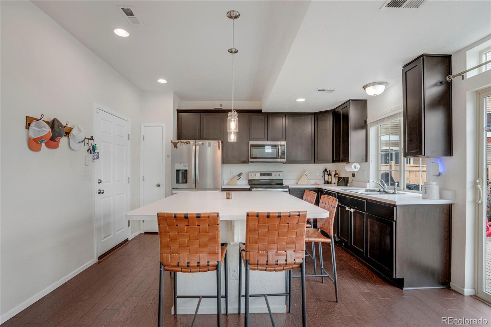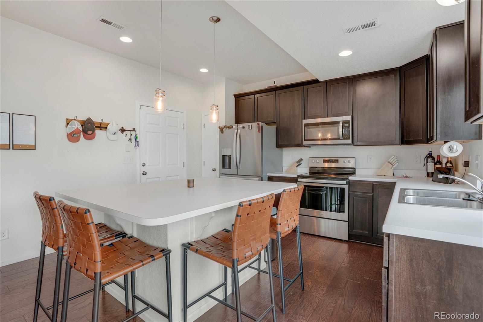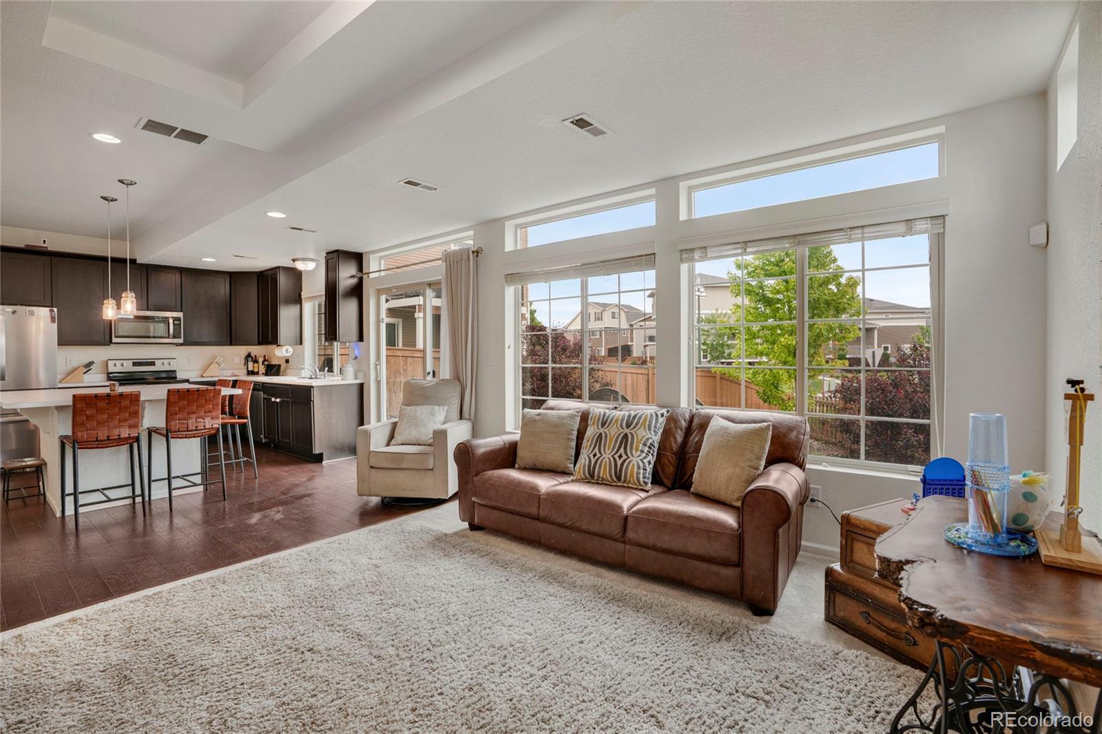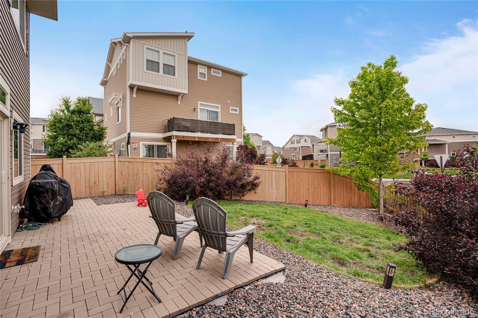 Welcome to Reunion, an incredible community with 10 parks, 8 acres of lakes and waterfalls, a fantastic rec center with two pools, and a welcoming coffee house. Just steps away from all the activity, this modern home built in 2018 features almost 2,000 square feet with 3 bedrooms, 3 bathrooms, and a spacious loft. The cheerful front door welcomes you into the home with its open concept living area. The kitchen boasts an expansive island, 42-inch cabinets, and stainless steel appliances. Upstairs, the primary suite features its own private bathroom with large standing shower. Two secondary bedrooms share an additional full bathroom on the second floor. A third level is filled with light and has space for work, play, or additional living quarters. Outside, enjoy your own space in the backyard complete with paver patio. Ready for more? Don’t miss the community social events, STEAD educational activities for the kids, and nearby Buffalo Run Golf Course, shopping, and quick access to Denver International Airport.