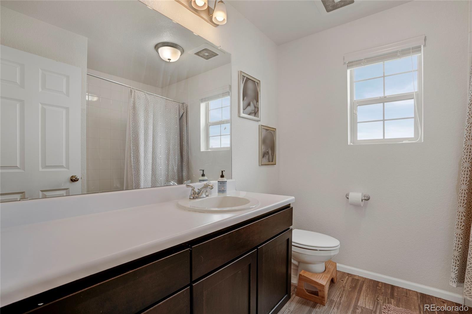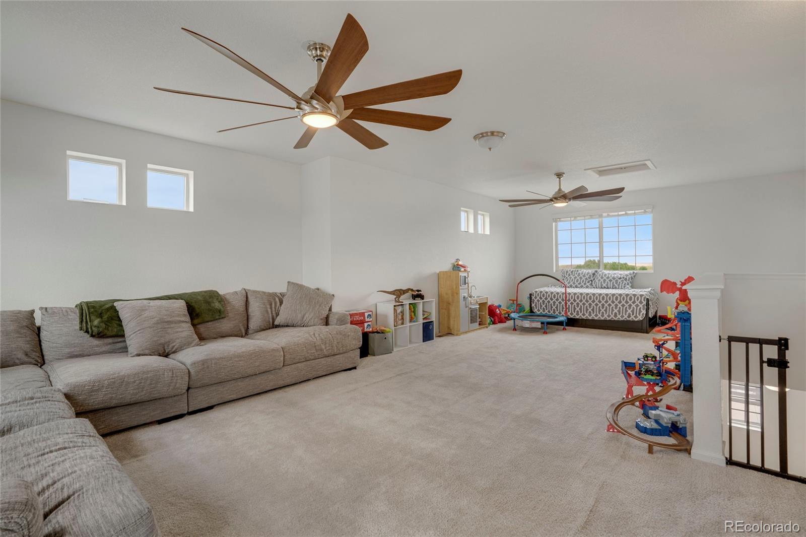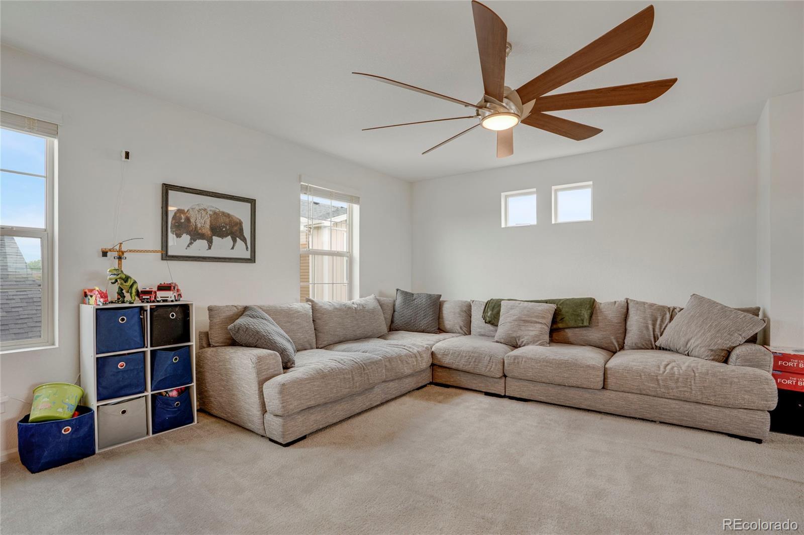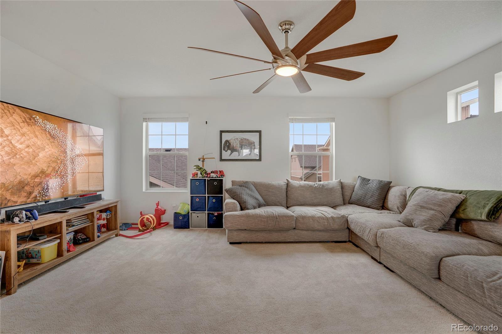 Welcome to Reunion, an incredible community with 10 parks, 8 acres of lakes and waterfalls, a fantastic rec center with two pools, and a welcoming coffee house. Just steps away from all the activity, this modern home built in 2018 features almost 2,000 square feet with 3 bedrooms, 3 bathrooms, and a spacious loft. The cheerful front door welcomes you into the home with its open concept living area. The kitchen boasts an expansive island, 42-inch cabinets, and stainless steel appliances. Upstairs, the primary suite features its own private bathroom with large standing shower. Two secondary bedrooms share an additional full bathroom on the second floor. A third level is filled with light and has space for work, play, or additional living quarters. Outside, enjoy your own space in the backyard complete with paver patio. Ready for more? Don’t miss the community social events, STEAD educational activities for the kids, and nearby Buffalo Run Golf Course, shopping, and quick access to Denver International Airport.