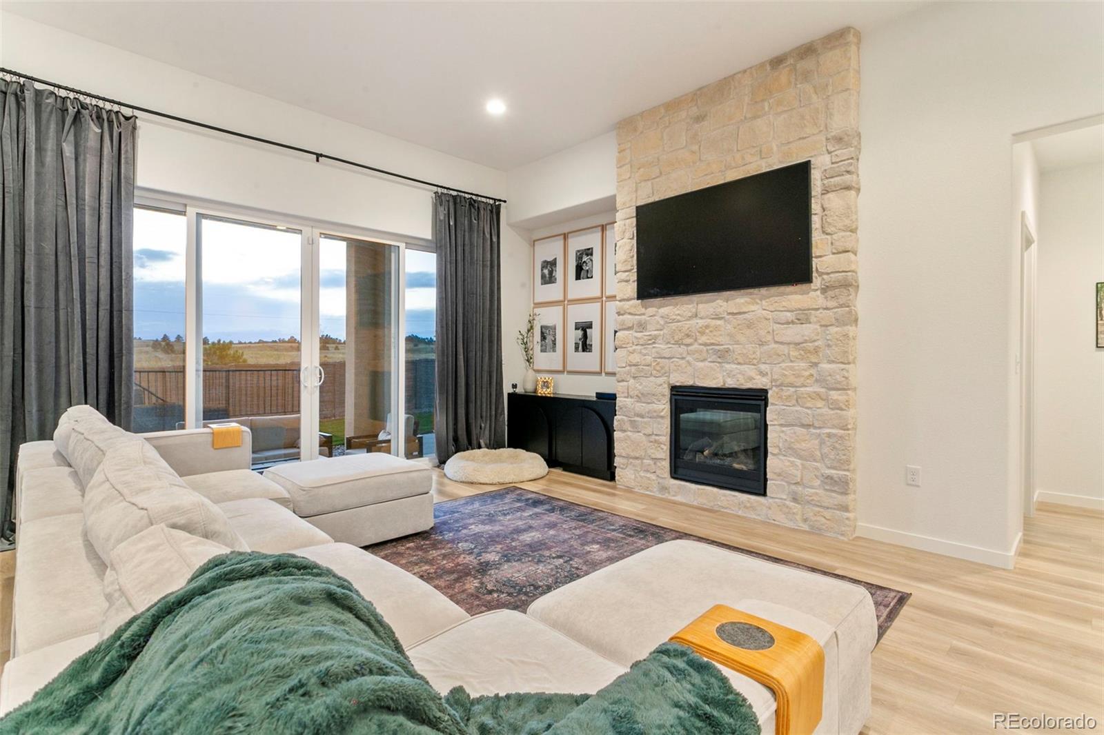 Absolutely stunning and like-new, this 4-bedroom, 3-bathroom, 4-car garage home is now available in North Colorado Springs. From the moment you arrive, you’ll be captivated by its incredible curb appeal, featuring a fully landscaped, level lot and a striking black and white stucco exterior. A spacious front courtyard leads to a sleek, modern front door, setting the tone for the stylish interior that awaits. Inside, you're welcomed by an expansive open floor plan with LVP flooring throughout. The living room features a floor-to-ceiling stone fireplace, creating a dramatic and eye-catching focal point. From there, the space flows seamlessly into the gourmet kitchen, complete with beautiful matching marble countertops and backsplash, stainless steel appliances—including double ovens and an industrial-style vent hood—and an oversized island with seating for six. Modern brown cabinetry paired with elegant custom gold hardware adds the perfect finishing touch. A spacious dining area sits just off the kitchen, ideal for daily meals or entertaining. Natural light pours into the main level through oversized windows and large double sliding glass doors, leading to a covered patio and a beautifully maintained, fully fenced backyard. Also on the main level is a stylish office with custom wainscoting. As well as a secondary bedroom and full bathroom, and a luxurious primary suite. The primary retreat features a spa-like 5-piece en suite bathroom with unique modern tile, bold black fixtures, a standalone shower, a stunning soaking tub, and a large walk-in closet. The finished basement expands your living space with two additional bedrooms, a full bathroom, and a massive entertainment area offering endless possibilities—from a media room to a home gym or game room. Built in 2025 with numerous upgrades and refined modern finishes, this home offers warmth, style, and functionality at every turn. It’s move-in ready and sure to impress—schedule your showing today before it's gone!