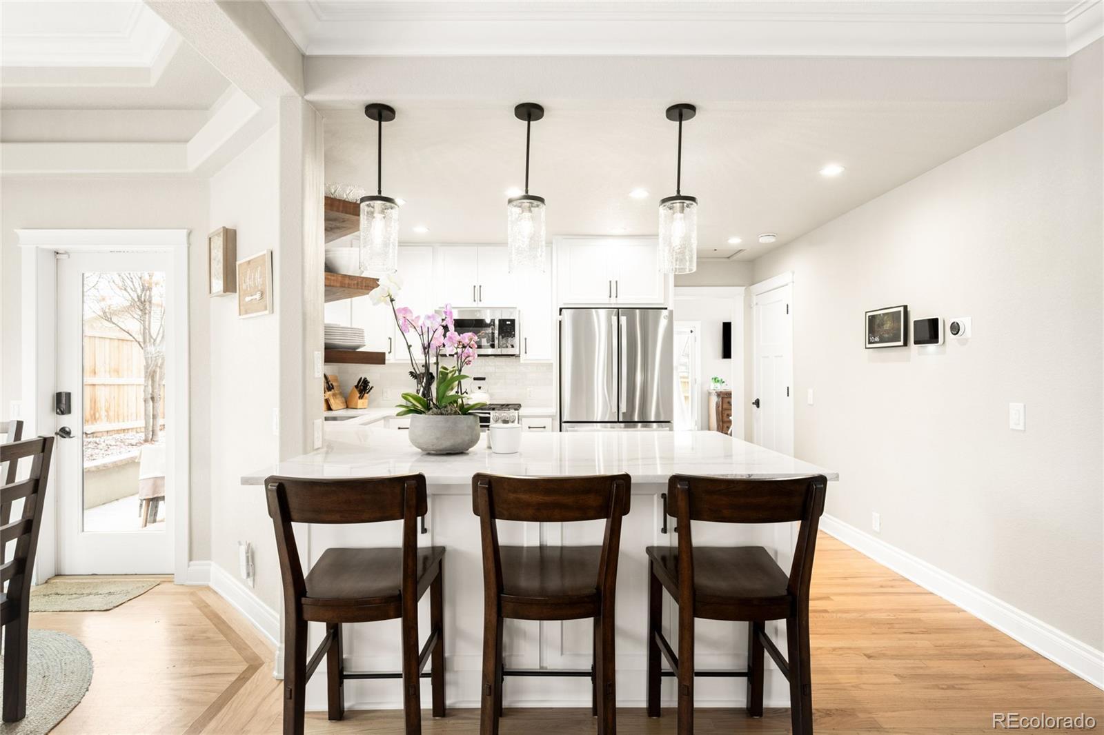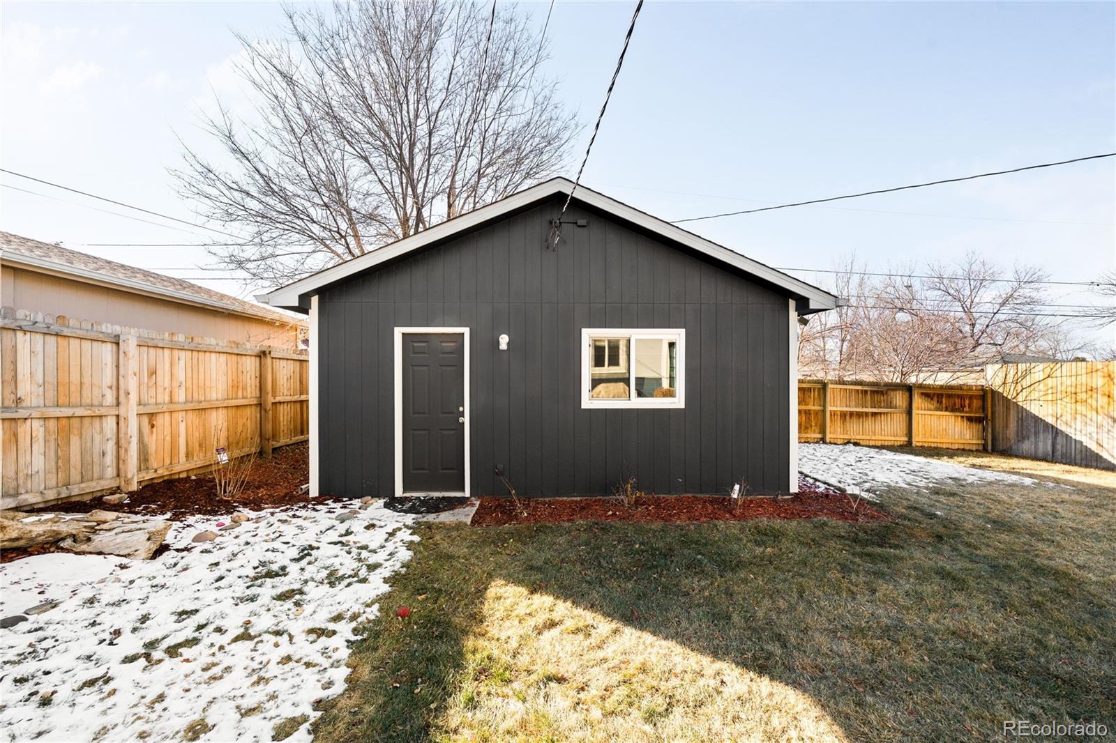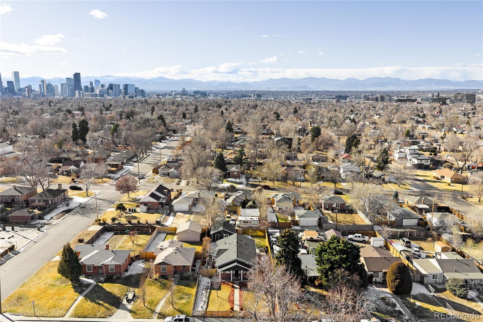 Timeless bungalow charm meets modern luxury in this beautifully updated Skyland residence. Built in 2014 and thoughtfully enhanced with high-end finishes throughout, this home delivers style, comfort and effortless livability. Sunlight pours through oversized windows, illuminating warm tones and rich hardwood floors that flow seamlessly from room to room. The open living and dining areas feel welcoming and refined, ideal for both everyday living and entertaining. At the heart of the home, the stylish kitchen impresses with crisp all-white cabinetry, stainless steel appliances and a functional peninsula that anchors the space. The serene primary suite is a true retreat, featuring a spa-inspired en-suite bath and elegant French doors that open directly to the fully fenced backyard. Additional bedrooms are well-proportioned and versatile for guests, work or hobbies. A detached two-car garage adds convenience, while a prime location offers easy access to parks, dining and downtown Denver.