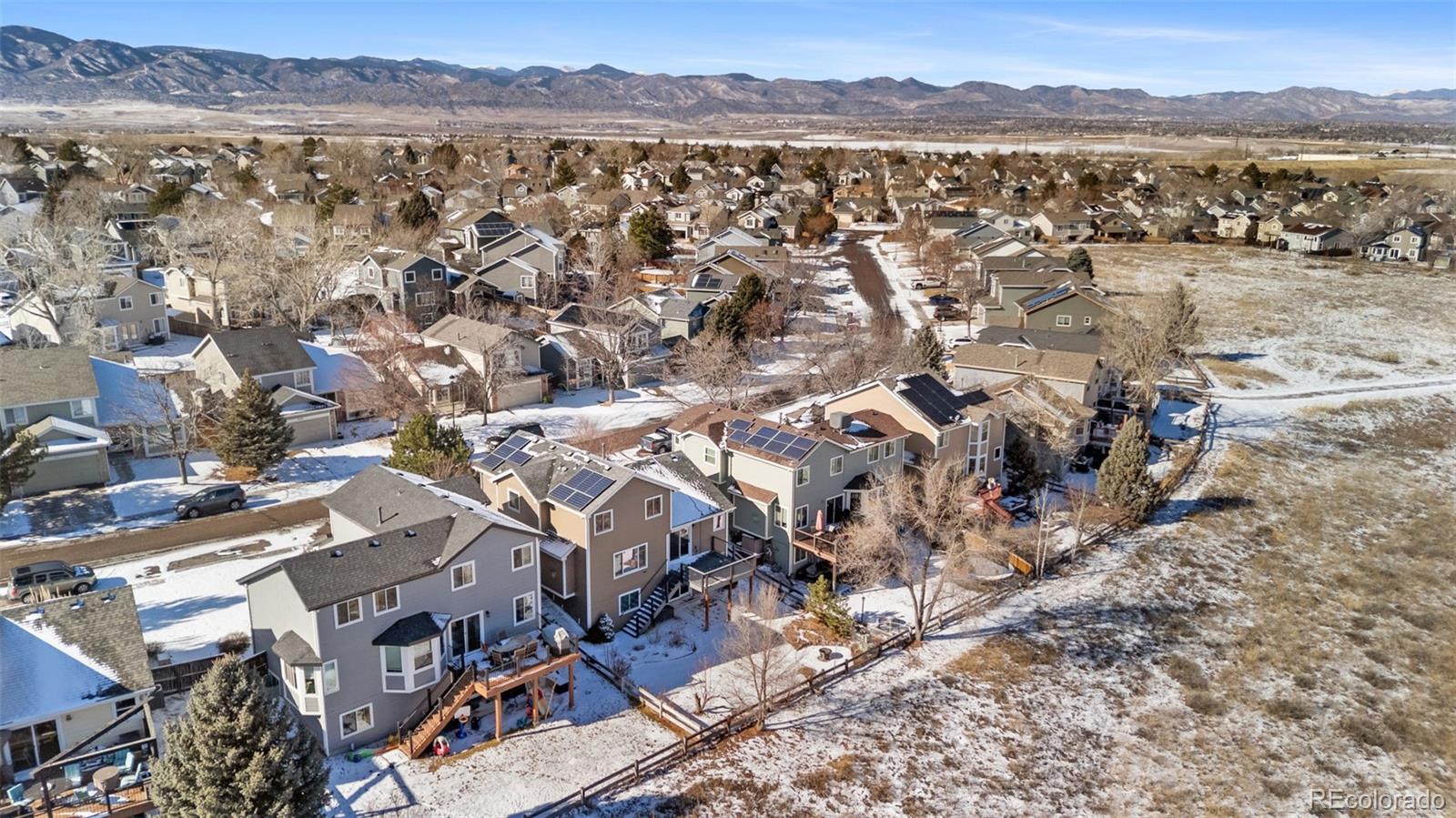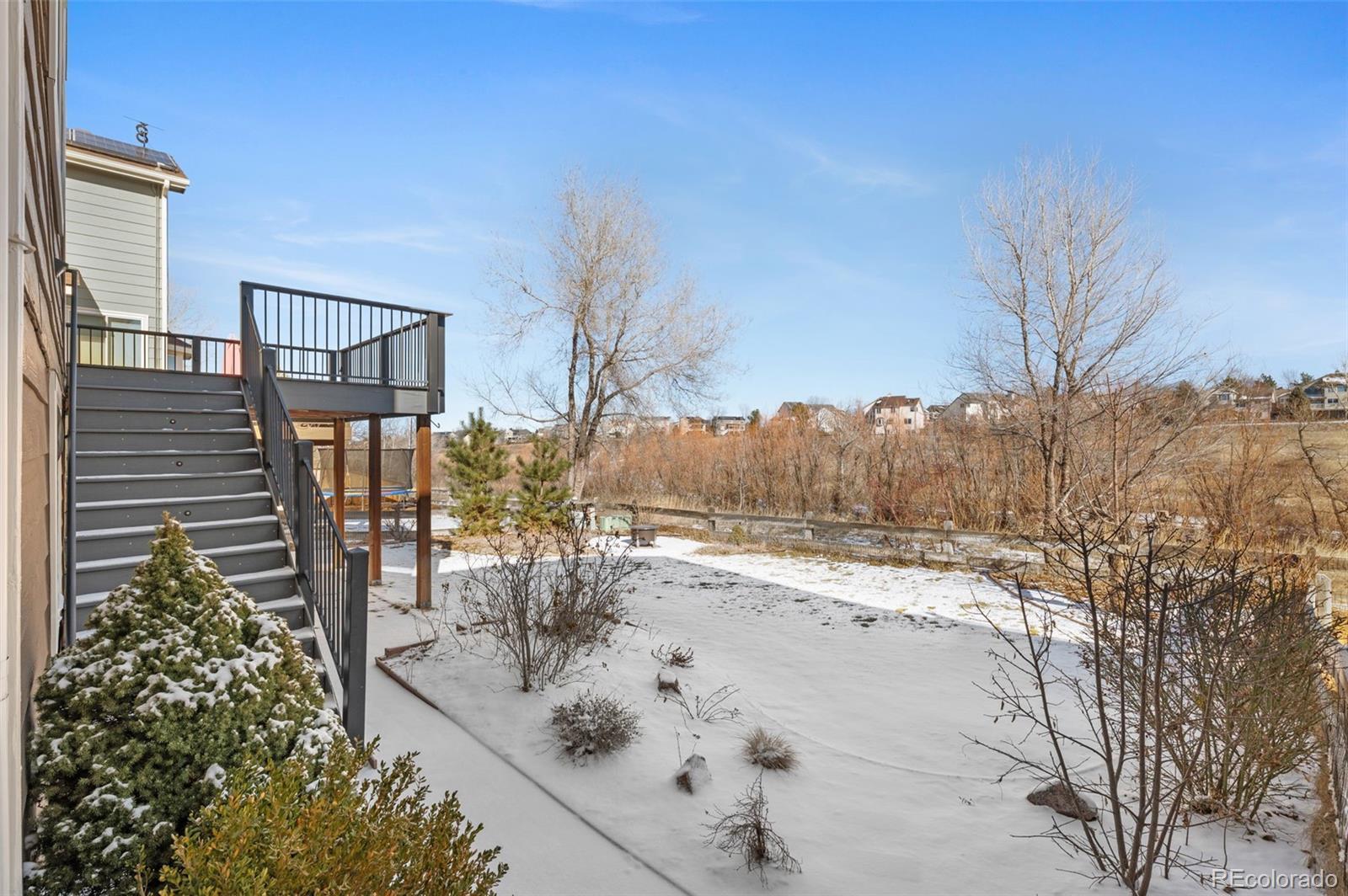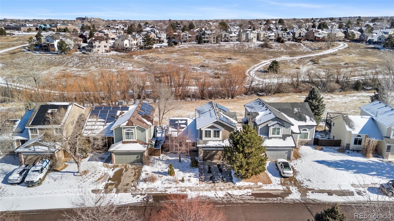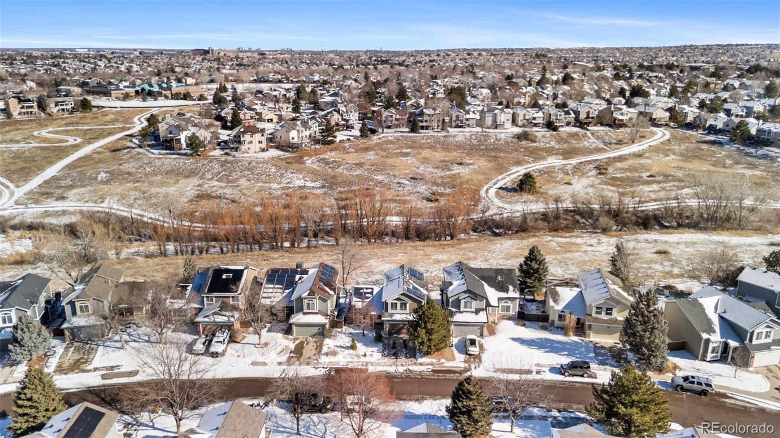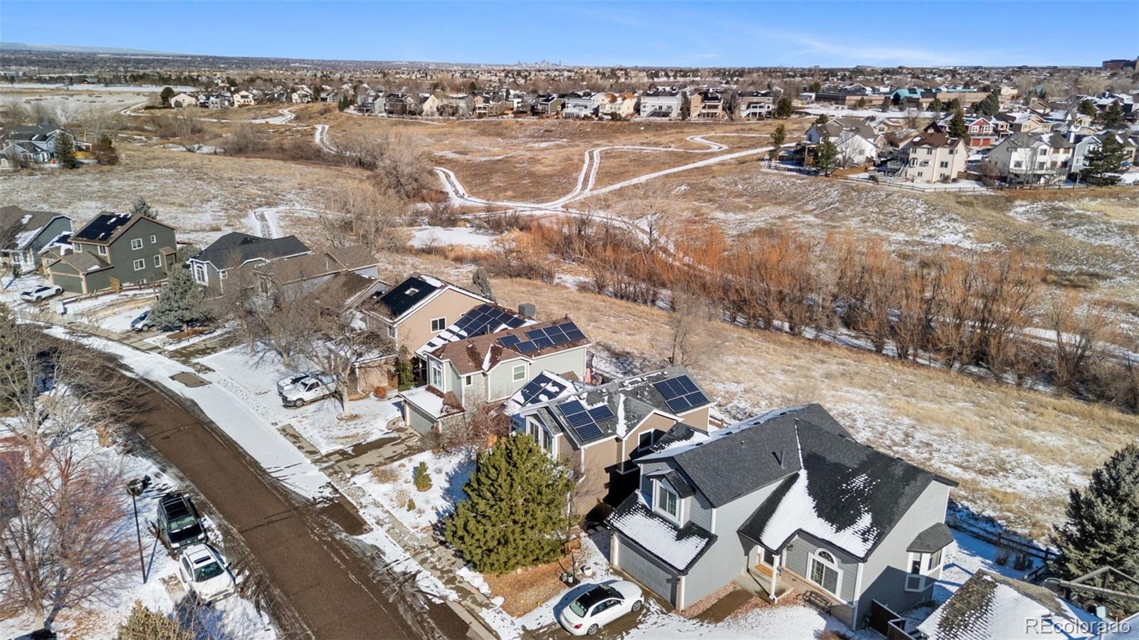 Beautifully maintained 3-bedroom, 3-bathroom home in the heart of Highlands Ranch, backing to open space with direct access to scenic walking trails just steps from the backyard. Thoughtfully cared for throughout, the home offers a bright, open layout ideal for both everyday living and entertaining. Enjoy the added value of paid-off Tesla solar panels, delivering energy efficiency and long-term savings, along with a walk-out basement that enhances flexibility and indoor-outdoor living. A dedicated home office provides versatile space and can easily be converted into a fourth bedroom, guest suite, or flex area to suit your needs. Ideally located near everything Highlands Ranch has to offer, the home is within 1.5 miles of four parks, 1.2 miles of three schools, and just 2.4 miles from premier amenities, including a golf club, recreation center, hospital, and grocery store. Surrounded by natural beauty and miles of trails, this property blends privacy, convenience, and exceptional Colorado living.