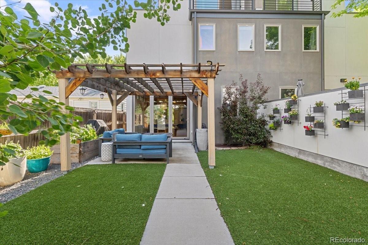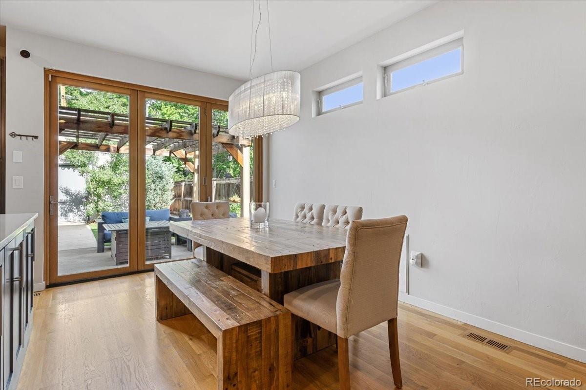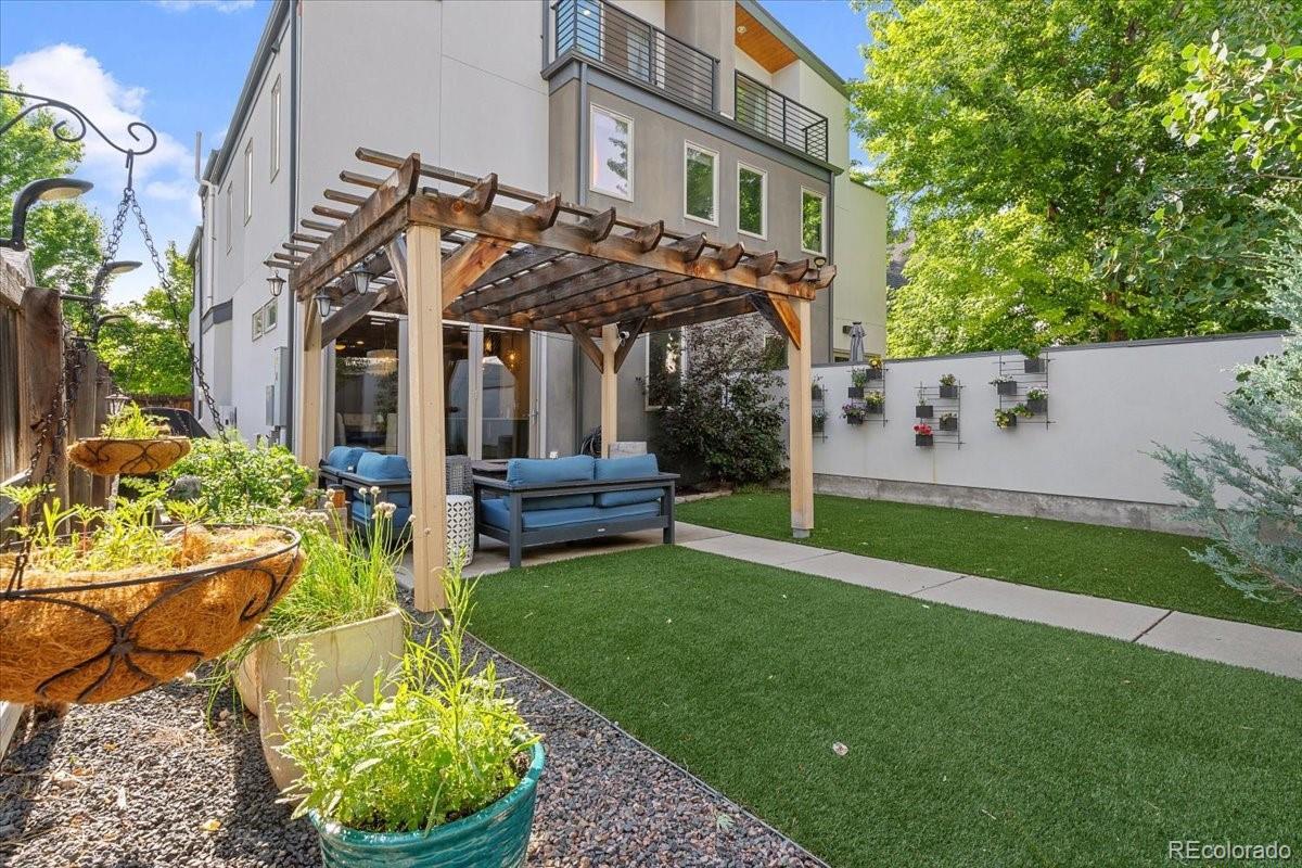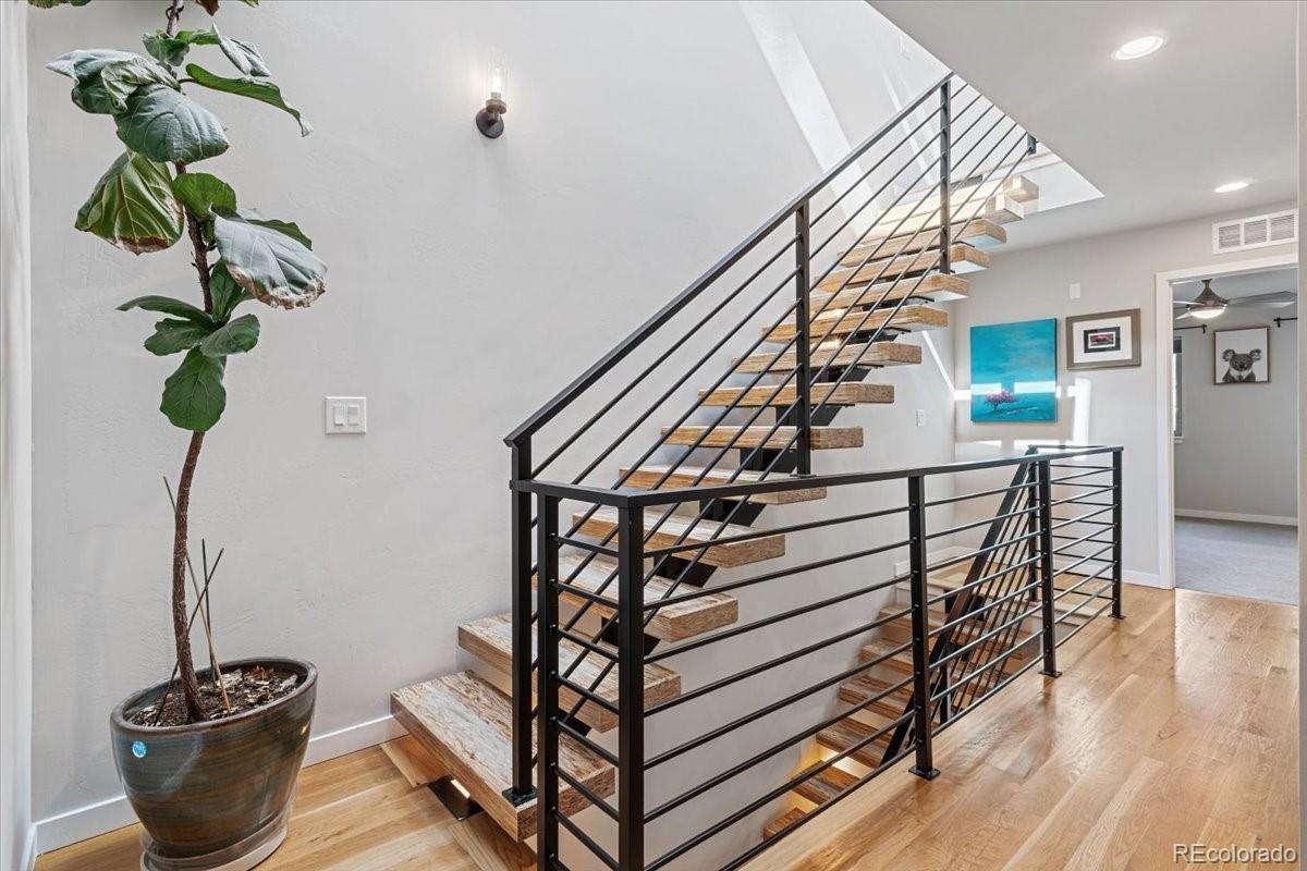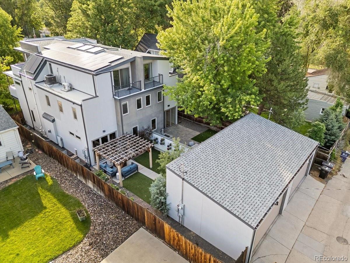 2420 S Gilpin is a stunning contemporary home with wonderful finishes and a smart floorplan in a fantastic neighborhood. Great natural light streams throughout thanks to southern exposure and a fantastic window package. La Cantina accordion doors seamlessly connect the indoor living spaces with the outdoor living space. Plus, there are three expansive skylights above a three-level open staircase that literally allows you to see stars & the moon at-times from inside the house. Whether you’re cooking for one person, or making a feast for 63 friends, this kitchen and the main living spaces are a dream. The kitchen is grand & open concept. It has beautiful quartz countertops and a great cabinet package. Want to be more environmentally friendly? Well, then THIS is the home for you. It has a big OWNED 8.4 kWh PV solar system, a 13.5 kWh Powerwall battery and a 240V Level 2 car charger (with both J1772 and NACS connectors) already installed in the garage. Also, the builder noted a Five-Star+ energy efficiency rating. Finishes here are way above what’s often found in this price range including, but not limited to: gorgeous wood floors, mesmerizing stair treads, nine-foot ceilings, eight-foot doors, five sweet bathrooms, incredible built-in storage in the basement and thoughtful finishes throughout. Plus, three balconies! Livability is at 100! with five bedrooms (three of which are together on the second floor) + an office/study just inside the front door + five bathrooms + three balconies + a wet bar on the top floor makes this “The One”. This home is skipping or rolling distance from 30+ restaurants on Evans, S. Downing and others in Platte Park.