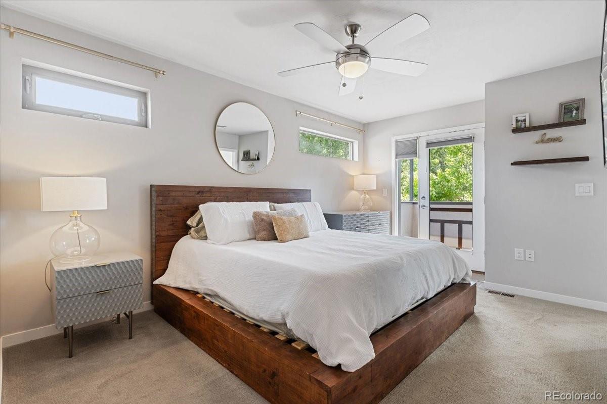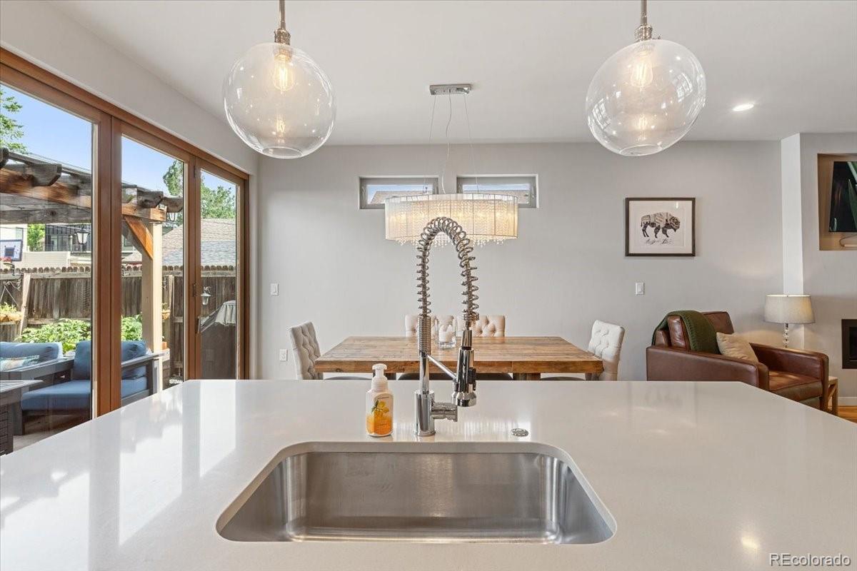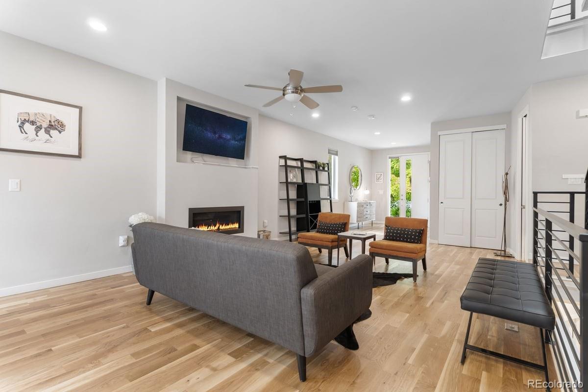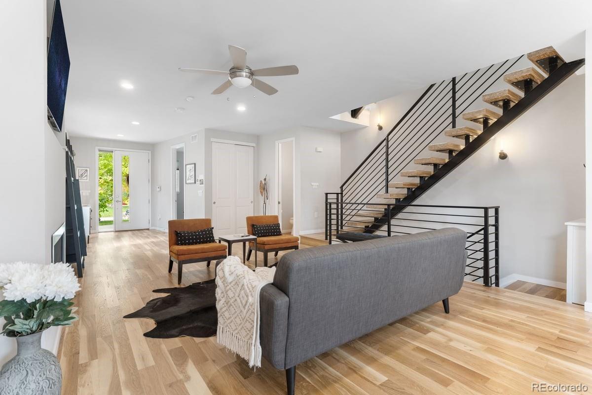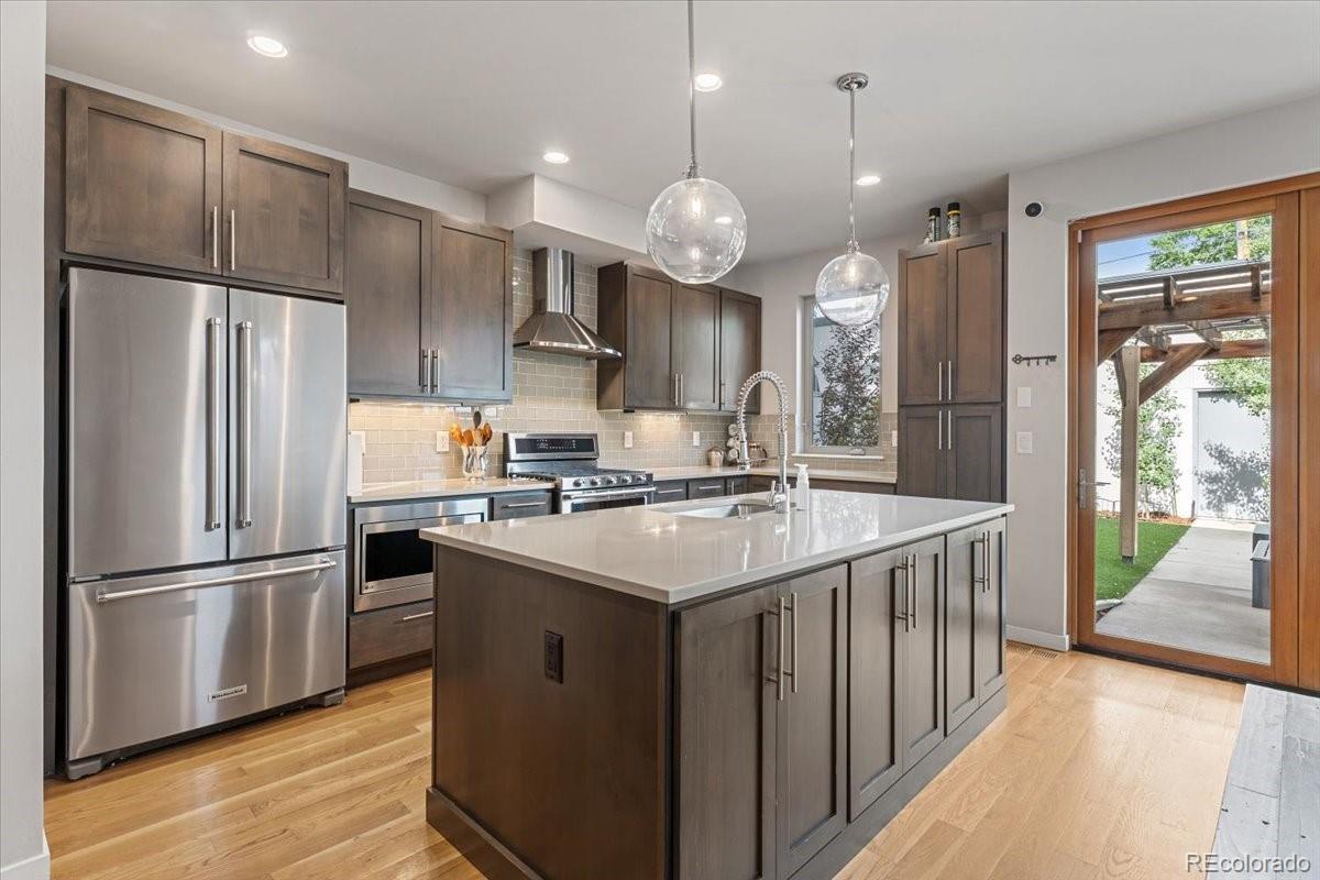 2420 S Gilpin is a stunning contemporary home with wonderful finishes and a smart floorplan in a fantastic neighborhood. Great natural light streams throughout thanks to southern exposure and a fantastic window package. La Cantina accordion doors seamlessly connect the indoor living spaces with the outdoor living space. Plus, there are three expansive skylights above a three-level open staircase that literally allows you to see stars & the moon at-times from inside the house. Whether you’re cooking for one person, or making a feast for 63 friends, this kitchen and the main living spaces are a dream. The kitchen is grand & open concept. It has beautiful quartz countertops and a great cabinet package. Want to be more environmentally friendly? Well, then THIS is the home for you. It has a big OWNED 8.4 kWh PV solar system, a 13.5 kWh Powerwall battery and a 240V Level 2 car charger (with both J1772 and NACS connectors) already installed in the garage. Also, the builder noted a Five-Star+ energy efficiency rating. Finishes here are way above what’s often found in this price range including, but not limited to: gorgeous wood floors, mesmerizing stair treads, nine-foot ceilings, eight-foot doors, five sweet bathrooms, incredible built-in storage in the basement and thoughtful finishes throughout. Plus, three balconies! Livability is at 100! with five bedrooms (three of which are together on the second floor) + an office/study just inside the front door + five bathrooms + three balconies + a wet bar on the top floor makes this “The One”. This home is skipping or rolling distance from 30+ restaurants on Evans, S. Downing and others in Platte Park.