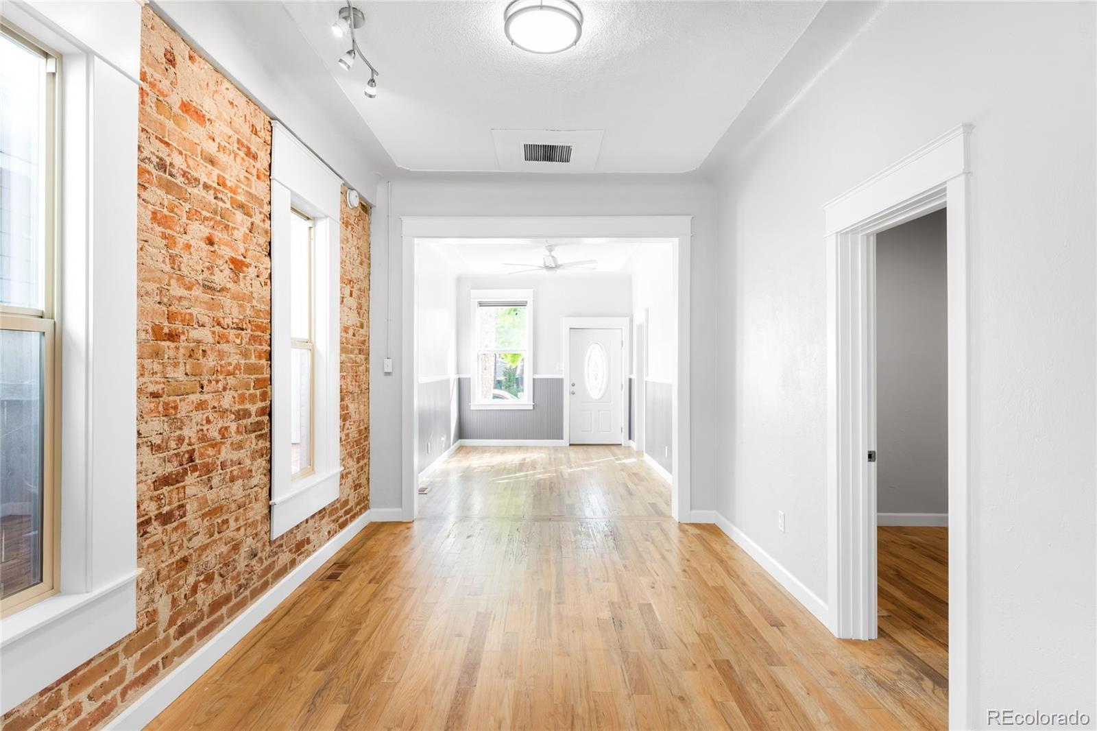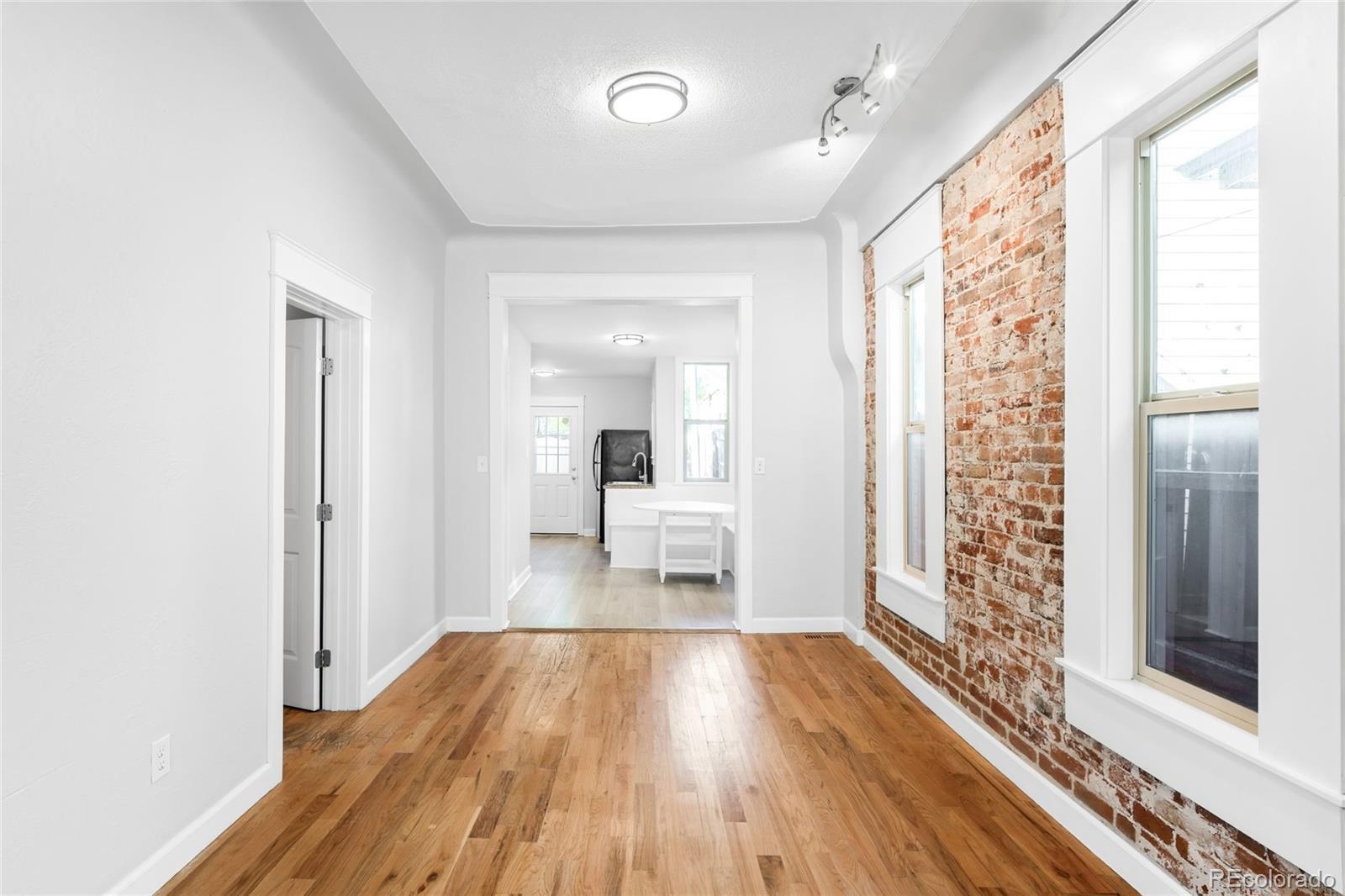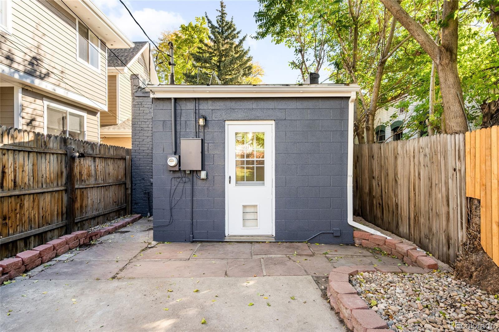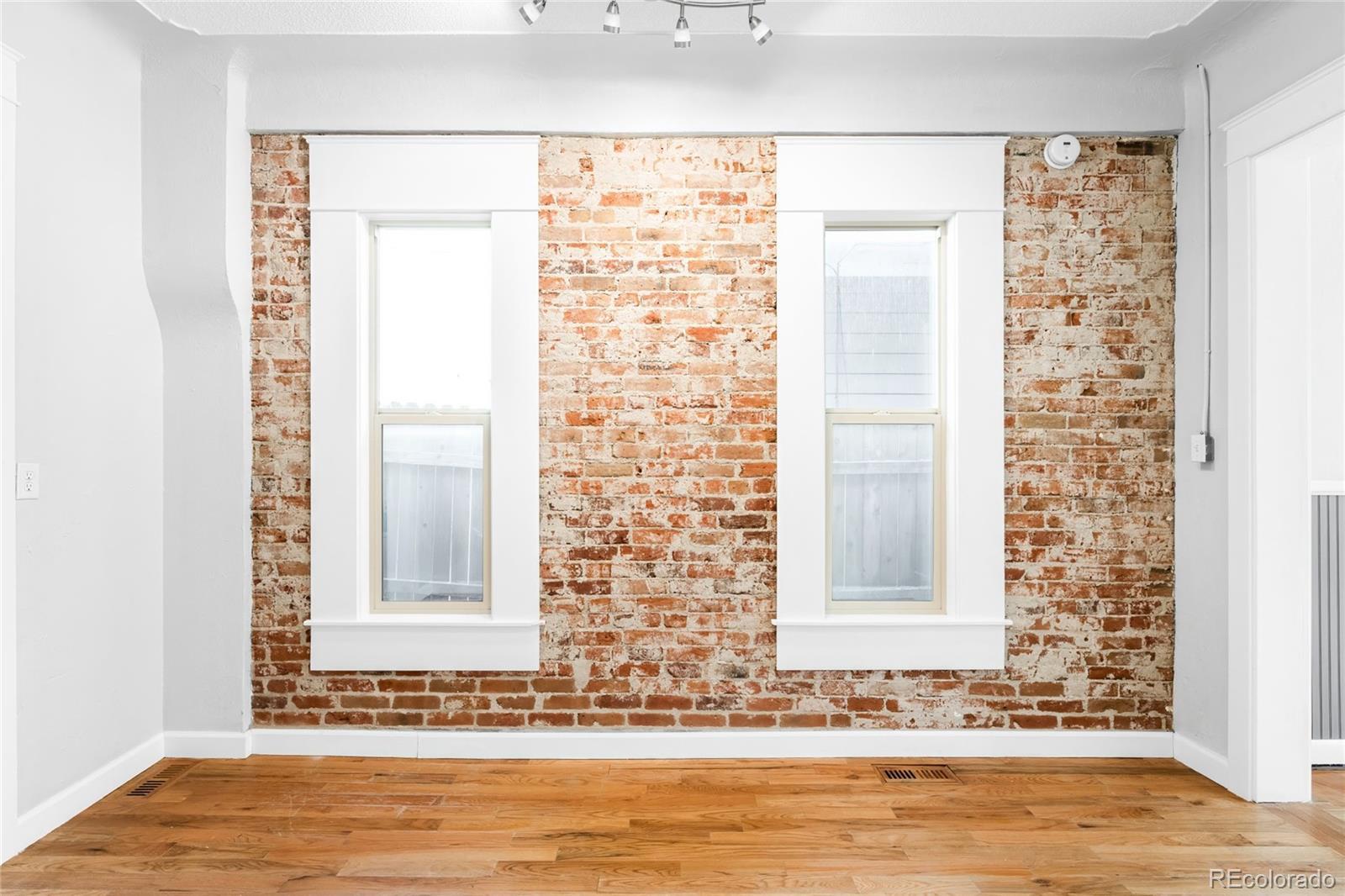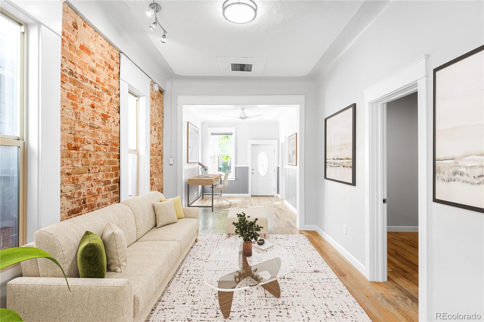 Historic details and modern elegance commingle throughout this beautifully refreshed Highland row home. Behind its timeless façade, an inviting interior unfolds with high ceilings, beautiful hardwood flooring, and exposed brick walls that nod to the home’s architectural heritage. The open layout flows effortlessly from a bright living and dining area to an updated kitchen featuring stainless steel appliances, crisp white cabinetry, and a cozy breakfast nook. Two bedrooms share a thoughtfully designed bath with a beautifully tiled walk-in shower, adding a touch of modern sophistication. A laundry area with a washer and dryer set is an added convenience. Outside, an elongated, fully fenced backyard with a quaint patio offers a private retreat for relaxation or entertaining. With its blend of vintage character, updated comfort, and an unbeatable Highland location near Denver’s top restaurants and shops, this residence offers a rare opportunity to experience the best of urban living. **Recent updates include a freshly painted interior, a freshly tuckpointed and painted exterior, new interior and exterior lighting, a new bathroom ceiling fan, and refreshed landscaping with decorative retaining blocks, pavers, and mulch. Additionally, a new roof and swamp cooler will be installed soon, and the hardwood floors will be refinished, completing this thoughtful refresh.**