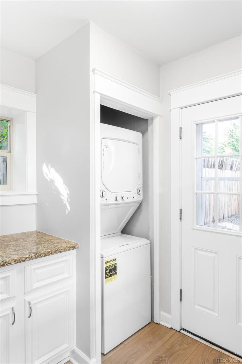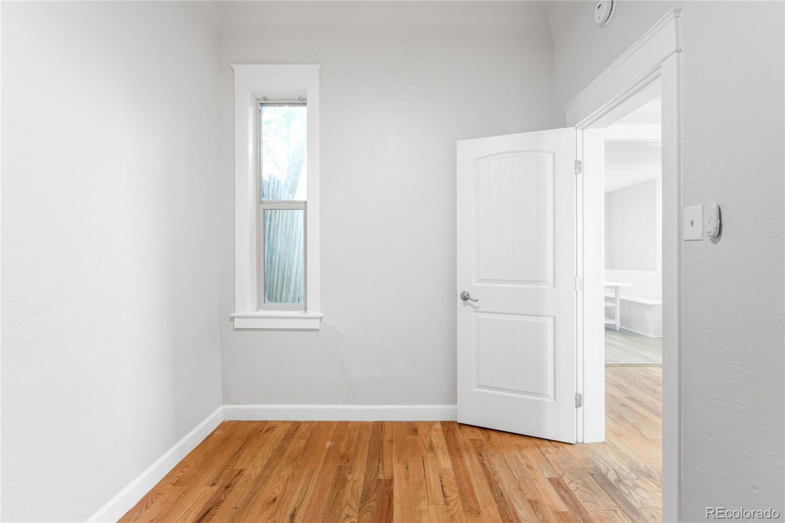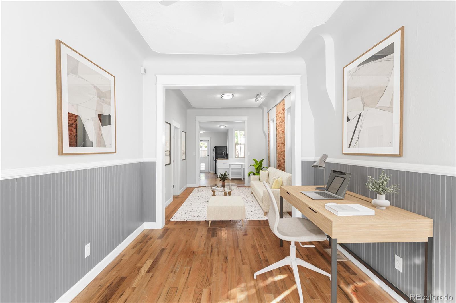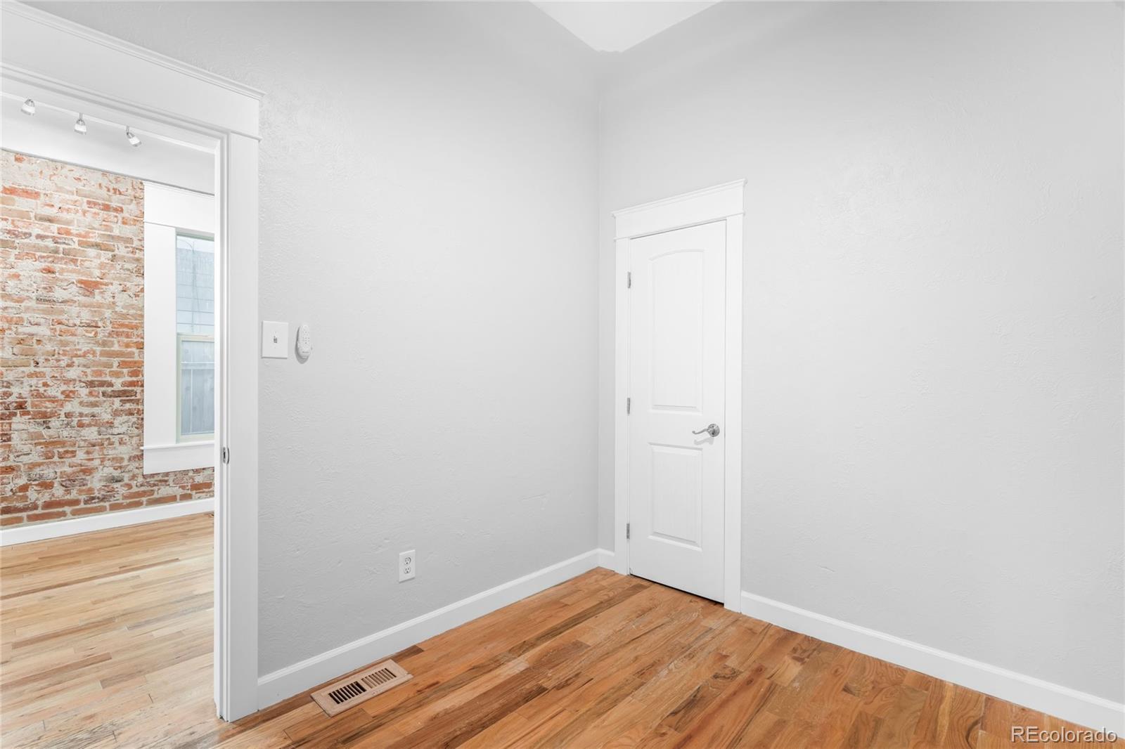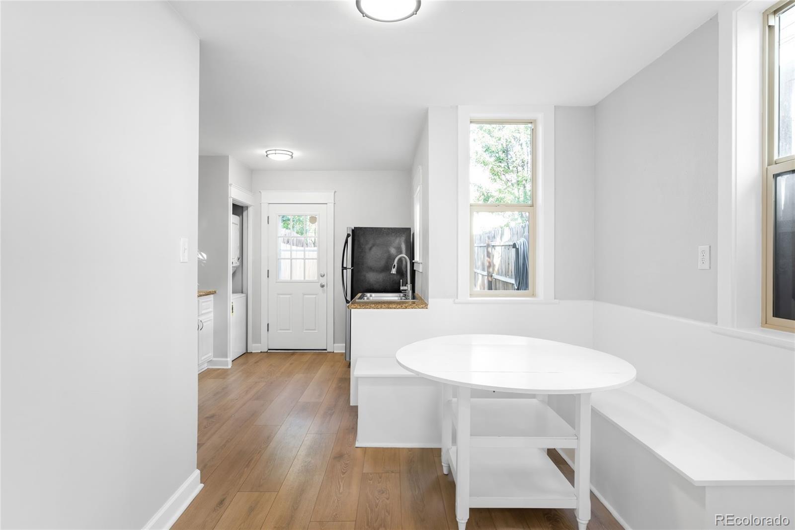 Historic details and modern elegance commingle throughout this beautifully refreshed Highland row home. Behind its timeless façade, an inviting interior unfolds with high ceilings, beautiful hardwood flooring, and exposed brick walls that nod to the home’s architectural heritage. The open layout flows effortlessly from a bright living and dining area to an updated kitchen featuring stainless steel appliances, crisp white cabinetry, and a cozy breakfast nook. Two bedrooms share a thoughtfully designed bath with a beautifully tiled walk-in shower, adding a touch of modern sophistication. A laundry area with a washer and dryer set is an added convenience. Outside, an elongated, fully fenced backyard with a quaint patio offers a private retreat for relaxation or entertaining. With its blend of vintage character, updated comfort, and an unbeatable Highland location near Denver’s top restaurants and shops, this residence offers a rare opportunity to experience the best of urban living. **Recent updates include a freshly painted interior, a freshly tuckpointed and painted exterior, new interior and exterior lighting, a new bathroom ceiling fan, and refreshed landscaping with decorative retaining blocks, pavers, and mulch. Additionally, a new roof and swamp cooler will be installed soon, and the hardwood floors will be refinished, completing this thoughtful refresh.**