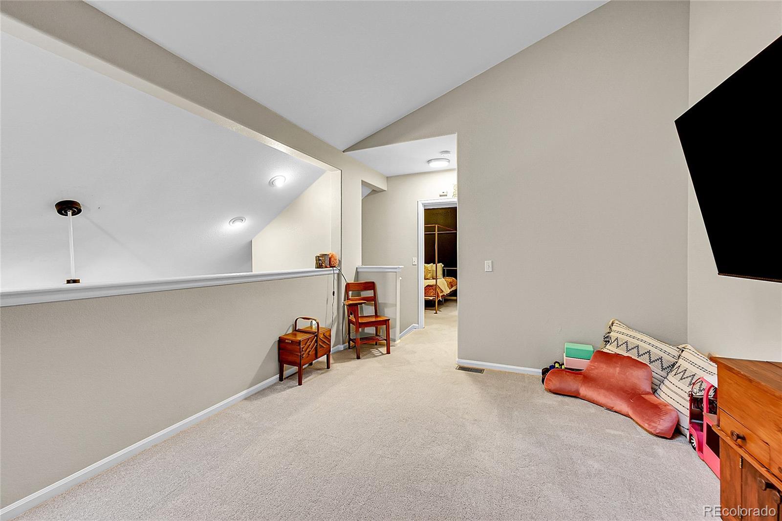 Great location! Less than 5 miles to Lockheed Martin, 5.5 miles to Ravenna Country Club, 1.7 miles to Chatfield State Park, 3.1 Miles to the Platte River Trail, 8 miles to Roxborough Park, and only 10 miles to Morrison/Red Rocks!! Deck has been replaced by HOA as of 9/26/25 and looks great! With such a great proximity so so many locations come make this beautifully maintained upper level condo in Marina Pointe your home. This two level second story condo provides a fantastic open floor plan with vaulted ceilings as you enter. The main level has 2 convenient bedrooms, an open living room with gas fireplace, full bathroom, kitchen and eating area! You'll also love the functionality of the laundry closet on the main level as well. Then make your way upstairs with a spacious loft and primary bedroom with a remodeled primary bathroom. Finally your front deck allows you to enjoy those Colorado sunsets and privacy with your own outdoor space. Come check out this great opportunity! Assumable 5.25% VA loan available!!