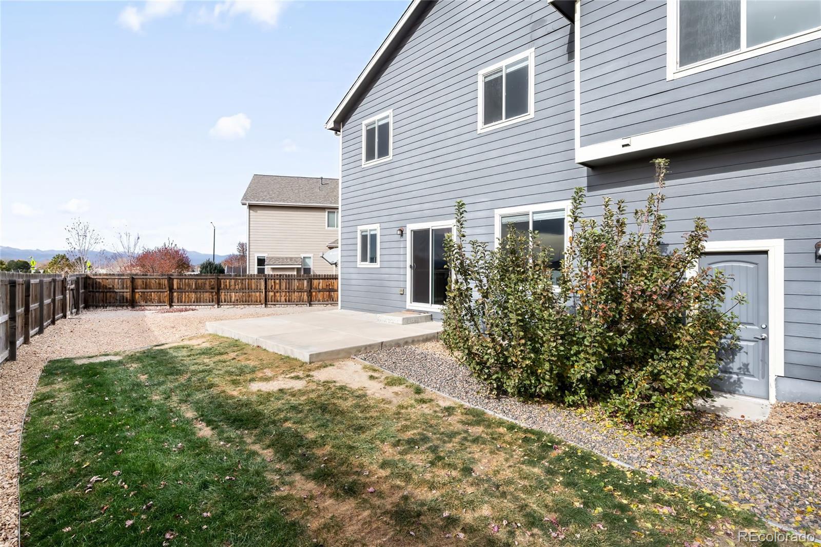 Commanding serene mountain views on a peaceful cul-de-sac setting, this Carriage Hills home melds modern comfort with timeless appeal. A covered front porch welcomes residents into a luminous two-story entry that introduces a spacious, open layout flowing with hardwood and tile flooring and new carpeting. The formal dining room sets the stage for gatherings, while the living area, anchored by a tiled gas fireplace, offers cozy refinement. The sleek kitchen features stainless steel appliances, a center island with breakfast bar and sliding glass doors that open to a fully fenced backyard overlooking lush green space with unobstructed mountain views. Upstairs, the primary suite impresses with vaulted ceilings, a large walk-in closet and a tranquil five-piece bath. Three additional upper-level bedrooms provide flexibility for guests or a home office, while an unfinished basement offers endless possibilities for personalization. A rare four-car garage with electric heater, solar panels, a newer roof and two exterior storage sheds complete this exceptional Frederick home.
