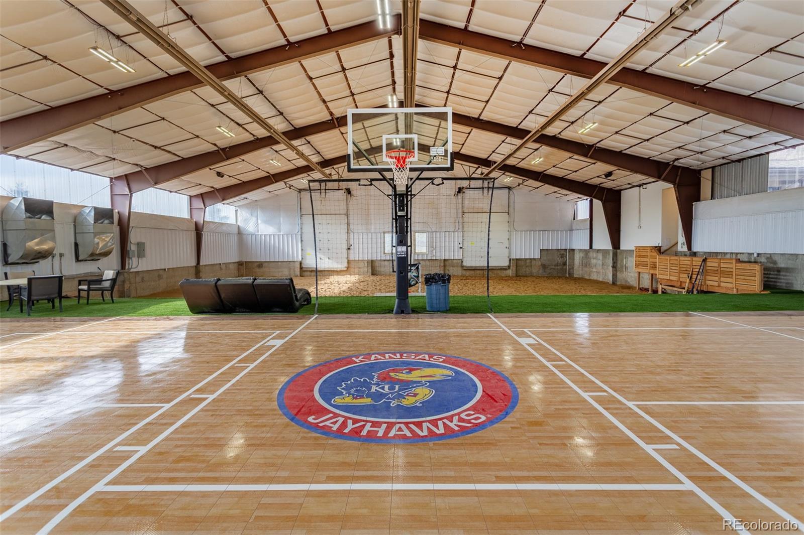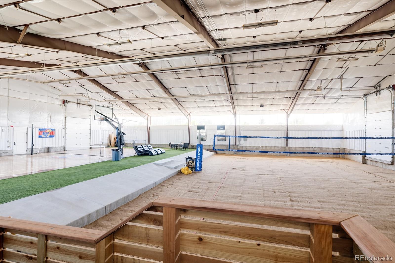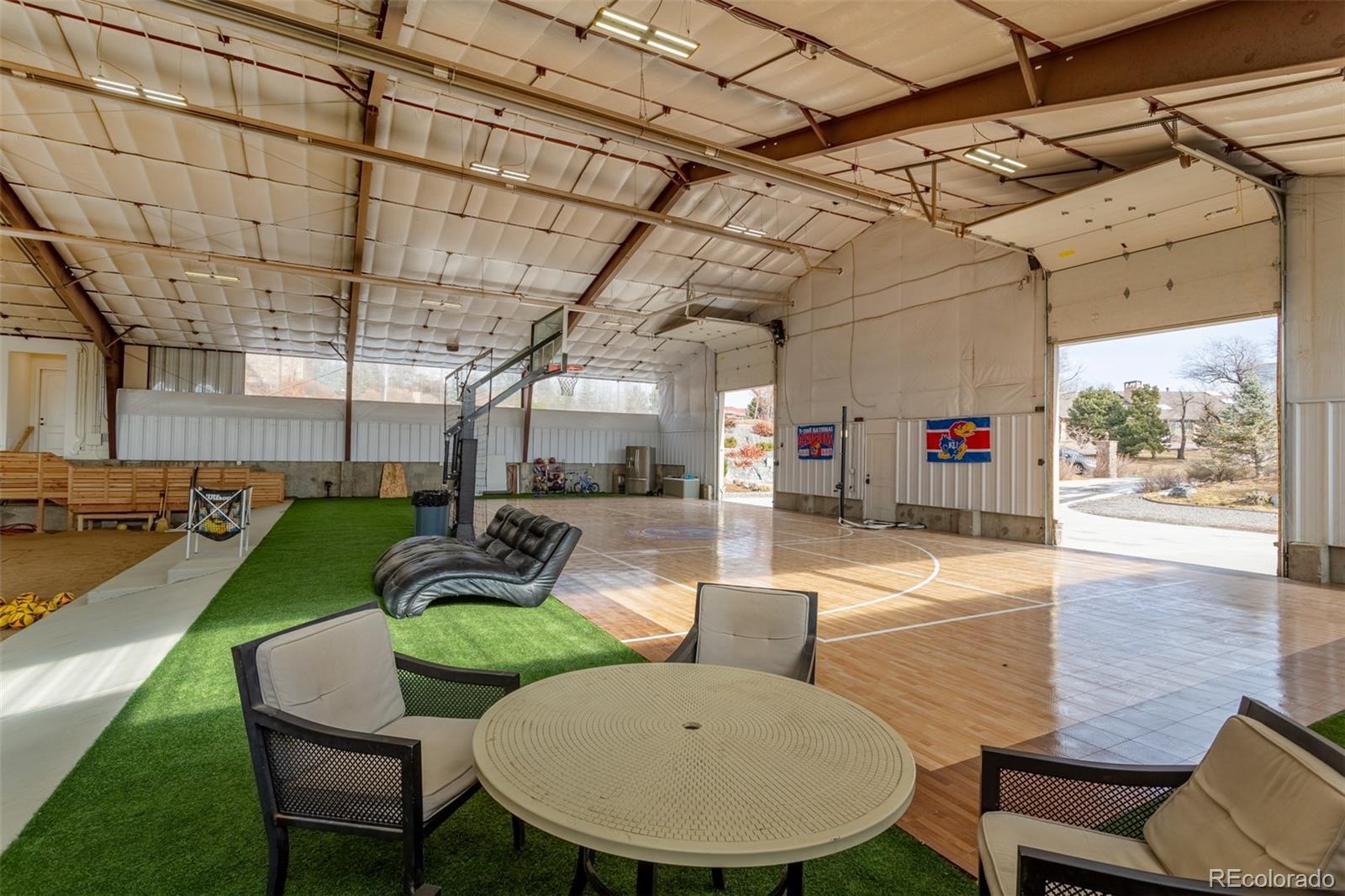 Discover a home like no other in Cherry Hills Village, where nearly 14,000 square feet of extraordinary space redefines what it means to live, play, and entertain. Nestled on almost 2 acres of professionally landscaped grounds, this custom-built estate combines luxury living with unmatched versatility, featuring a 6,856-square-foot residence and a remarkable 7,020-square-foot heated and cooled indoor arena. The arena, a unique feature in the Denver metro area, is designed for year-round enjoyment. It includes a full-sized sand volleyball court, a half-court basketball court, and a regulation pickleball court. Whether you’re an athlete, car collector, or visionary seeking a creative multipurpose space, this professionally designed arena offers endless opportunities for recreation, hobbies, or hosting unforgettable events. But this home isn’t all about play. Inside, you’ll find 3,556 square feet of beautifully designed main-level living, including newly installed flooring, a grand great room with a fireplace, and a glass-walled sunroom showcasing breathtaking mountain views. The gourmet kitchen is outfitted with high-end appliances and a butler’s pantry, while the primary suite features a fireplace, balcony access, and an adjoining office or additional bedroom. The lower-level walkout spans 3,300 square feet and includes a cozy family room with a fireplace, a wet bar with a full kitchen, a game room, two additional bedrooms, and wellness amenities like an indoor lap pool with exercise treadmill, and gym. Step outside to a serene patio with a fireplace and fountain, perfect for enjoying Colorado’s outdoor beauty. Additional highlights include a heated driveway, oversized four-car garage, and state-of-the-art climate control throughout and an option to add an elevator. This home is a masterpiece of design, functionality, and possibility, located in one of Colorado’s most sought-after neighborhoods.