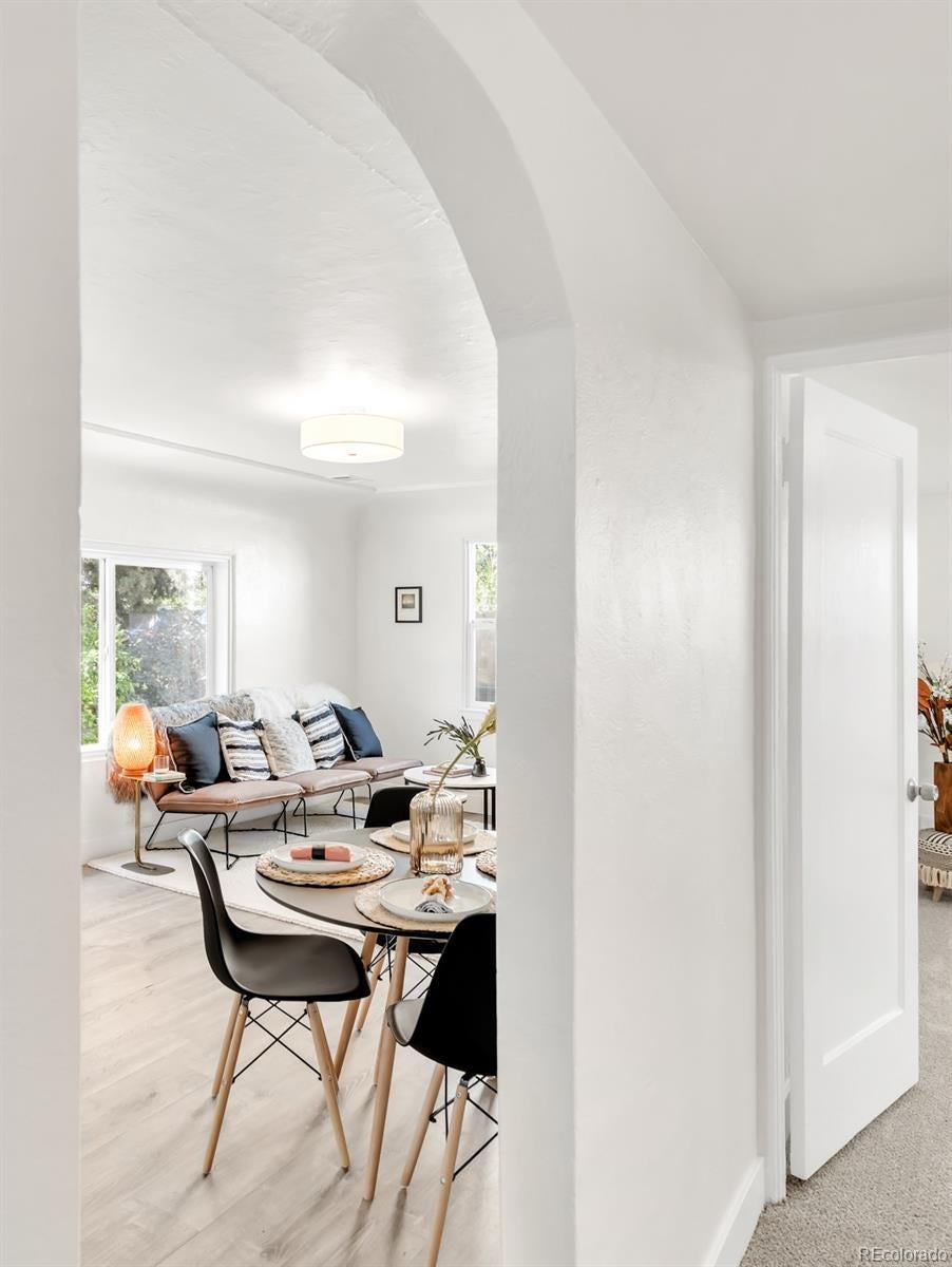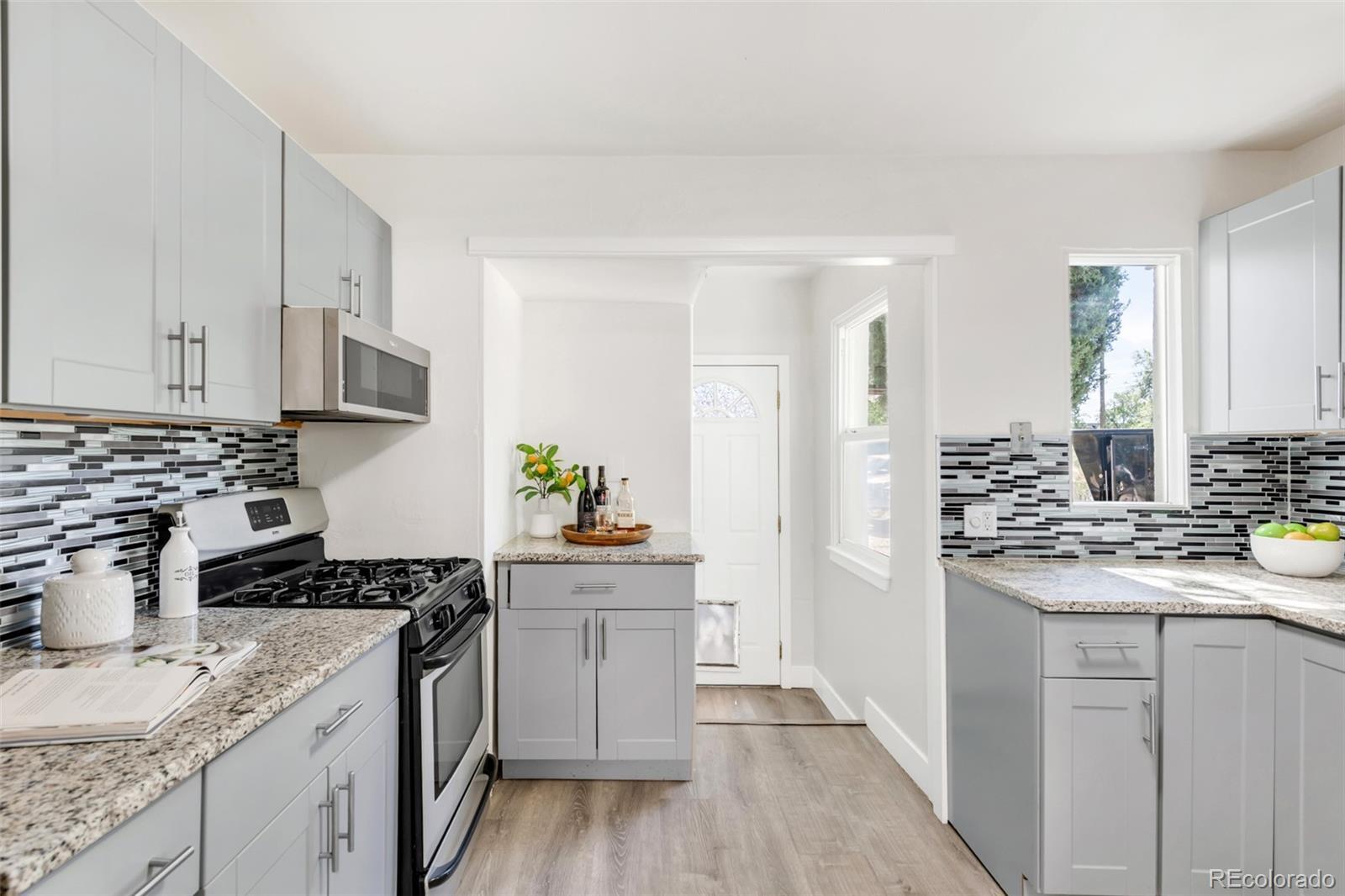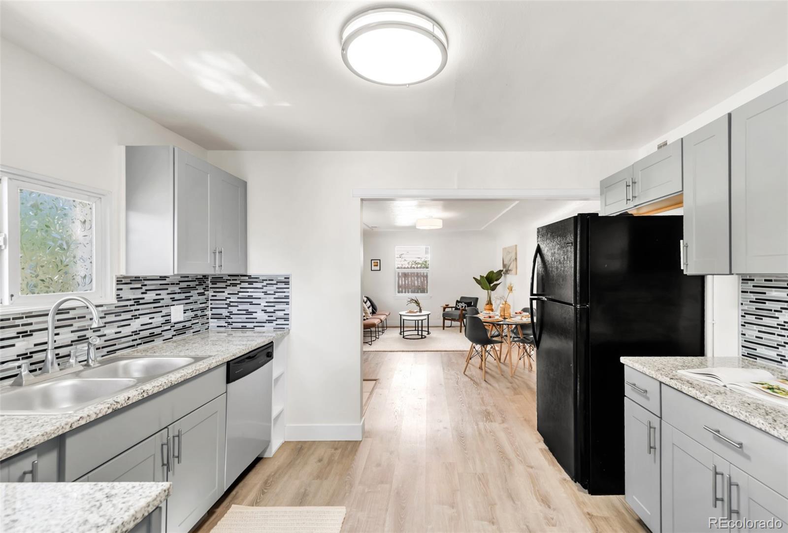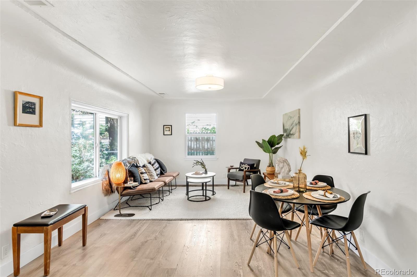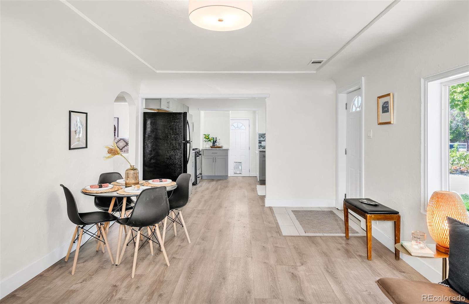 Set in the heart of Westminster’s vibrant Arts District, this charming home combines stylish updates with a prime location. Fresh interior and exterior paint and new carpeting create a bright, move-in-ready feel, while the open ranch-style floorplan offers effortless living. A sun-filled living and dining area is flooded with natural light from large windows. The layout flows seamlessly into the updated kitchen, complete with a tiled backsplash, sleek cabinetry and modern appliances. Two cheerful bedrooms share a full bath with stylish tile. Outside, the expansive, maturely landscaped yard is a true retreat — perfect for gardening, entertaining or spending relaxing evenings beneath the Colorado sky. A large shed offers endless possibilities as an art studio, workshop, office or creative space. With two off-street parking spaces, this home is situated just moments from coffee shops, local parks, a new brewery & outdoor event space being built around the corner. Light rail access, with close proximity to Boulder and downtown Denver. Learn more about Westminster this historic neighborhood and the upcoming project plans: https://www.westminsterco.gov/1064/Historic-Westminster