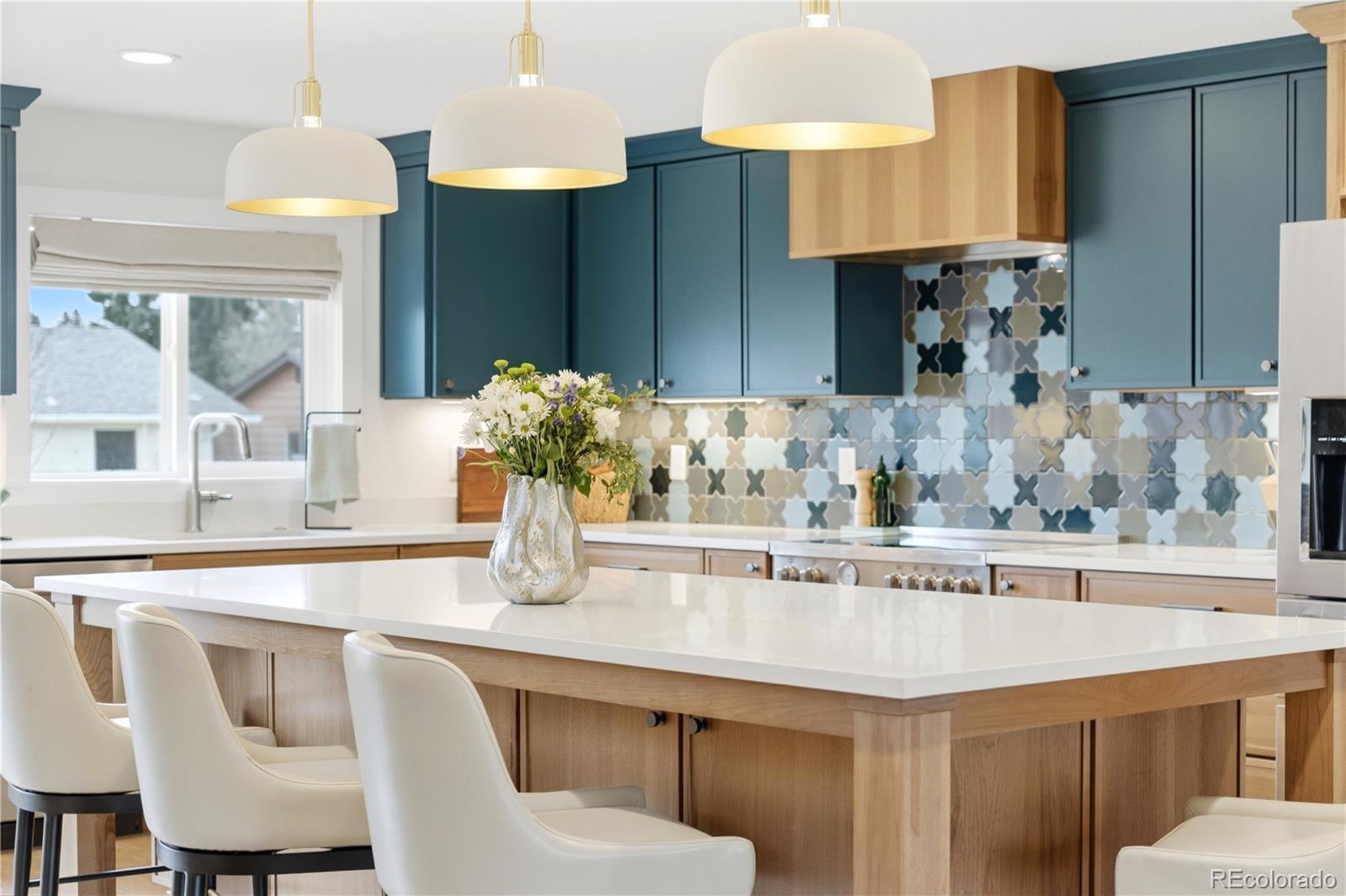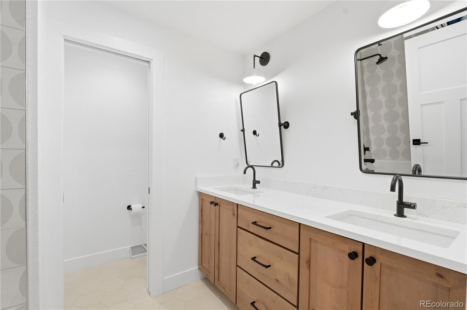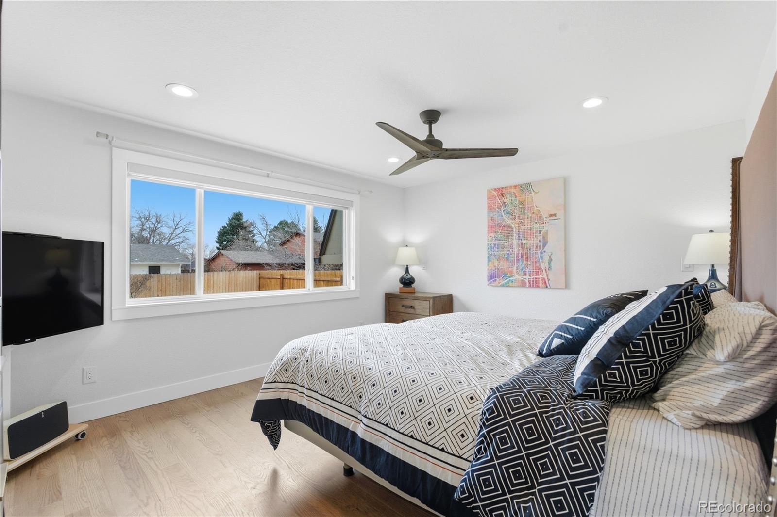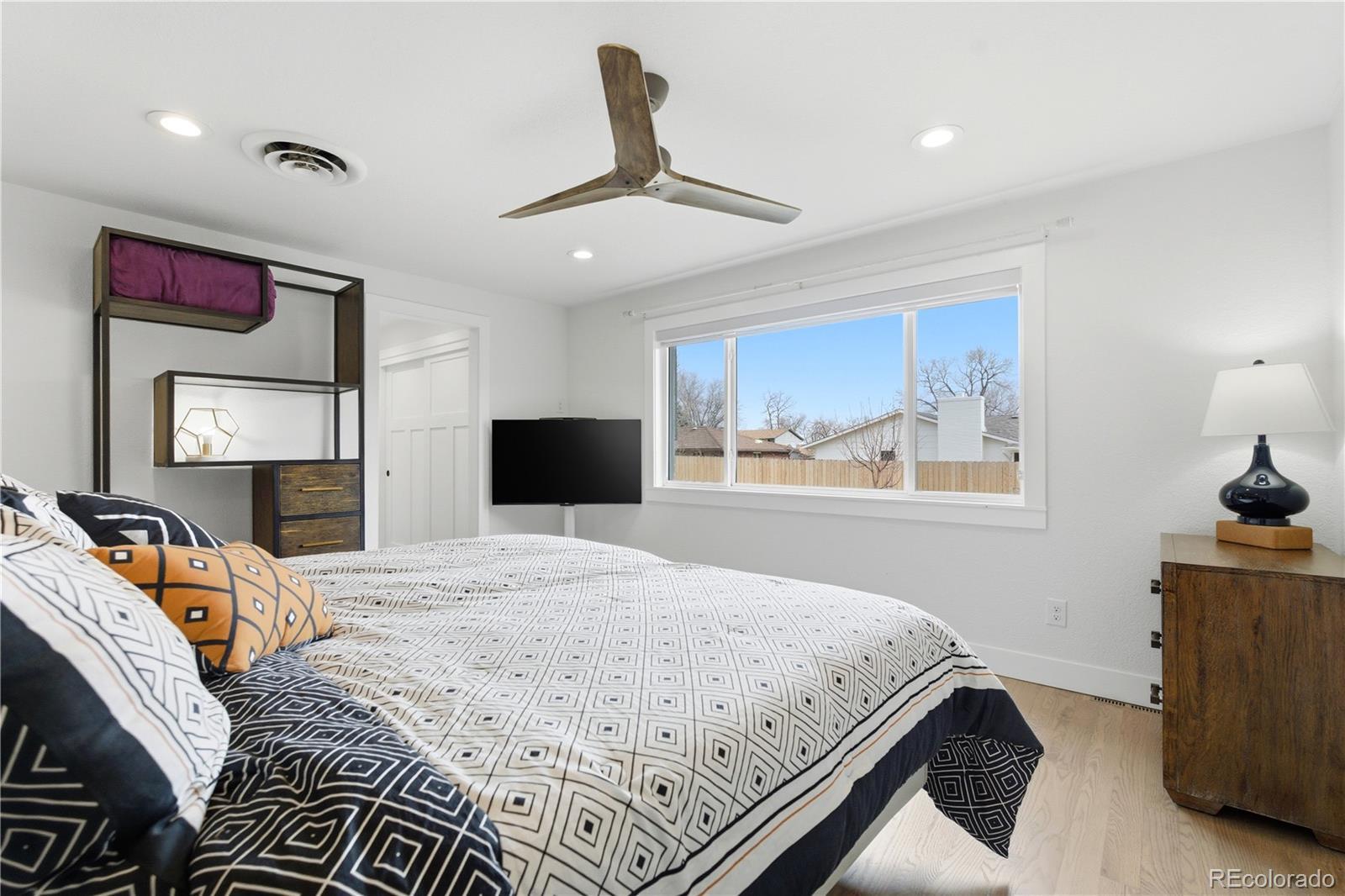 Discover refined modern living in this professionally reimagined mid-century ranch, ideally situated in the highly sought-after Columbine Knolls neighborhood. Thoughtfully renovated, this exceptional residence blends timeless architecture with elevated contemporary design, showcasing high-end finishes curated for both comfort and sophistication. The open-concept main level offers seamless indoor-outdoor living, highlighted by a chef’s kitchen with premium appliances, upgraded red pine wood flooring throughout, and expansive windows that bathe the home in natural light. The spa-inspired primary bath features radiant heated floors for everyday indulgence, while the fully finished basement provides versatile additional living space for entertaining, work, or relaxation. Outside, the expansive backyard presents endless opportunities for elevated entertainment, serene relaxation, or future customization. Extensive upgrades, too numerous to list, entail a water heater, furnace, roof, gutters, doors, trim, soft-close cabinets, upgraded tile, carpet, and an oversized garage door, among other improvements. This results in a truly turnkey, luxurious property with peace of mind, set in a timeless environment.