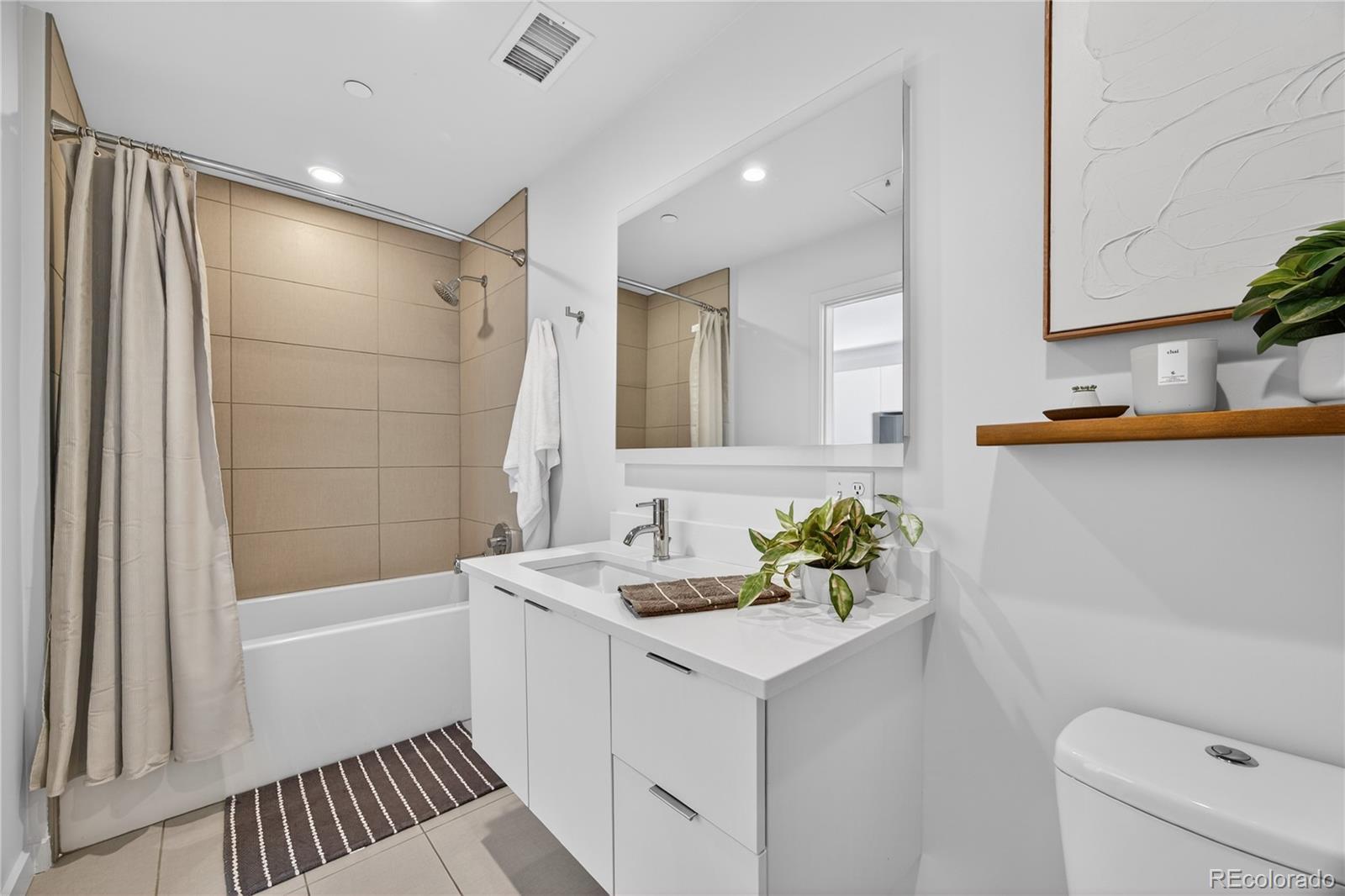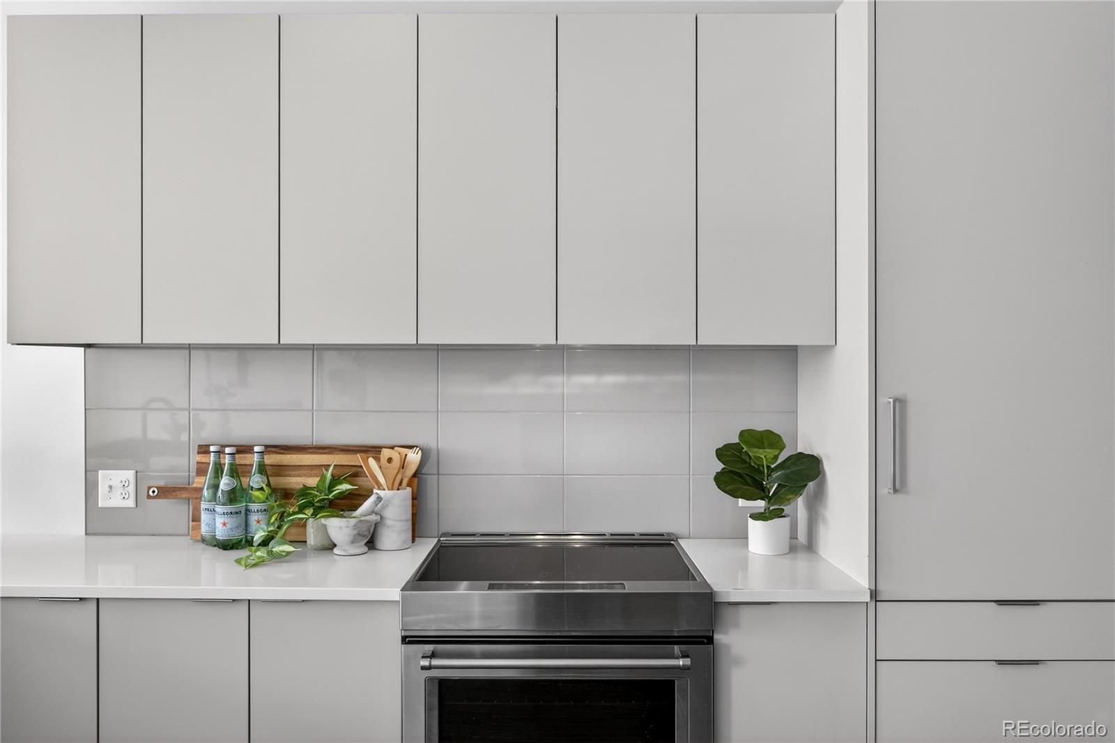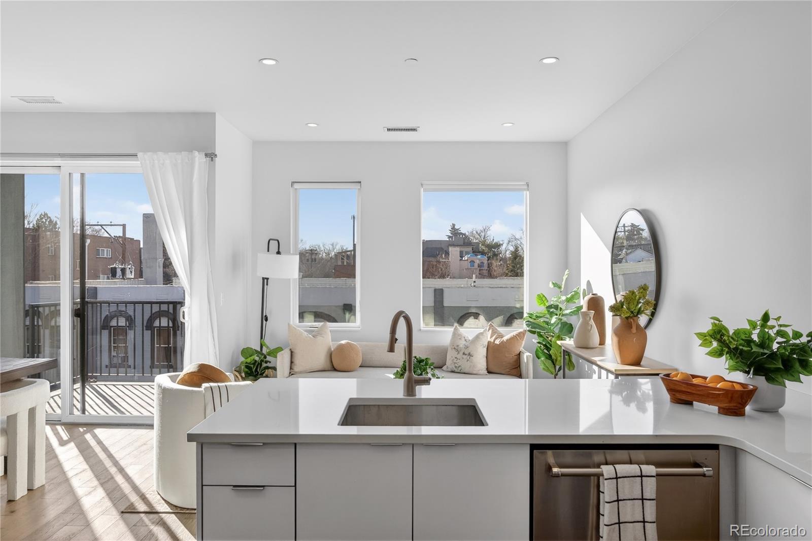 Welcome to this light-filled 1-bedroom, 1-bath condo in the heart of Capitol Hill, located in a boutique five-story building where modern 2017 construction meets the preserved brick exterior of the historic Penn Garage from 1923! Inside, the unit is open, bright, and freshly painted, with beautiful LVP flooring and a spacious living area that opens to a private patio with south-facing city and mountain views to the east and west. The sleek kitchen is both stylish and functional, featuring quartz countertops, ample cabinetry, an induction stove, and high-end stainless steel KitchenAid appliances. Frosted sliding glass doors create a private oasis for the bedroom with a full wall of closets. Additional conveniences include an in-unit stackable LG washer and dryer, one covered, secure entry parking space (#32) in the attached garage, and a large private storage cage (#27). The building amenities seal the deal: a shared rooftop deck with sweeping mountain and city views, a BBQ area, and a designated dog relief space for those late-night pup outings. There’s also a dog wash station, a basketball hoop in the garage, secure elevator/ building access, and a stunning foyer with architectural mailboxes that set the tone the moment you walk in. All of this in an unbeatable Capitol Hill location! Just steps from Corner Beet for your morning coffee, Hudson Hill for cocktails, the Ogden Theatre, and everything Cap Hill is known for. Urban living doesn’t get better than this!