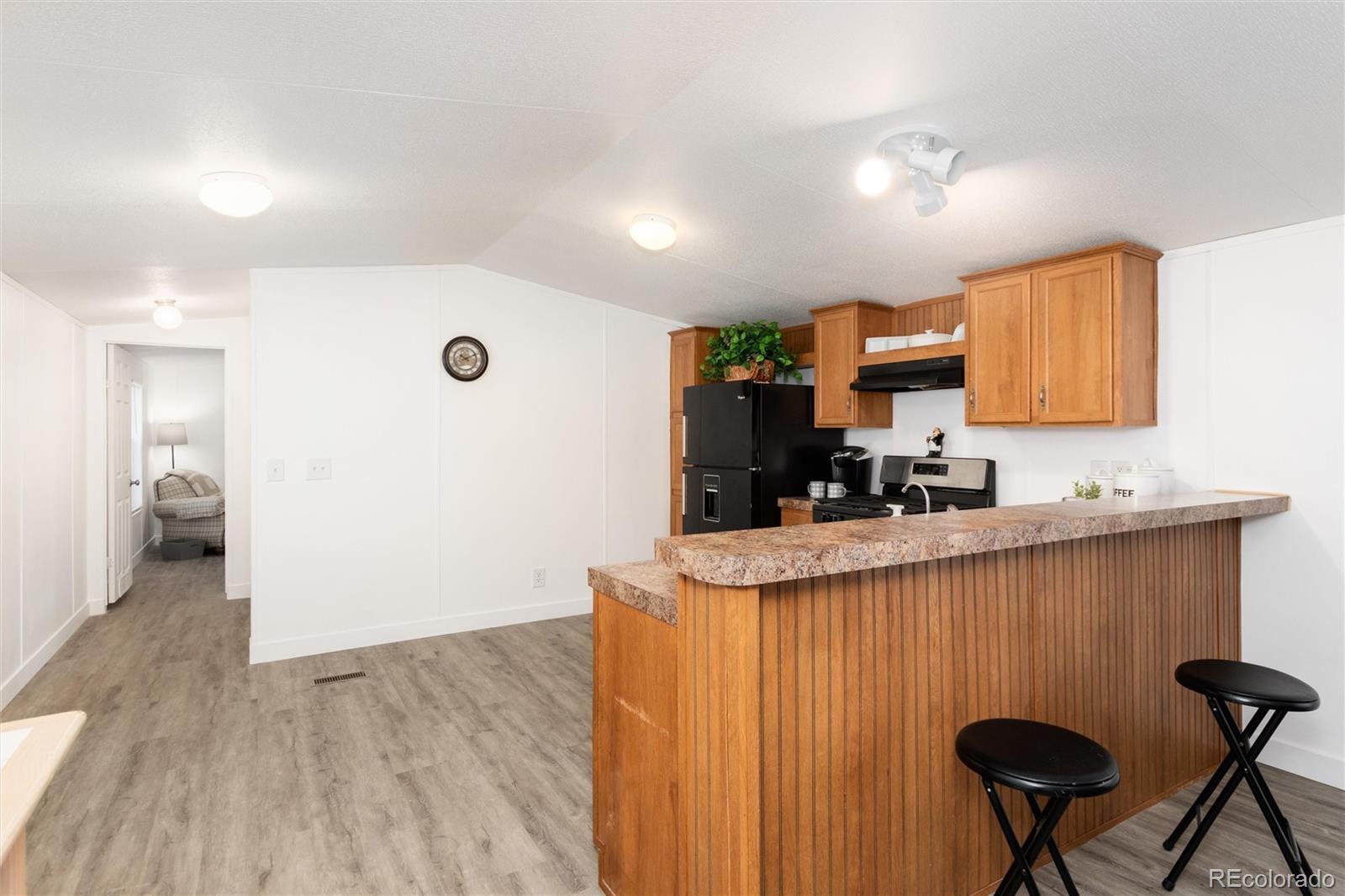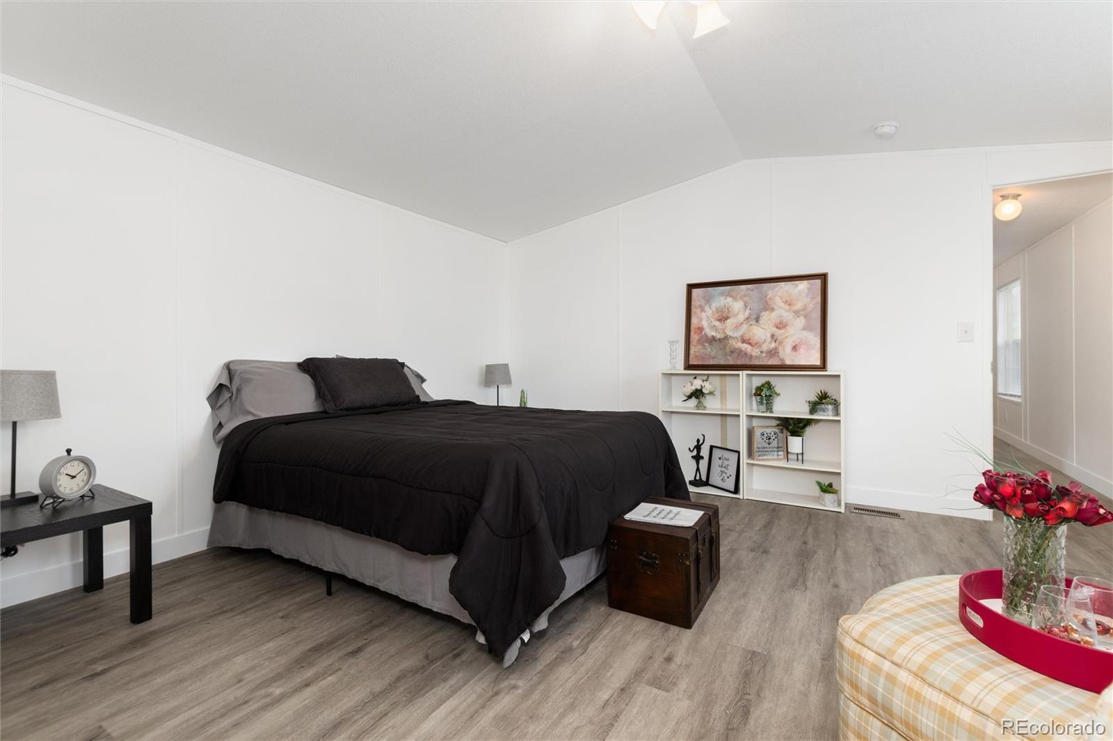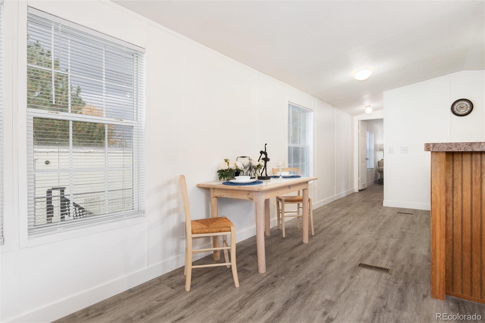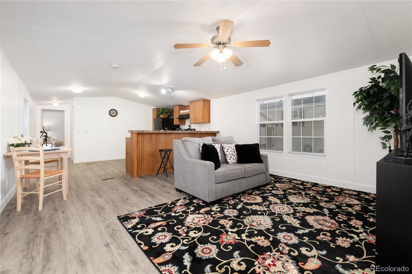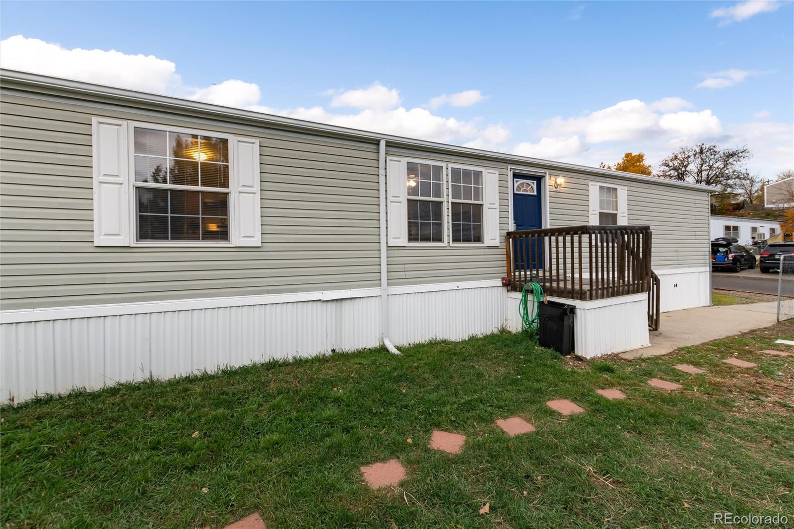Welcome to 218 Mesa Verde in beautiful Golden, Colorado! This well-maintained 3-bedroom, 2-bath modular home offers comfortable living with an open and functional floor plan. Brand new paint throughout the home, all new flooring and window coverings provide you with a move-in mentality that is waiting for your charm. The spacious living area connects seamlessly to the kitchen and dining spaces, creating an inviting atmosphere perfect for everyday living and entertaining. The primary suite includes a private 5 piece bath, walk-in closet and a room large enough for a California King bed. Two additional bedrooms, on the other end of the home, provide flexibility for guests, a home office, or hobbies. Outside, enjoy the fenced backyard—ideal for pets or outdoor gatherings. The property also features three convenient parking spaces for vehicles or visitors. Located near 6th Avenue, I-70, and C-470, this home offers easy access to downtown Golden, downtown Denver, and the Rocky Mountains. With its combination of comfort, location, and value, whether you’re looking for convenience or Colorado charm, this gem checks all the boxes. Don’t wait — schedule your showing today!