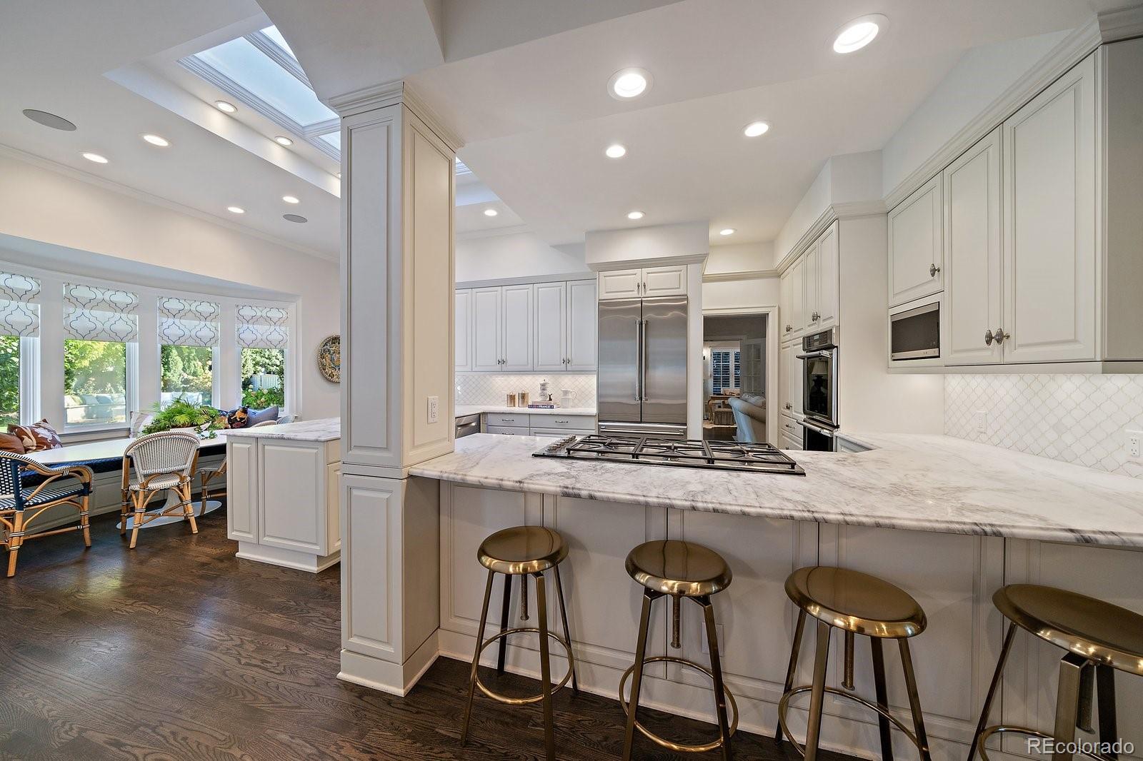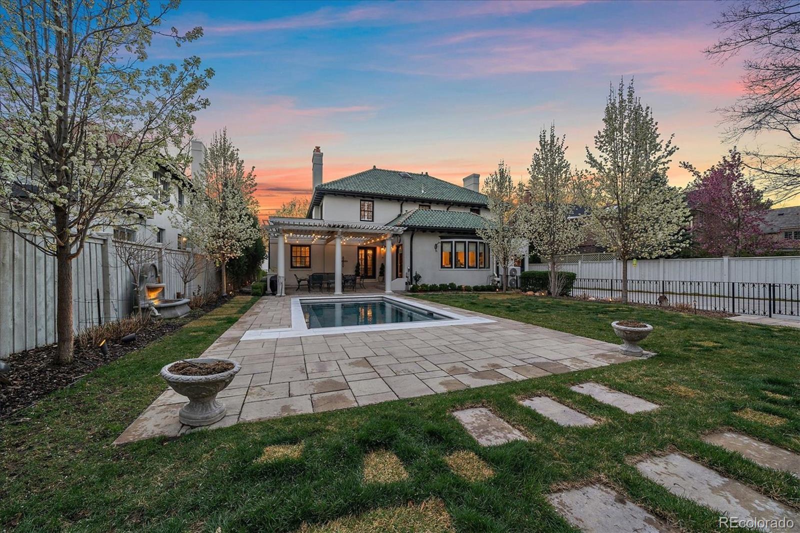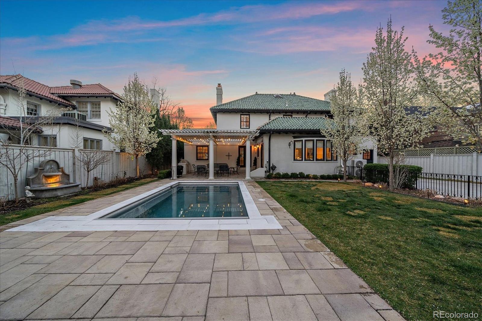 Located in the esteemed Denver Country Club neighborhood, this impeccably updated residence seamlessly blends classic architectural elegance with modern comfort. Renovated in 2018, the home features new electrical and plumbing systems, as well as carefully curated designer upgrades throughout. Most walls are finished in luxurious Venetian plaster, adding depth, warmth, and timeless sophistication rarely found in today’s homes. The sunlit, eat-in kitchen is a true showstopper with marble slab countertops, custom cabinetry, and premium appliances. Generously sized bedrooms, rich millwork, and a skylight-lit upper hallway enhance the home’s bright, timeless appeal. A finished basement, currently staged as an additional bedroom, adds flexible living space and an impressive wine room. The professionally landscaped yard includes multiple gathering spaces and a rare year-round pool, offering an exceptional setting for entertaining or relaxing in any season. Enjoy a cozy sitting area just off the main-floor office, or a private porch off one of the upstairs bedrooms. Just minutes from Cherry Creek, Downtown Denver, and some of the city’s best dining, shopping, and cultural attractions, this home offers an unmatched blend of luxury, location, and character. A true sanctuary in the heart of the city, it embodies refined living at its very best.
