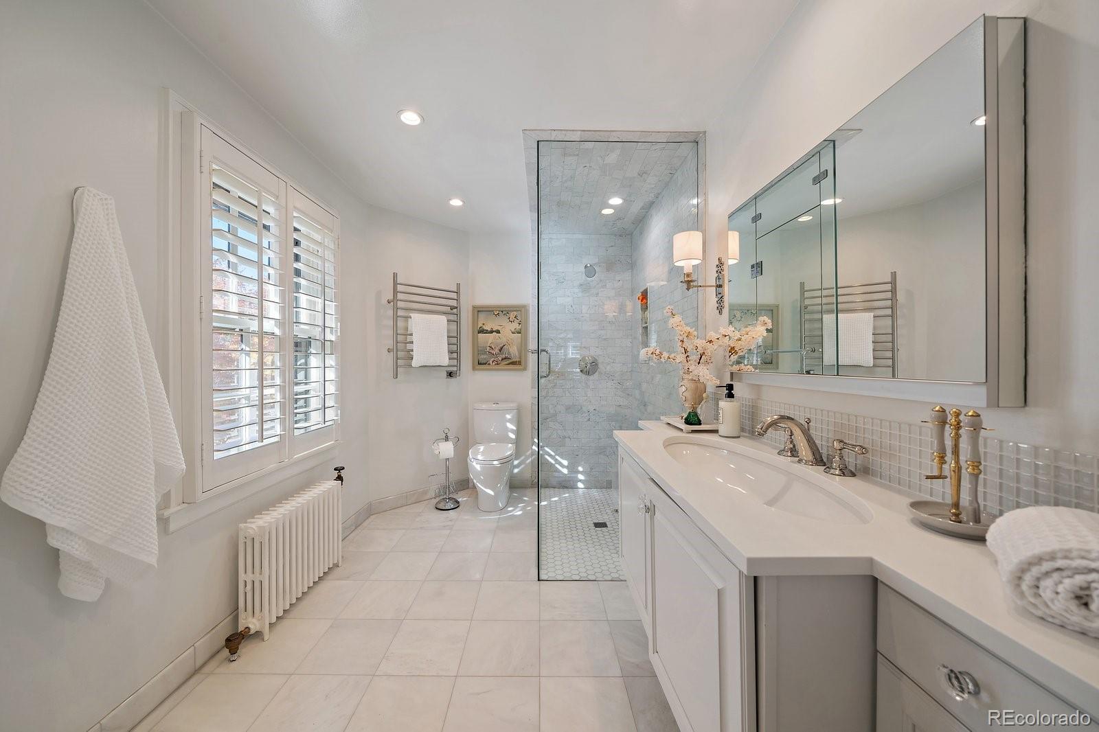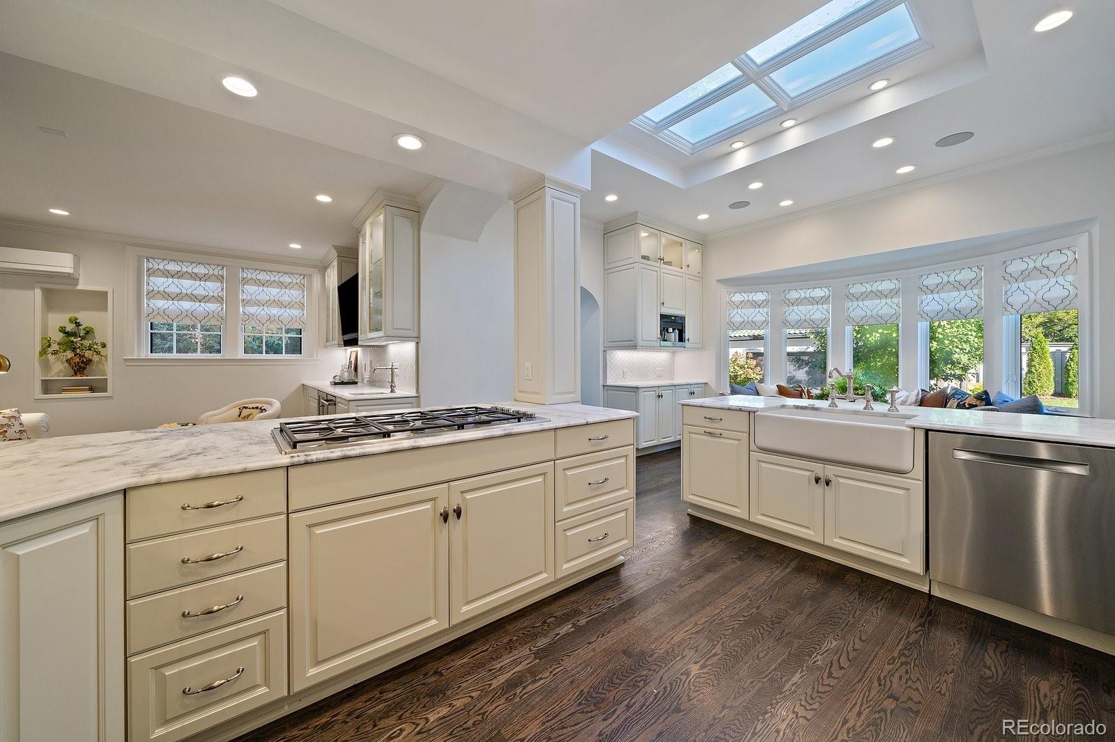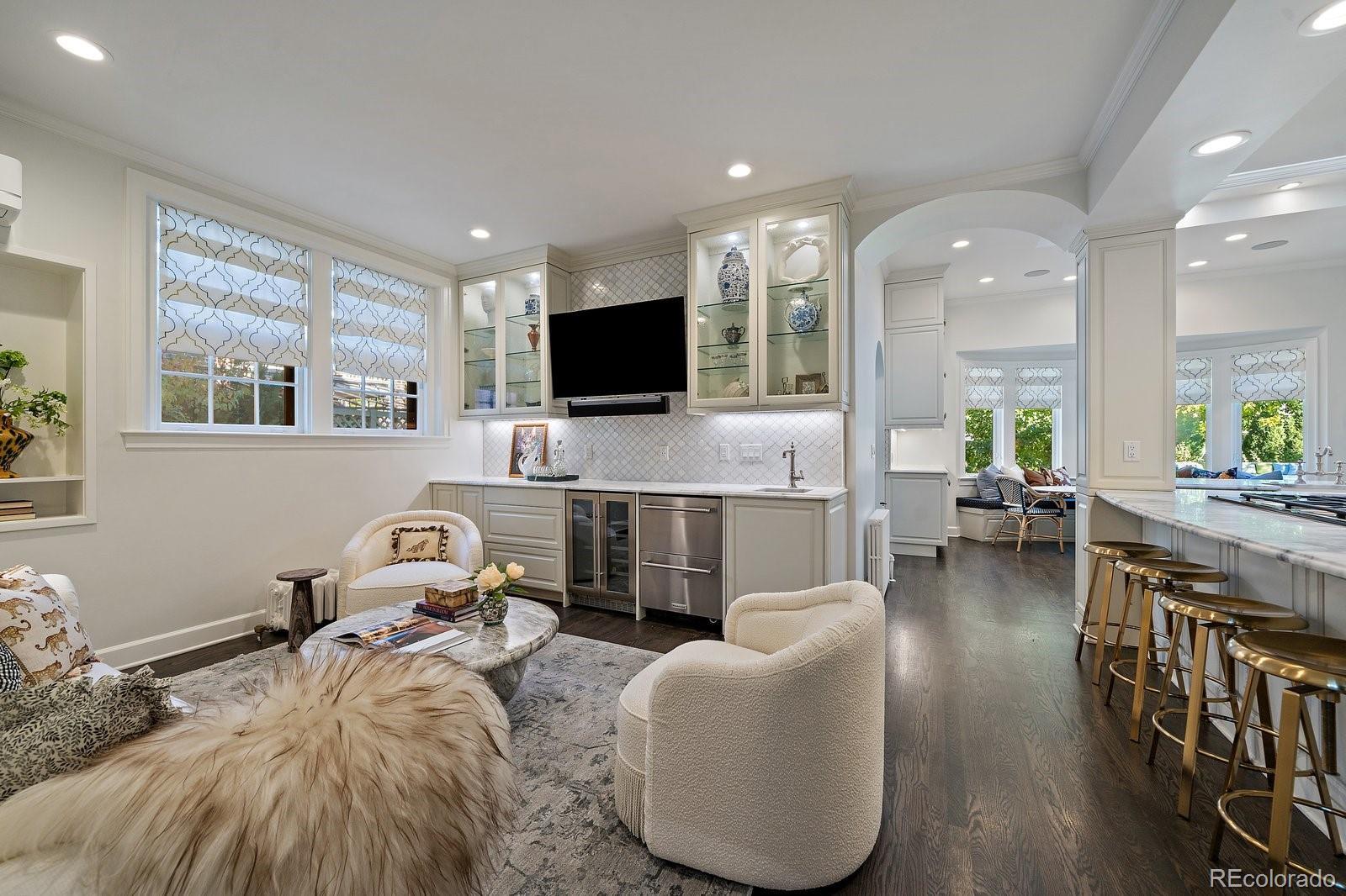 Located in the esteemed Denver Country Club neighborhood, this impeccably updated residence seamlessly blends classic architectural elegance with modern comfort. Renovated in 2018, the home features new electrical and plumbing systems, as well as carefully curated designer upgrades throughout. Most walls are finished in luxurious Venetian plaster, adding depth, warmth, and timeless sophistication rarely found in today’s homes. The sunlit, eat-in kitchen is a true showstopper with marble slab countertops, custom cabinetry, and premium appliances. Generously sized bedrooms, rich millwork, and a skylight-lit upper hallway enhance the home’s bright, timeless appeal. A finished basement, currently staged as an additional bedroom, adds flexible living space and an impressive wine room. The professionally landscaped yard includes multiple gathering spaces and a rare year-round pool, offering an exceptional setting for entertaining or relaxing in any season. Enjoy a cozy sitting area just off the main-floor office, or a private porch off one of the upstairs bedrooms. Just minutes from Cherry Creek, Downtown Denver, and some of the city’s best dining, shopping, and cultural attractions, this home offers an unmatched blend of luxury, location, and character. A true sanctuary in the heart of the city, it embodies refined living at its very best.