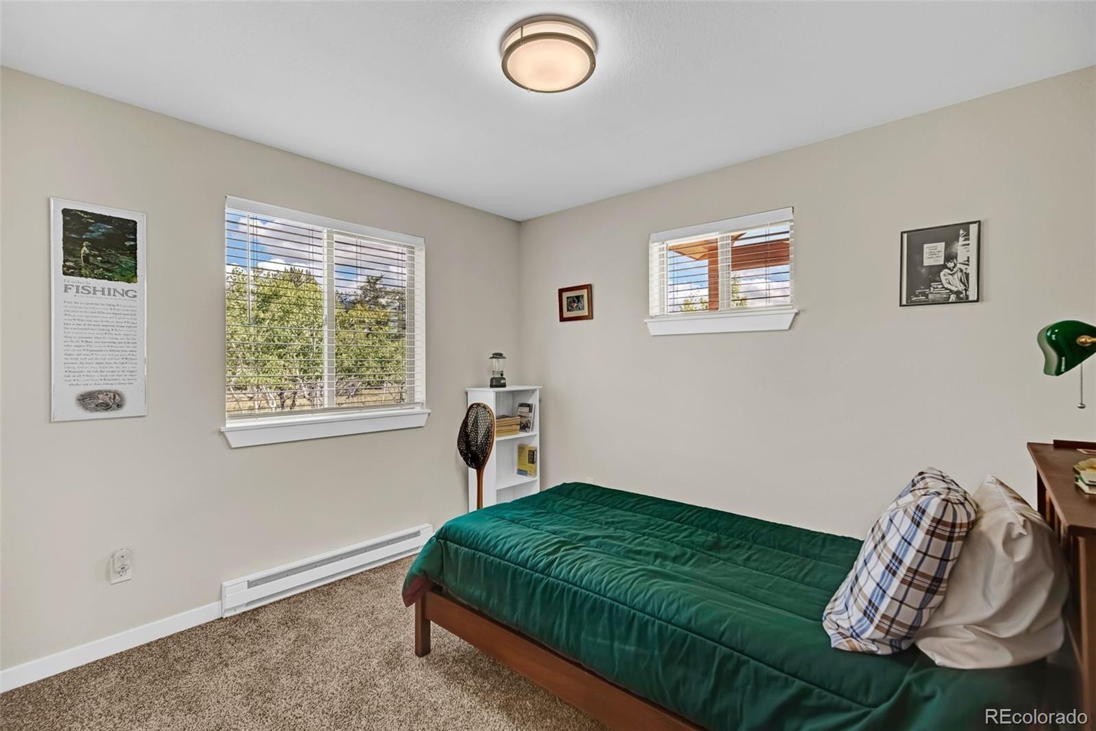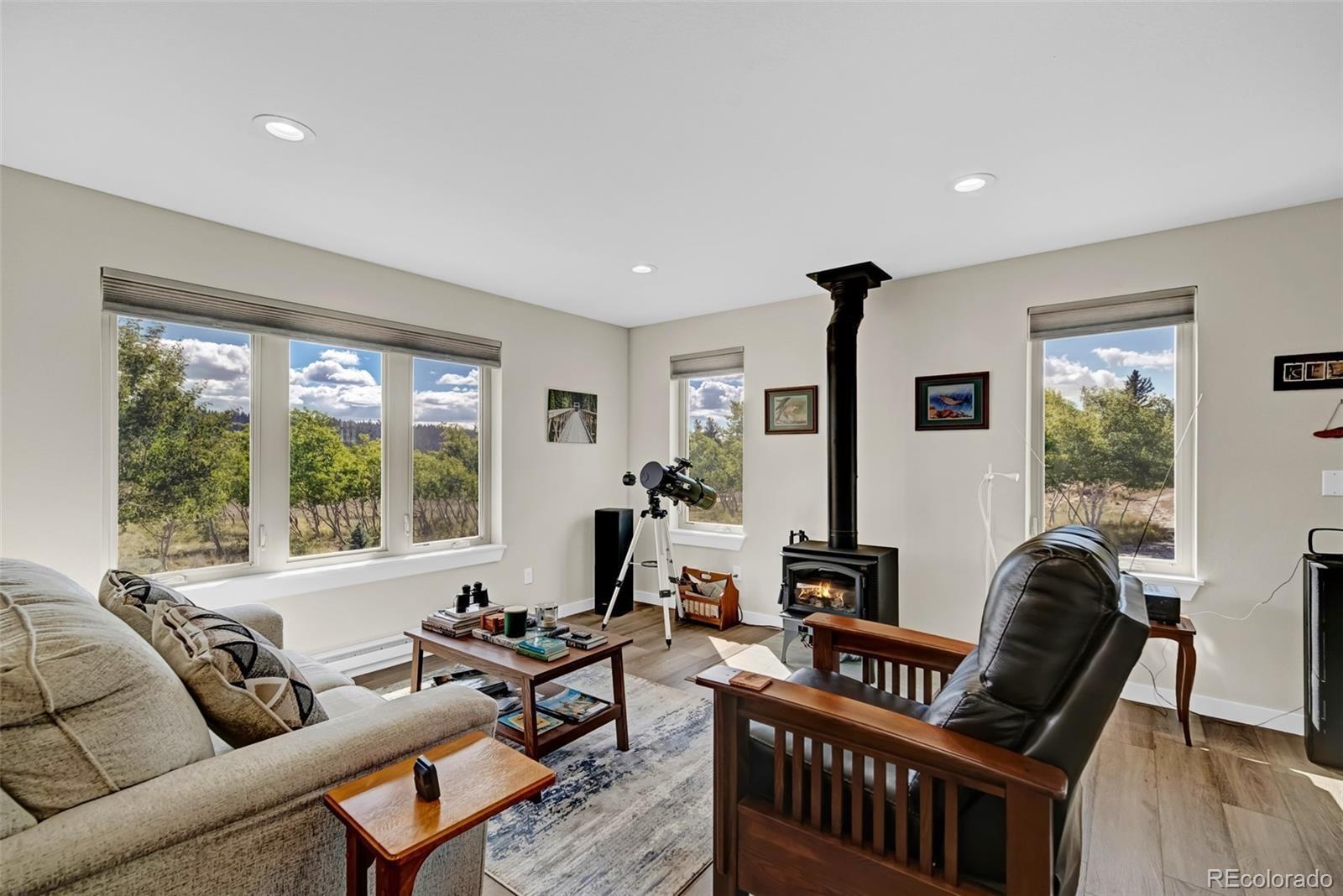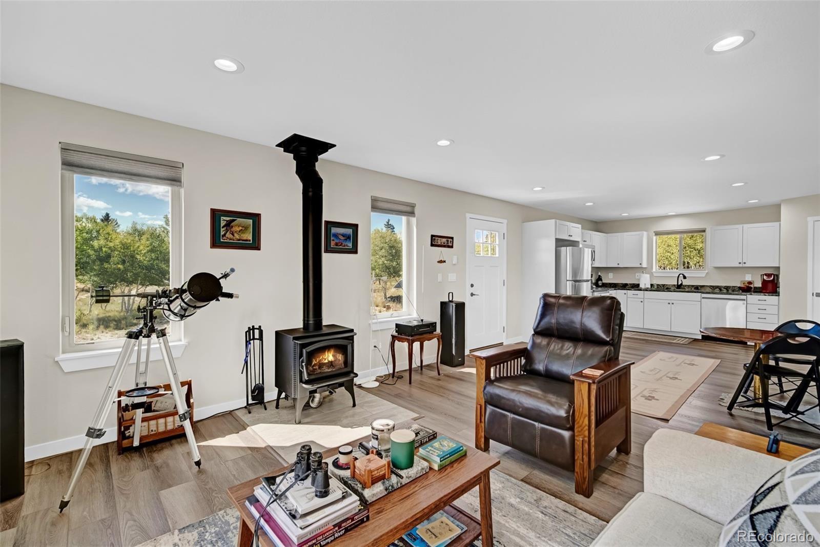 Stagestop Cabin with Private Fishing Set on a quiet road that circles back with no through traffic, this 2-bed, 2-bath cabin offers a private mountain escape with exclusive fishing rights in Stagestop. Just minutes from Pike National Forest, you’ll enjoy easy access to hiking, ATV trails, and endless outdoor adventure. Inside, rustic charm pairs with modern comfort—durable wood style luxury vinyl floors, quality cabinets, recessed lighting, and a cozy wood stove anchor the great room. Step outside to an oversized deck, partially covered for all-weather use, or gather outside and watch the sunset beneath Colorado’s starry skies. Lovingly maintained with newer paint and stain, plus a powerful solar system that keeps utility bills nearly nonexistent, this home is truly move-in ready. A rare mix of privacy, recreation, and timeless mountain appeal—perfect as a retreat, investment, or basecamp for the Colorado lifestyle.