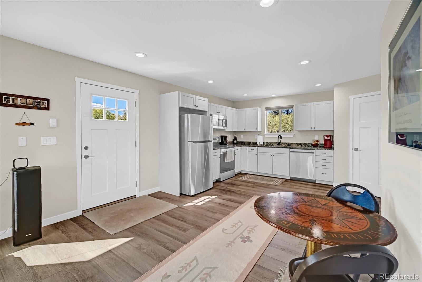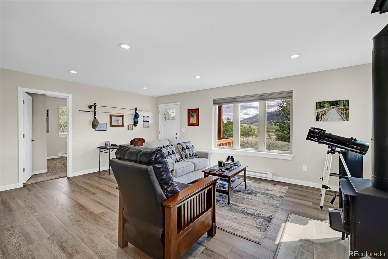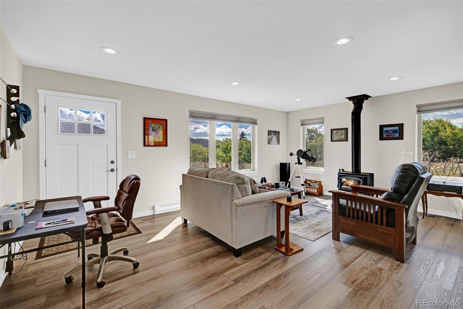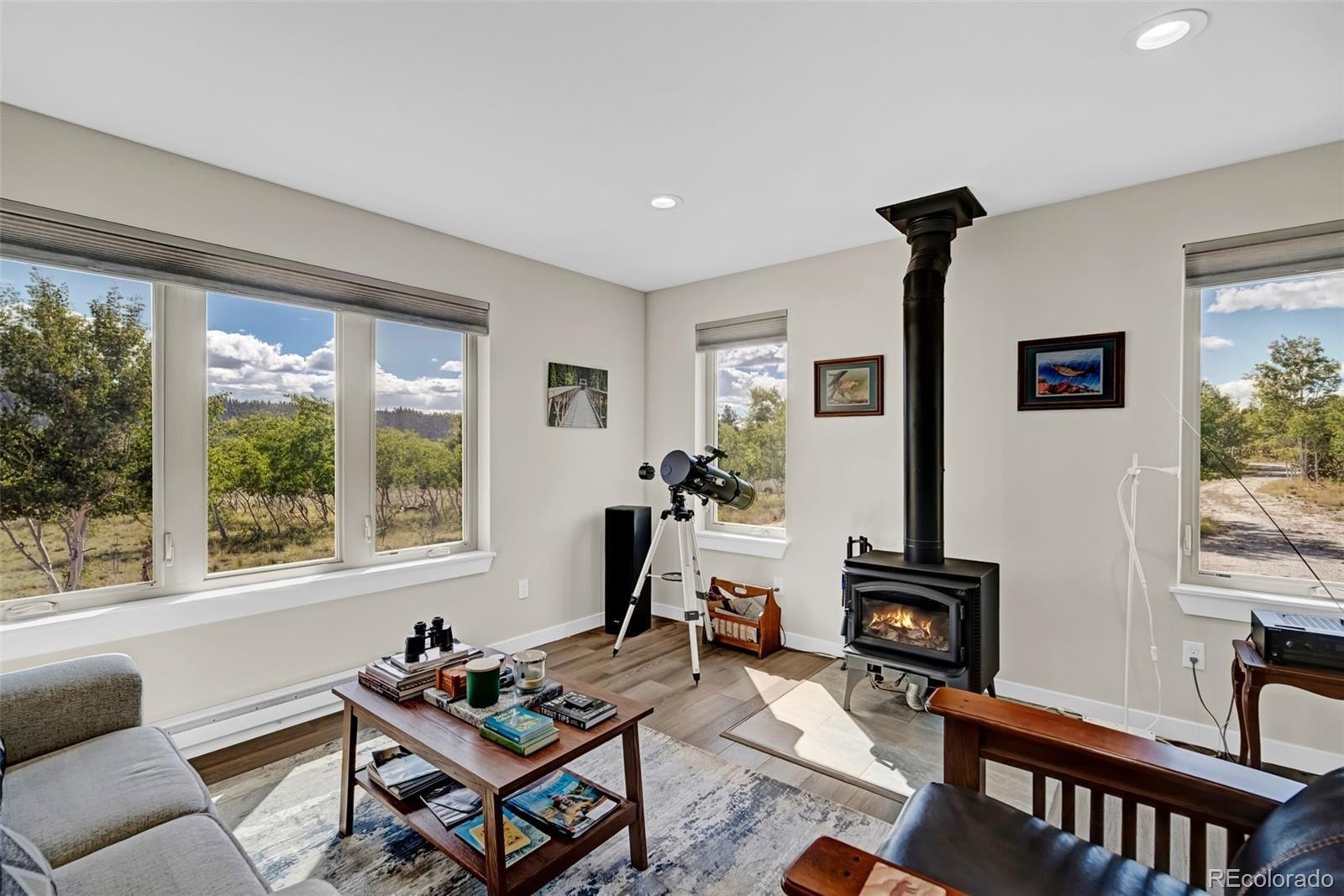 Stagestop Cabin with Private Fishing Set on a quiet road that circles back with no through traffic, this 2-bed, 2-bath cabin offers a private mountain escape with exclusive fishing rights in Stagestop. Just minutes from Pike National Forest, you’ll enjoy easy access to hiking, ATV trails, and endless outdoor adventure. Inside, rustic charm pairs with modern comfort—durable wood style luxury vinyl floors, quality cabinets, recessed lighting, and a cozy wood stove anchor the great room. Step outside to an oversized deck, partially covered for all-weather use, or gather outside and watch the sunset beneath Colorado’s starry skies. Lovingly maintained with newer paint and stain, plus a powerful solar system that keeps utility bills nearly nonexistent, this home is truly move-in ready. A rare mix of privacy, recreation, and timeless mountain appeal—perfect as a retreat, investment, or basecamp for the Colorado lifestyle.
