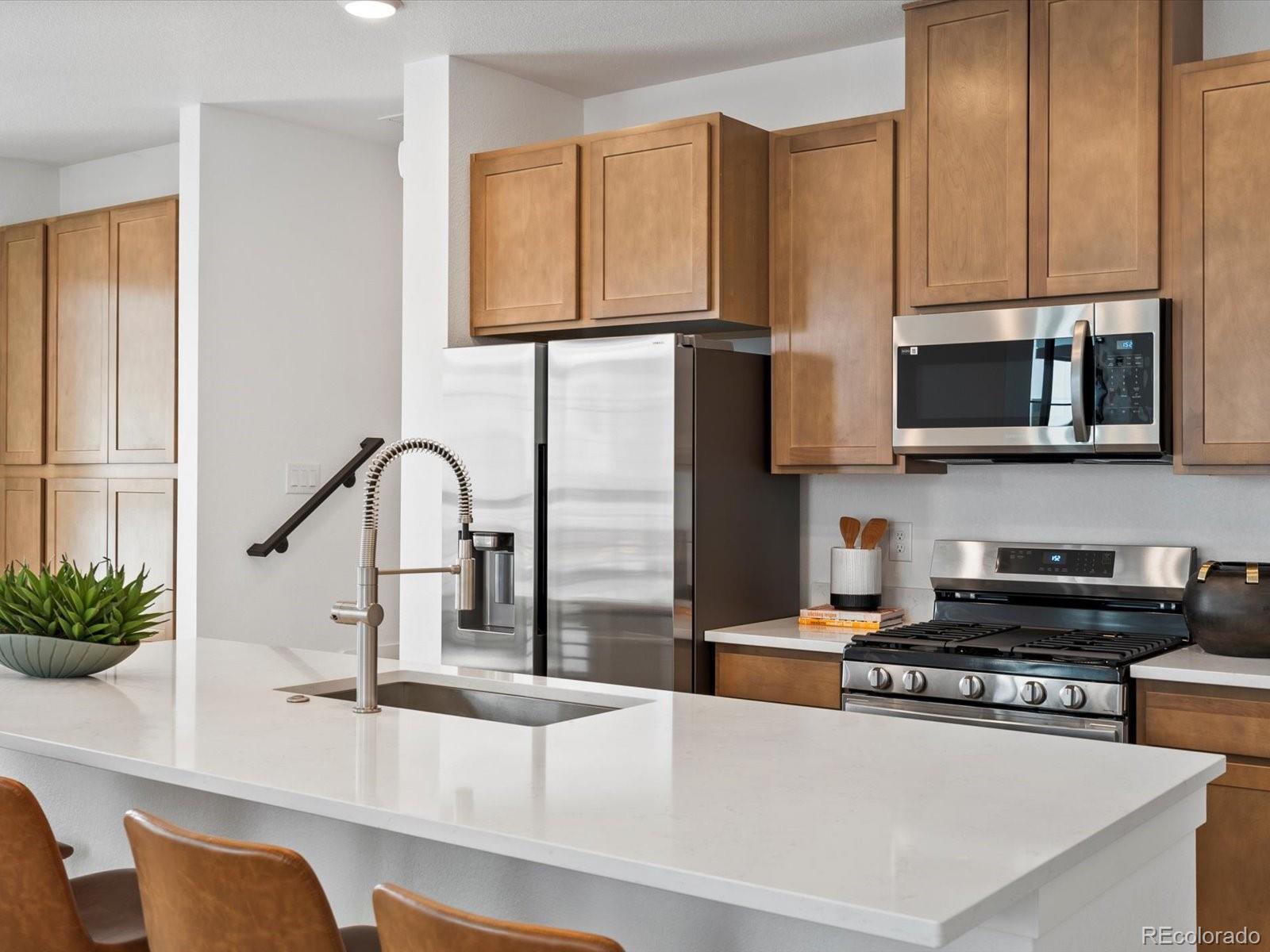Welcome to The Clark floor plan, a stylish and low-maintenance townhome located in Virginia Village, one of Denver’s most desirable neighborhoods. This brand-new home is move-in ready, offering a rare opportunity to own a modern home in a prime location. Designed for effortless living, this three-story townhome features an attached 2-car garage and a thoughtfully crafted layout. The second floor showcases an open-concept design with a gourmet kitchen at its heart. Complete with a large granite island, sleek stainless steel appliances, and ample counter space, this kitchen is perfect for entertaining or everyday meals. The spacious living and dining areas flow seamlessly, creating a bright and inviting atmosphere. On the third floor, convenience meets luxury. The primary suite offers a walk-in closet, dual vanities, and an oversized shower, providing a true retreat. A conveniently located laundry area and additional bedroom complete the upper level, offering versatility for guests, a home office, or extra storage. This home comes with an impressive list of standard features, including white quartz countertops throughout, Kohler fixtures, tile flooring in bathrooms, luxury vinyl plank flooring, a ceiling fan pre-wire in all bedrooms, a smart home tech package, keypad entry, and a Honeywell smart thermostat for modern convenience. Don’t miss your chance to own this stunning new home in a prime Denver location. seller incentives have been included in a price reduction. Seller is offering $5k towards closing costs on this home. Please note: Images shown are of a different home with the same floorplan. Views vary, contact the Community Sales Manager for more details.