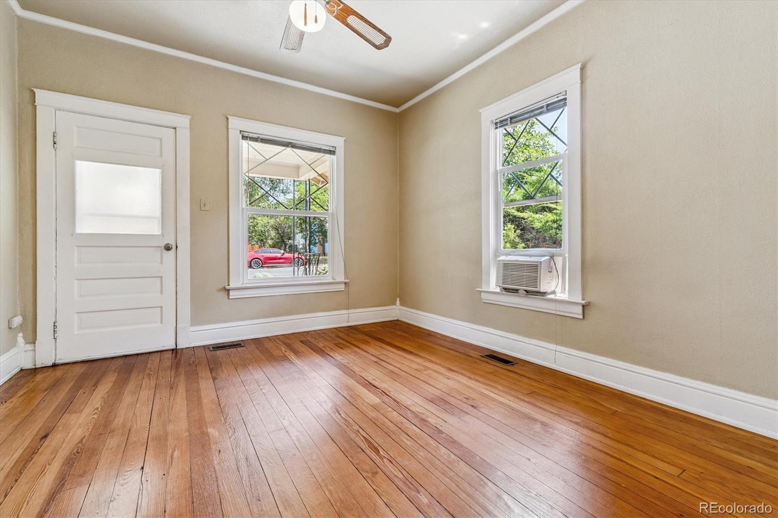 Location, location, location! Old world charm with new world amenities near downtown Littleton! Conveniently located just south of War Memorial Rose Garden, walking distance to both Sterne Park and Downtown Littleton. As you enter you are welcomed by a large open living/dining area. There are two good sized bedrooms, one of which functions better as a primary with direct access to the shared full bath. Towards the rear of the home is the updated kitchen, with newer cabinetry, appliances, countertops...etc. The basement, while functioning more as a cellar, has room for some additional storage alongside keeping the mechanical systems tucked away. Out back, a large deck carries you into the mature yard with alley access. There is also a detached single-car garage that would also make a great workshop or future studio space. Move right in and take advantage of the incredible potential this property has today!