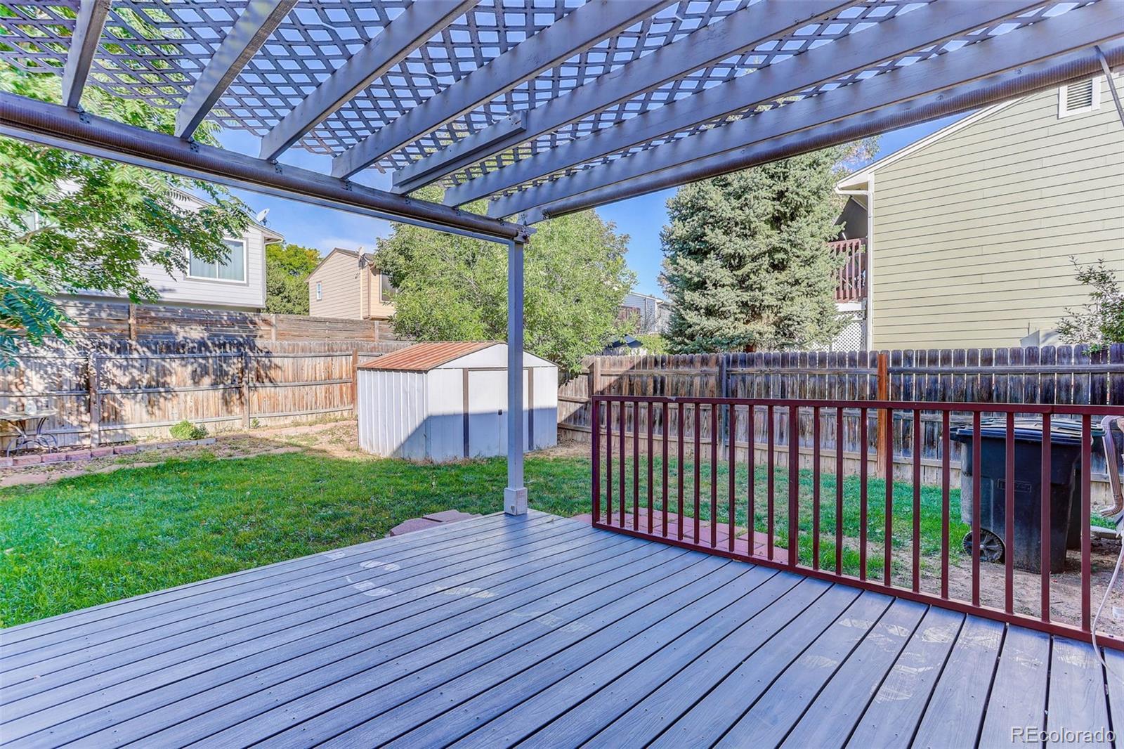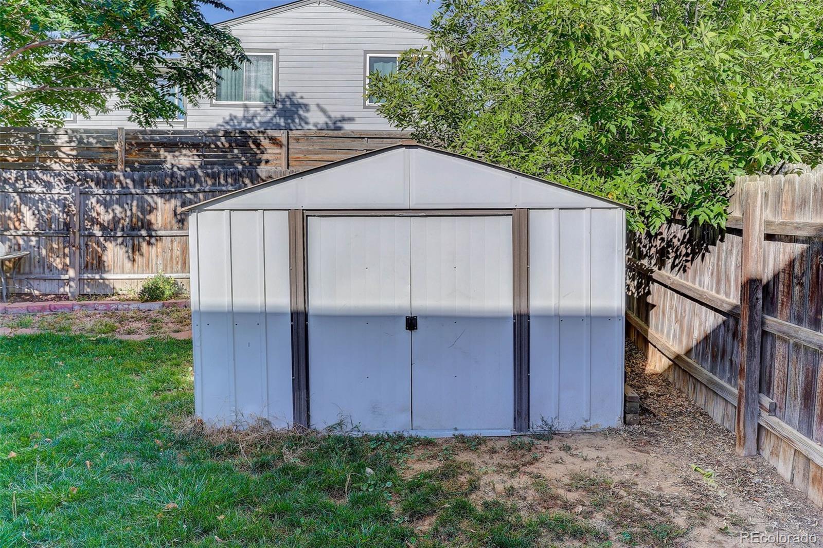 Cozy Thornton Duplex in a Great Location. This 1,575 sq ft duplex offers 3 bedrooms and 1.5 baths in a quiet neighborhood close to parks, trails, schools, and restaurants. The main level features a spacious living room, dining area, kitchen, and half bath. Upstairs, you'll find two bedrooms, a full bath, and convenient laundry. The finished basement provides a versatile third bedroom, family room, or home office. A sliding glass door off the dining room opens to a large deck with roll-down sunscreens-perfect for relaxing or entertaining. The backyard also includes a storage shed. A favorable 2-car garage is attached. The HOA covers exterior maintenance with roof, adding extra peace of mind.