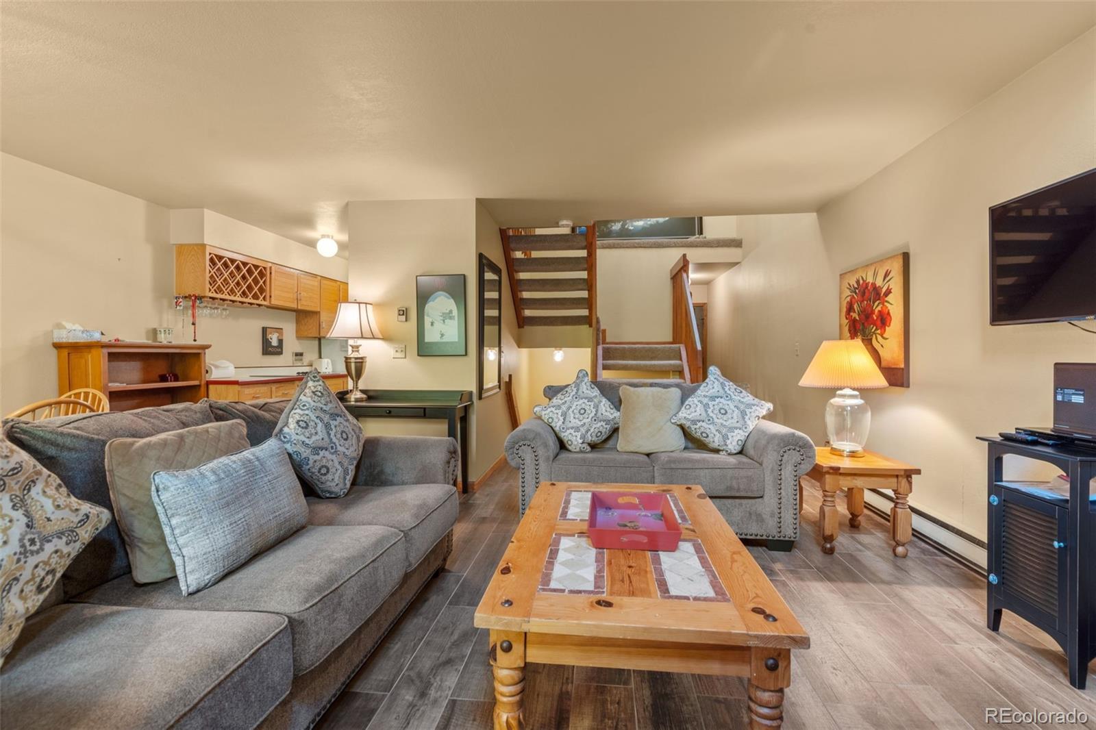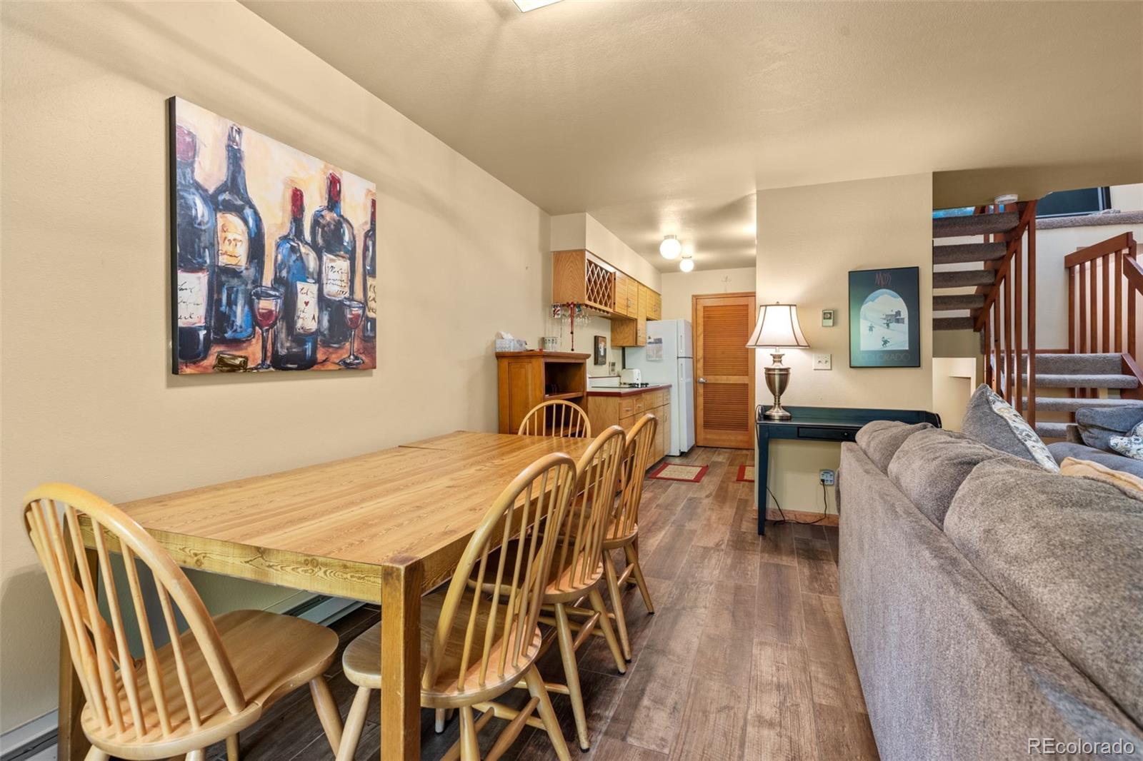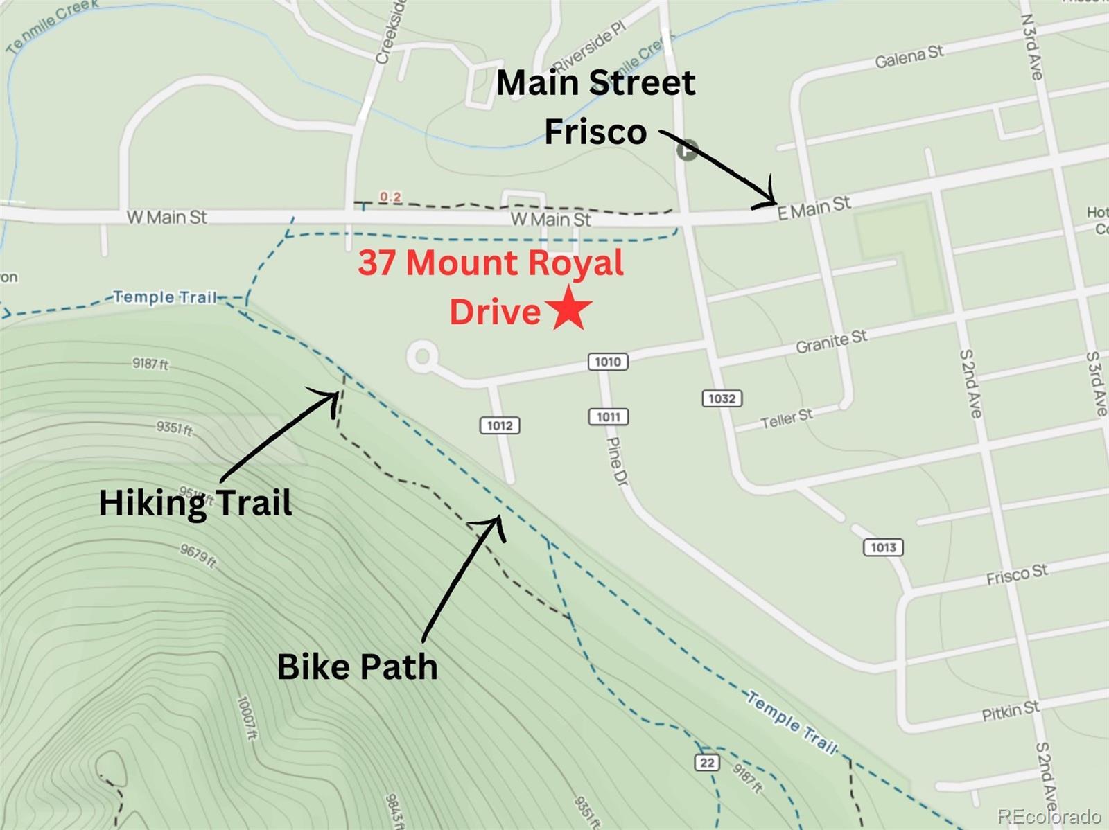 Welcome to this spacious and beautifully maintained 3-bedroom, 3-bathroom townhouse nestled on a quiet cul-de-sac in the heart of Frisco. Spanning 1,555 square feet across three levels, this home offers comfort, convenience, and stunning views of Mount Royal from the brand-new rear decks off the primary bedroom and living room. Enjoy the cozy ambiance of a woodburning fireplace, a one-car garage with extra-tall ceilings for overhead storage, and a thoughtfully designed layout that maximizes space and natural light. The entryway stairs have also been recently updated, adding to the home's fresh and inviting feel. Located just 50 yards from the bike path and only one block from the vibrant shops and restaurants of Main Street Frisco, this property offers unbeatable walkability and easy access to I-70. Whether you're heading to Breckenridge, Copper, Keystone, or A-Basin, you're centrally positioned for all Summit County ski resorts. Additional amenities include a common hot tub and a peaceful community setting. This is a rare opportunity to own in one of Frisco’s most desirable neighborhoods—perfect as a full-time residence, mountain getaway, or investment property.
