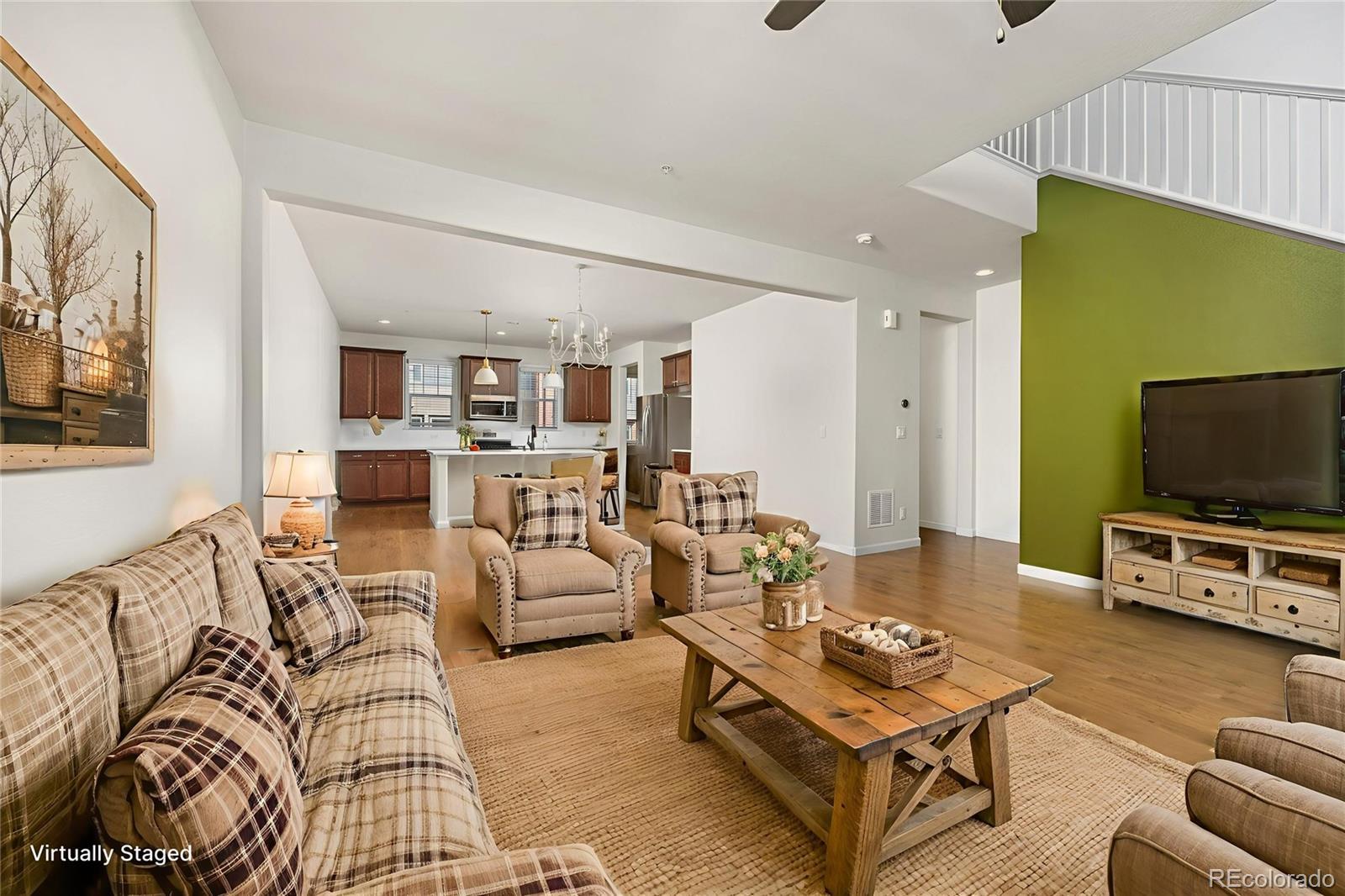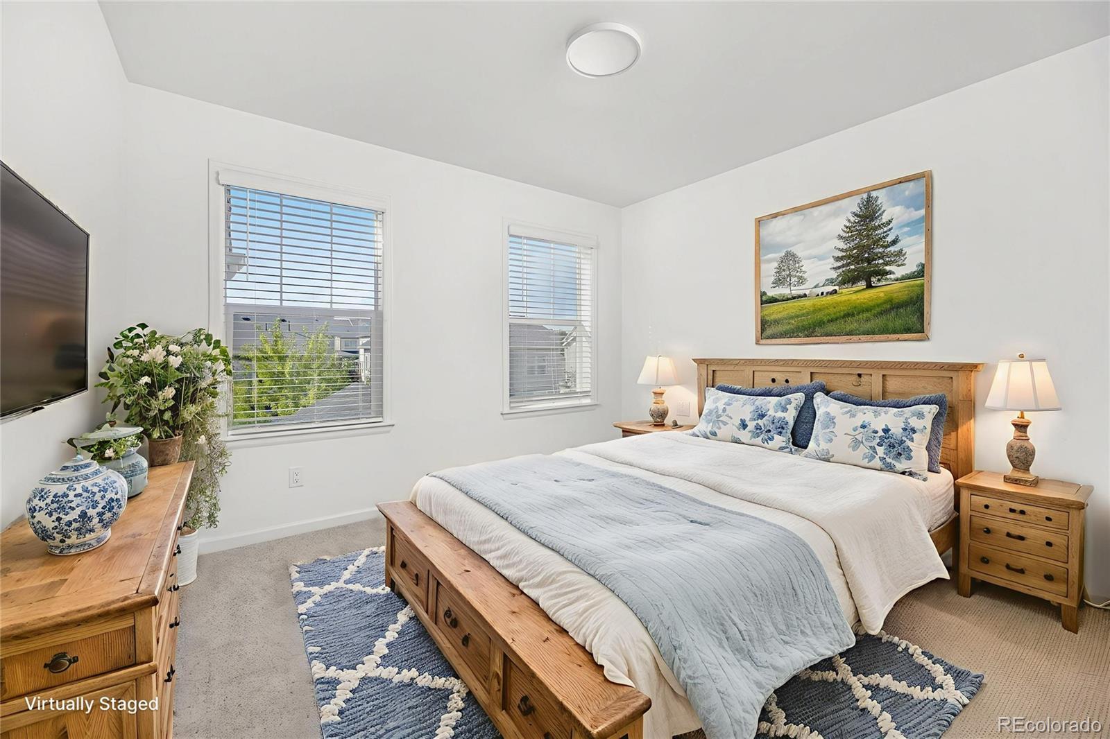 New opportunity to own in coveted Hyland Village Townhomes; a quiet neighborhood with wonderful amenities. This is an incredibly spacious 3-level townhome situated in a highly desirable location. Immaculate space with 2 bedrooms upstairs; each with its own bathroom, and one extra bath on the main floor. Both bedrooms have large walk-in closets and privacy. A bonus room on the lower level is large enough for guests, 3rd bedroom, an office, or an exercise room. The laundry closet is right off the bedrooms for convenience, and features extra storage cabinets. The upstairs hall also features a large linen closet. The kitchen offers stainless steel appliances, large storage pantry, gas stove, extra tall cabinets with room for storage, expansive quartz countertops, and a large kitchen island for dining. The sizebable living room/dining room has a ceiling fan and opens to a large outdoor patio area for relaxing or entertaining with mountain views. This property features storage under the stairs on the lower level, as well as a large coat closet on main level & lower level. The spacious two-car garage comes with built-in hanging storage. 5 mins to hwy 36, City Park Rec Ctr, Open space, trails, Target, NEW Trader Joe's, Hyland Hills Golf Course, Wal-Mart, AMC Theatre, Adventure Golf, shopping, restaurants, and ten mins to I25. The community pool and playground are a 5 min. walk. Street & extra guest parking outside garage area in the back. Kennedy/Richter Construction doing repairs to the property (entire community), at Builder's expense including: grading, landscaping, sidewalk repairs, some siding & brickwork/flashing repairs. Virtual staging pics added for ideas on how to space furniture.